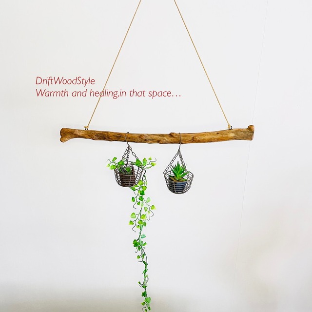 厳選した流木を使用した温かみと癒しを感じる,流木インテリアになります。 〇作品について 80cmサイズの曲線を描く流木のハンガーです。 横幅が約80cmで、主に天井から吊り下げて楽しむことができます。 インテリアとして見栄えの良い作品ですので,様々なロケーションに合います。 流木のハンガーを飾るだけで,温かみが増しお部屋の雰囲気が変わります。 あらゆるコンセプトの空間にも温かさや癒しを与えてくれます。 ※撮影時に使用した小物・ドライフラワーは付属されません。 参考のために画像では付けています 〇取り付けについて 天井から吊り下げる場合はS字フックなどを使用することをお勧めします。 あまり多くのものを吊り下げると,重さに耐えられない場合がありますのでご注意ください。 〇流木と加工について 日本海から流れ着いた流木を一つ一つ採取選別し,処理,洗浄,乾燥などを経て,世界に一つだけの流木インテリアを制作しています。 流木によってはわずかな潮の香を感じるものもありますが,それも楽しんで頂ければと思います。 流木そのままの姿がすでに魅力的ですので,加工もその点を意識しています。 流木一つ一つの持つ個性を活かせるように,一つ一つ心を込めて丁寧に仕上げています。 できる限り頑丈に作製しておりますが、素材状もろく破損しやすい部分もございますので取り扱いにはご注意下さい。 〇サイズ 横幅 約80cm 太さ 約 2~cm 〇注意事項 天然流木を使用していますので,流木にあるキズ,汚れ,虫食い,ささくれ跡などがあります。 それらのキズや凹凸などを含めて流木の魅力になりますので,ご理解頂ける方にご購入をお願いいたします。 撮影環境やライトの色合いで,実物と写真の色合いが若干異なる場合がございます。 また,画像には移しきれない部分がある場合もありますのでご了承ください。 ※ 他のサイトでも販売している関係で売り切れになる事もございます。 その際はキャンセルさせていただきますが、何卒ご了承いただきますようお願いいたします。