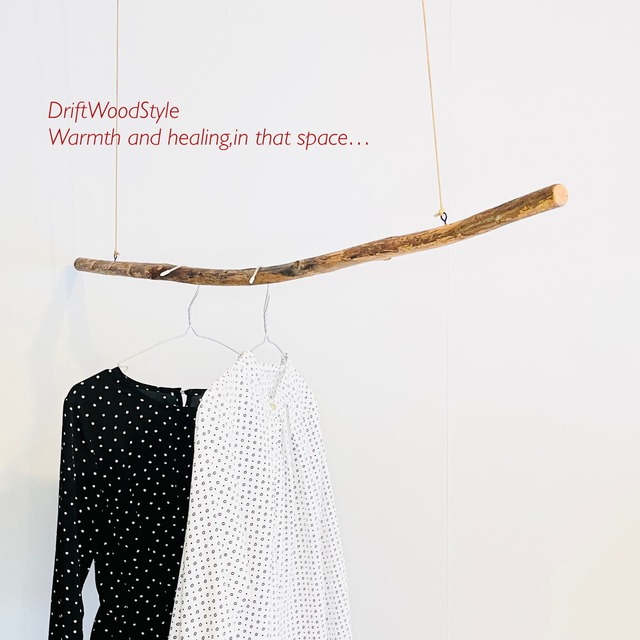 厳選した流木を使用した温かみと癒しを感じる,流木インテリアになります。 〇作品について 約115cmサイズのシンプルな流木のハンガーラックです。 長さが115㎝ほどあり,天井から吊り下げてエアプラントを飾ることができます。 衣類などをかけるハンガーラックとしてもご使用できます。ロープは長めにとってありますが,お部屋に合わせて長さを調整できます。 フックは付けておらず,自由に飾って楽しめます。 流木の存在感が大きいのでお部屋の雰囲気が,がらりと変わります。 大型流木の存在感を十分に楽しめる作品となっています。 お部屋の壁や流木を飾るだけで,温かみが増しお部屋の雰囲気が変わります。 ※撮影時に使用した衣装や小物は付属されません。 参考のために画像では付けています。 〇取り付けについて 天井から吊り下げる場合はS字フックなどを使用することをお勧めします。 あまり多くのものを吊り下げると,重さに耐えられない場合がありますのでご注意ください。 〇流木と加工について 日本海から流れ着いた流木を一つ一つ採取選別し,処理,洗浄,乾燥などを経て,世界に一つだけの流木インテリアを制作しています。 流木によってはわずかな潮の香を感じるものもありますが,それも楽しんで頂ければと思います。 流木そのままの姿がすでに魅力的ですので,加工もその点を意識しています。 流木一つ一つの持つ個性を活かせるように,一つ一つ心を込めて丁寧に仕上げています。 できる限り頑丈に作製しておりますが、素材状もろく破損しやすい部分もございますので取り扱いにはご注意下さい。 〇サイズ 幅 約115cm 太さ 約3cm 〇注意事項 天然流木を使用していますので,流木にあるキズ,汚れ,虫食い,ささくれ跡などがあります。 それらのキズや凹凸などを含めて流木の魅力になりますので,ご理解頂ける方にご購入をお願いいたします。 撮影環境やライトの色合いで,実物と写真の色合いが若干異なる場合がございます。 また,画像には移しきれない部分がある場合もありますのでご了承ください。 ※ 他のサイトでも販売している関係で売り切れになる事もございます。 その際はキャンセルさせていただきますが、何卒ご了承いただきますようお願いいたします。