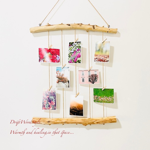流木インテリア 壁一面に写真を飾れる中サイズのフォトディスプレイ 流木 写真ハンガー ウォールデコ 壁掛け N2