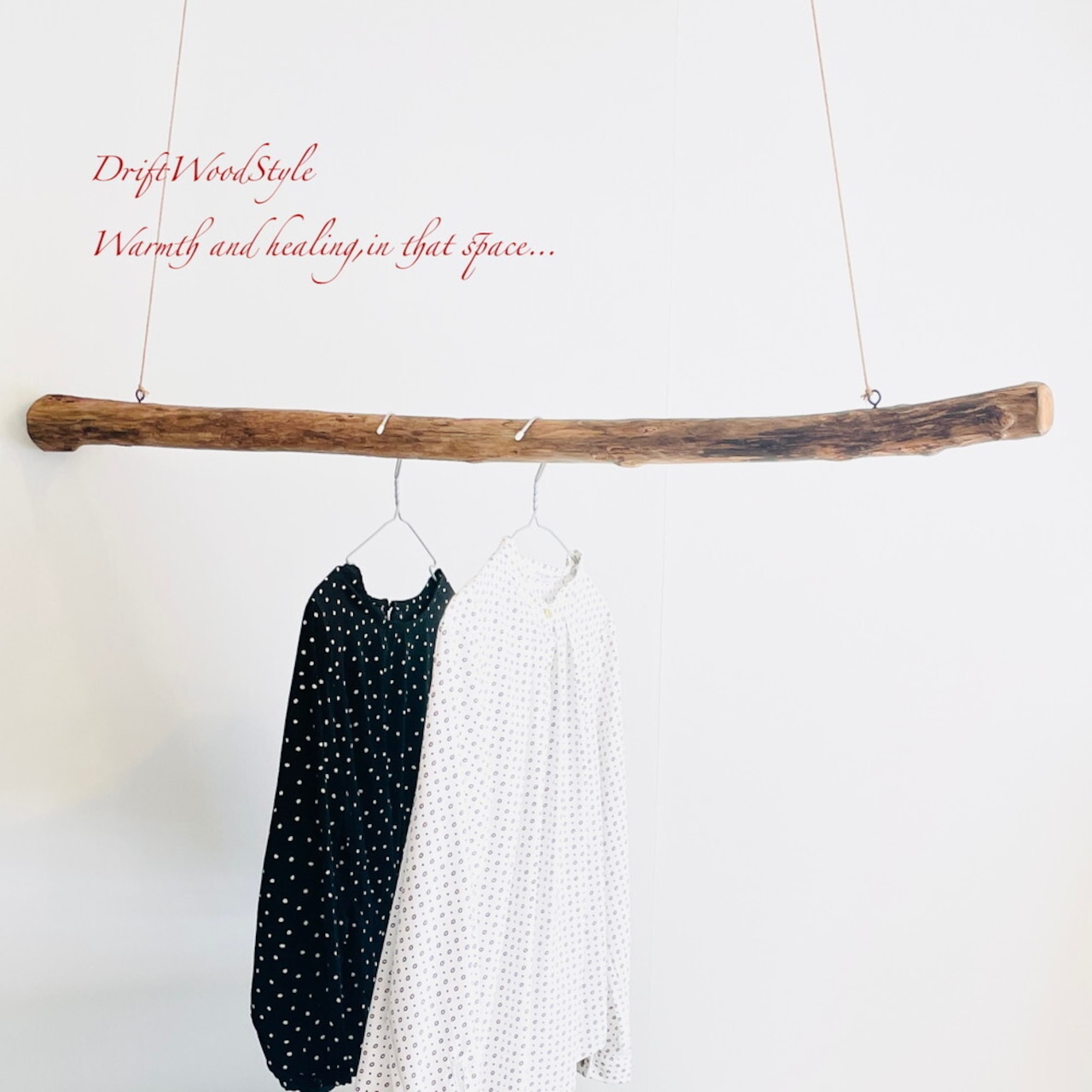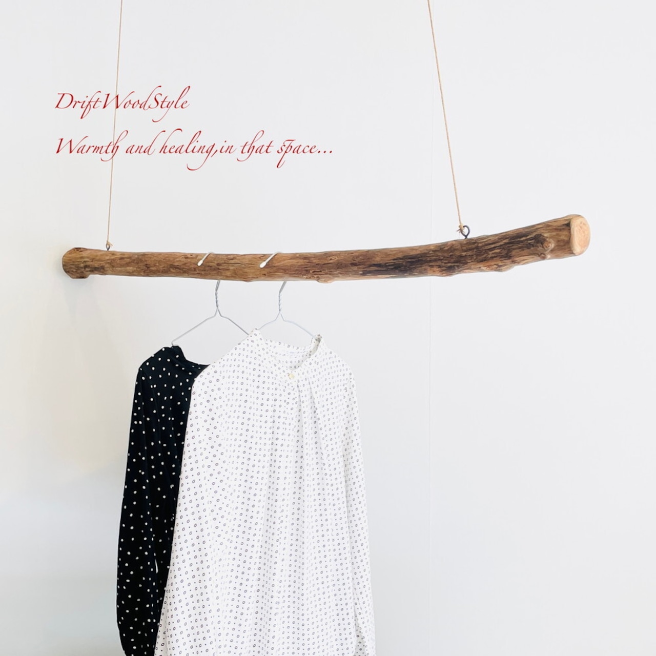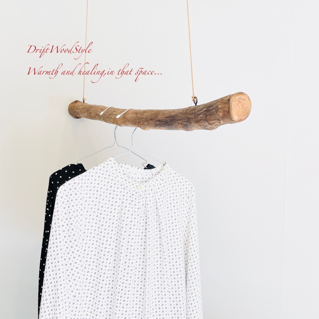 太い流木で作成しているため、ハンガーのフックがかけられない場合もあります。