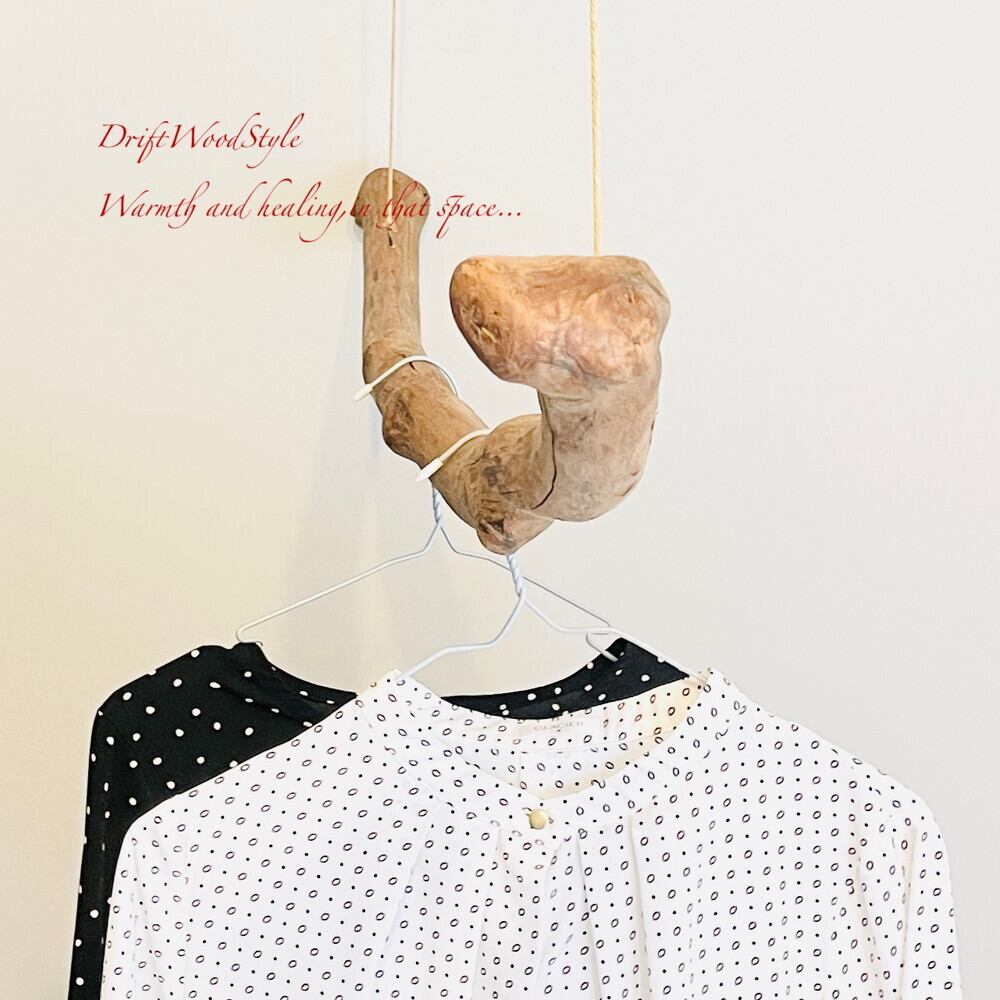 太い流木で作成しているため、ハンガーのフックがかけられない場合もあります。