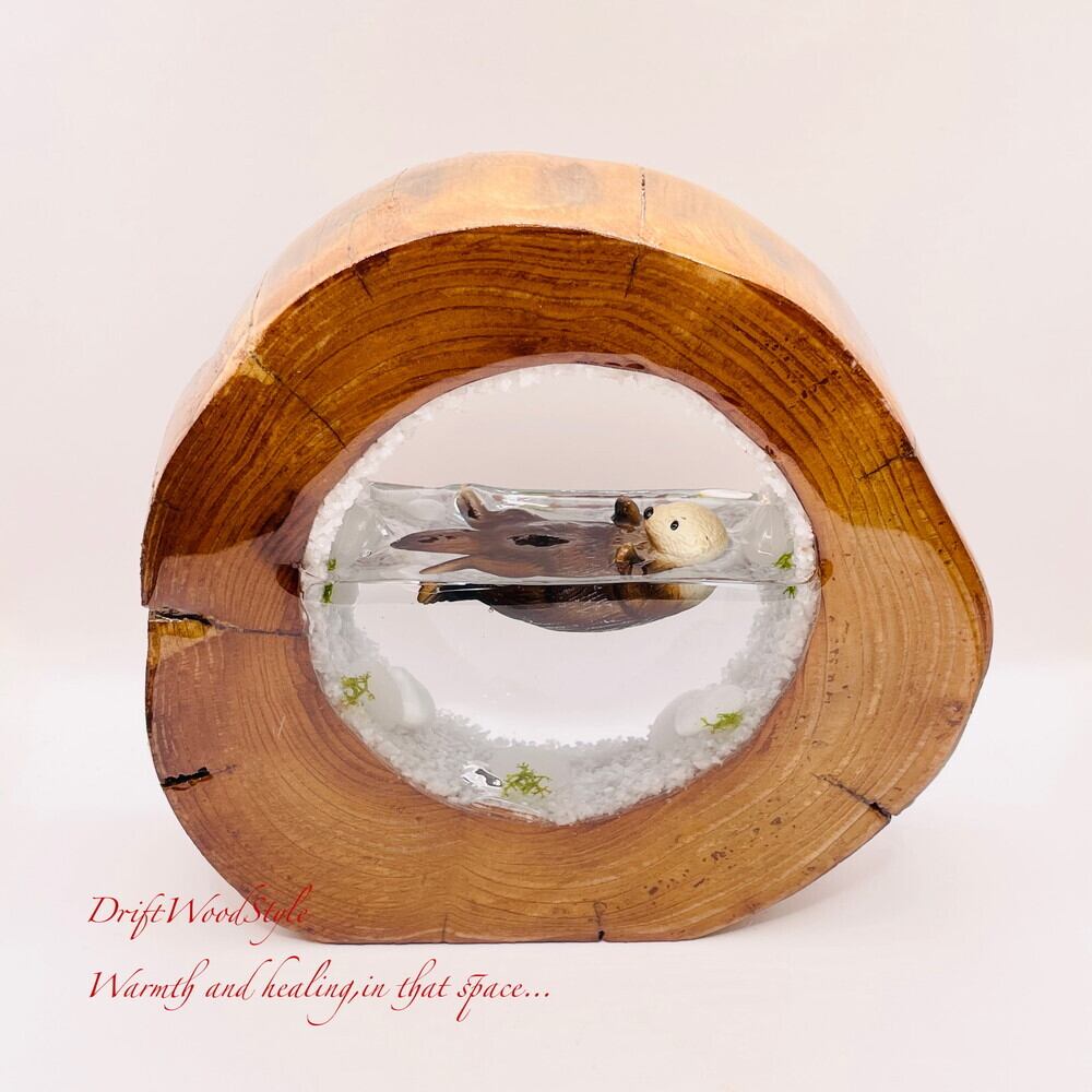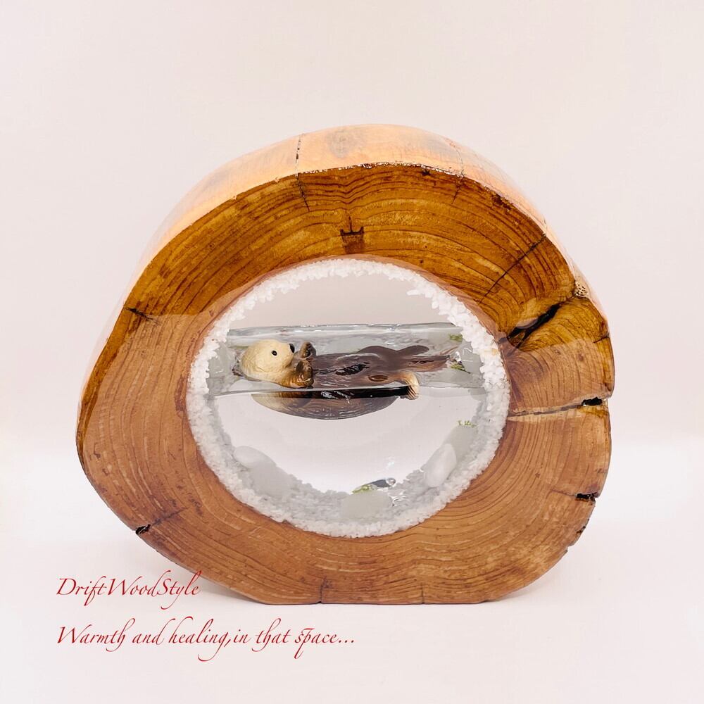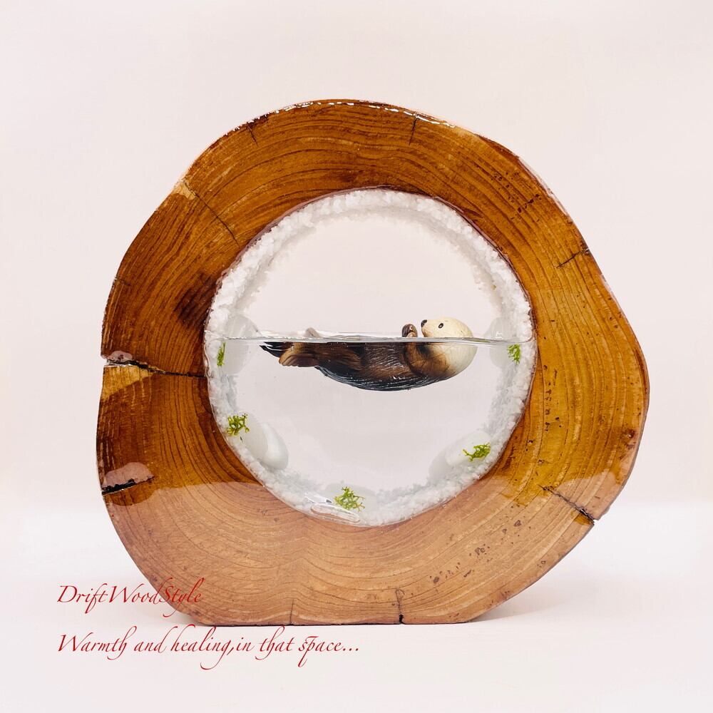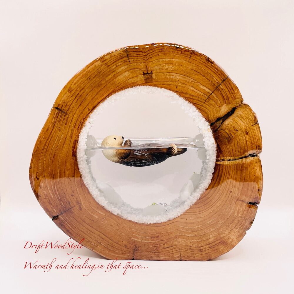 一つ限りの流木アート 海に浮かぶラッコ ジオラマ 流木 フィギュア 置物 インテリア レジン テラリウム 生き物 N30