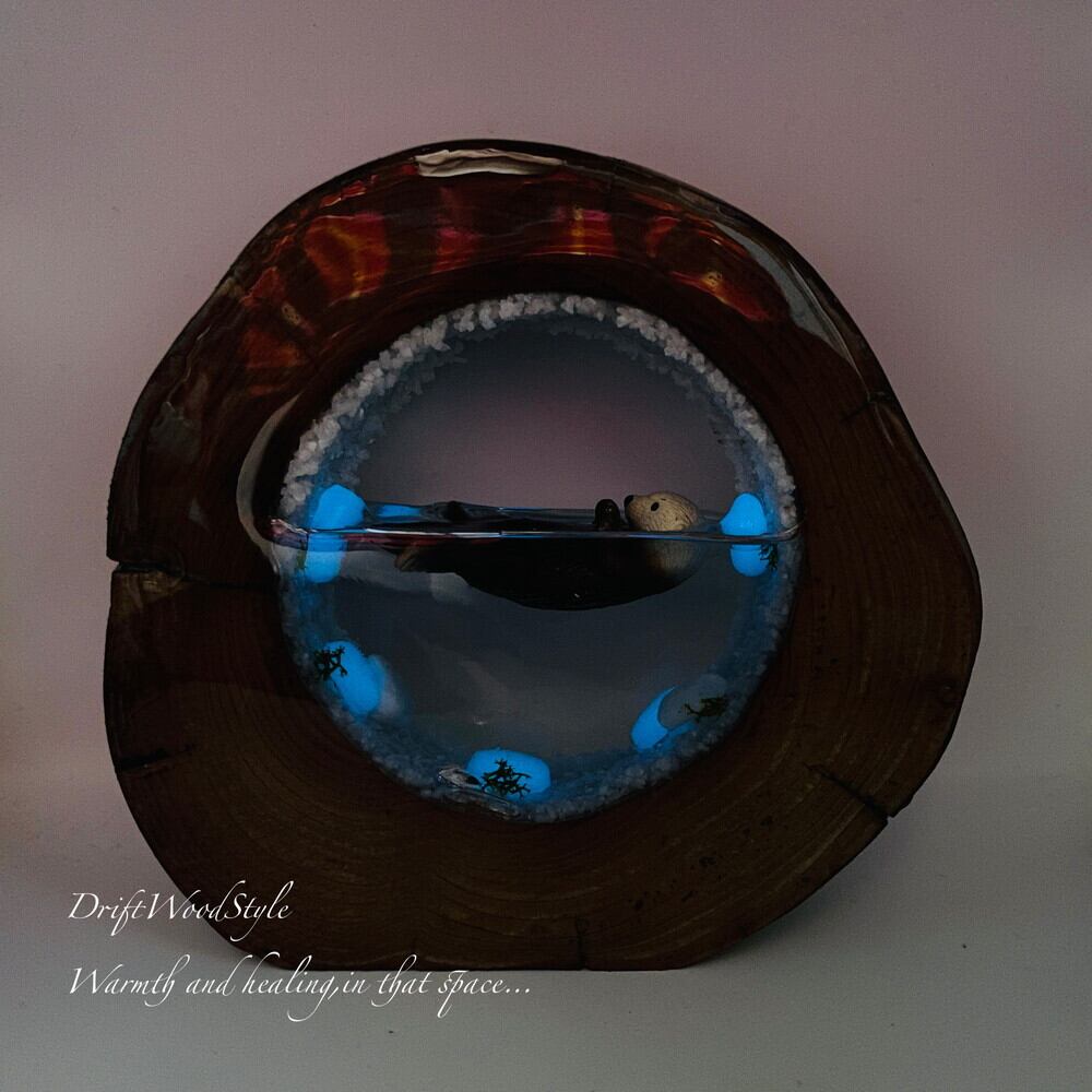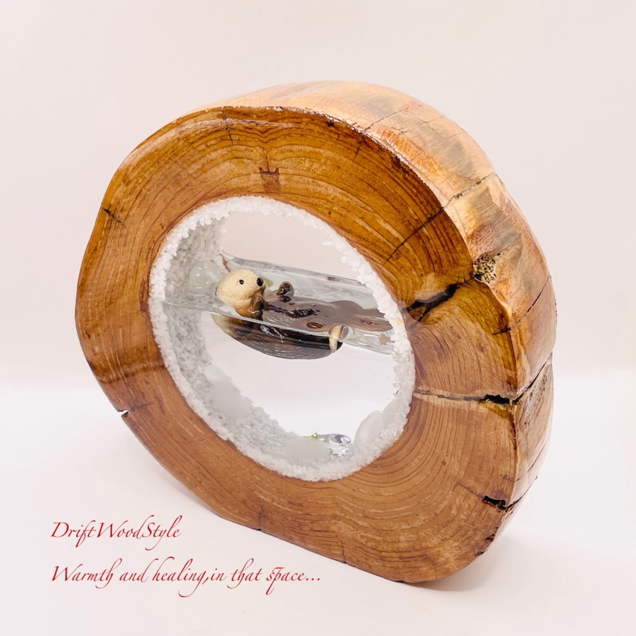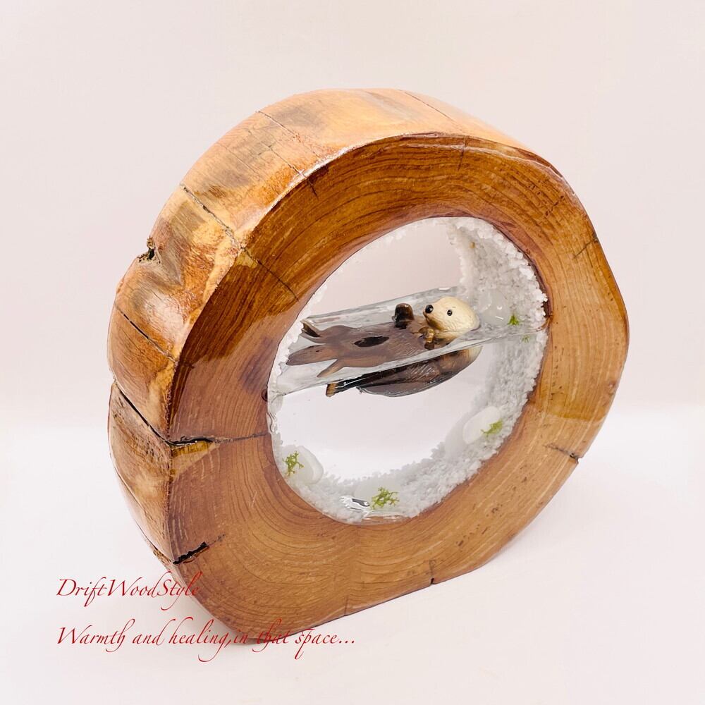 一つ限りの流木アート 海に浮かぶラッコ ジオラマ 流木 フィギュア 置物 インテリア レジン テラリウム 生き物 N30