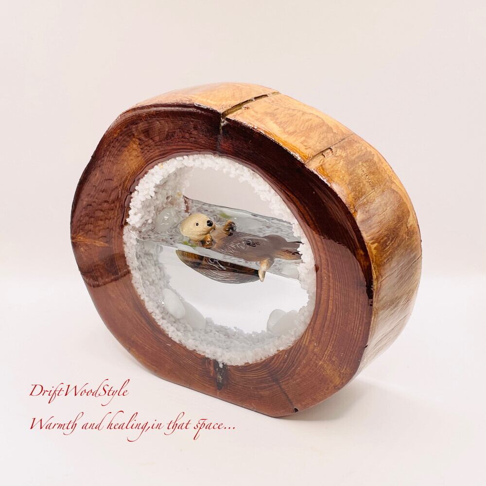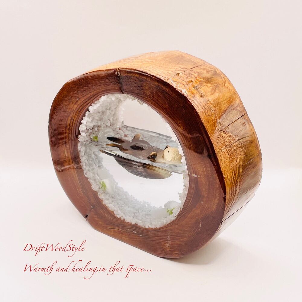 一つ限りの流木アート 海に浮かぶラッコ ジオラマ 流木 フィギュア 置物 インテリア レジン テラリウム 生き物 N31