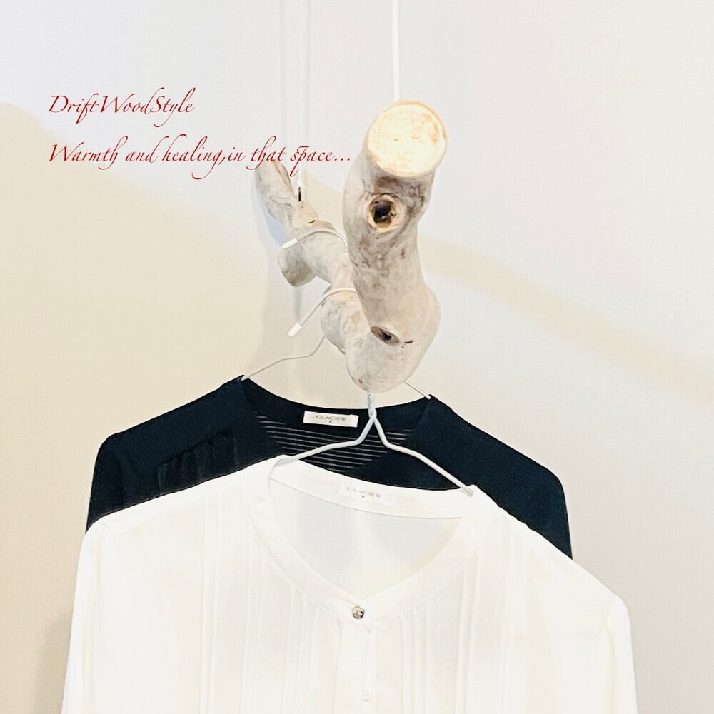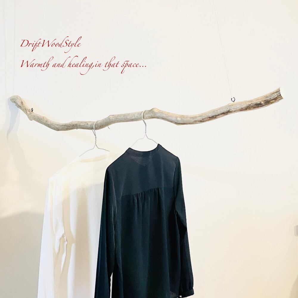 シンプルで真っすぐな大型流木のハンガーラックです。