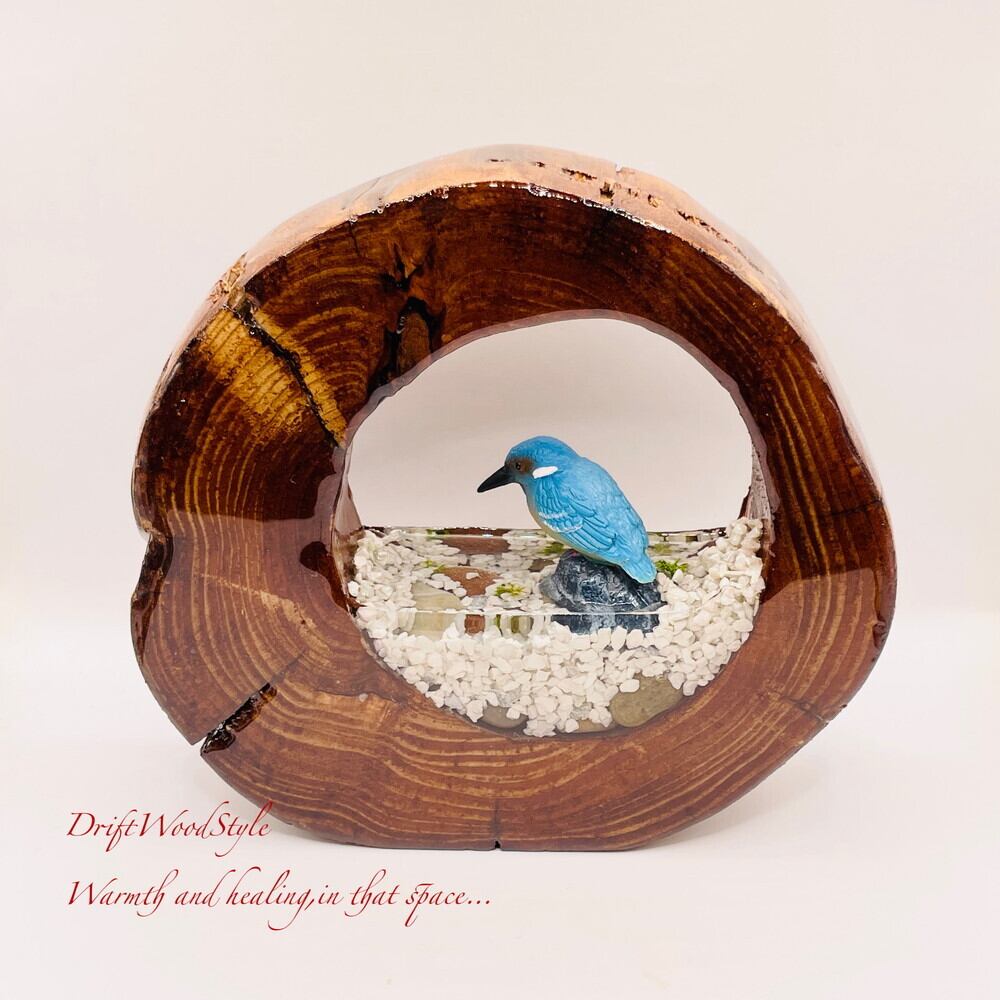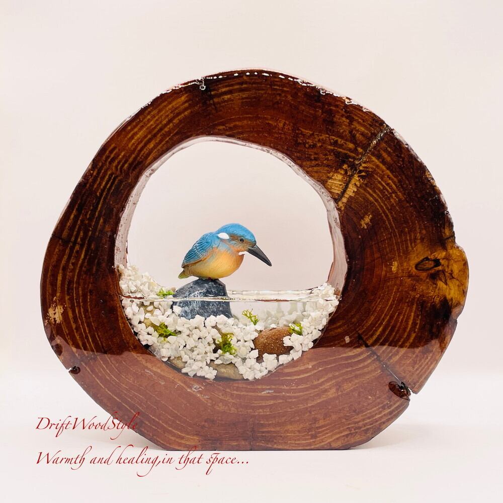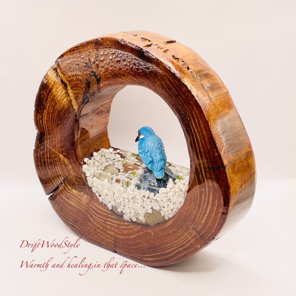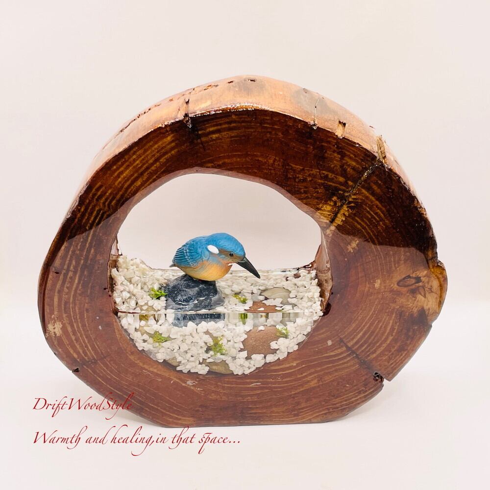 一つ限りの流木アート 水辺のカワセミ ジオラマ 流木 フィギュア 置物 動物 鳥 インテリア レジン 水辺 N39