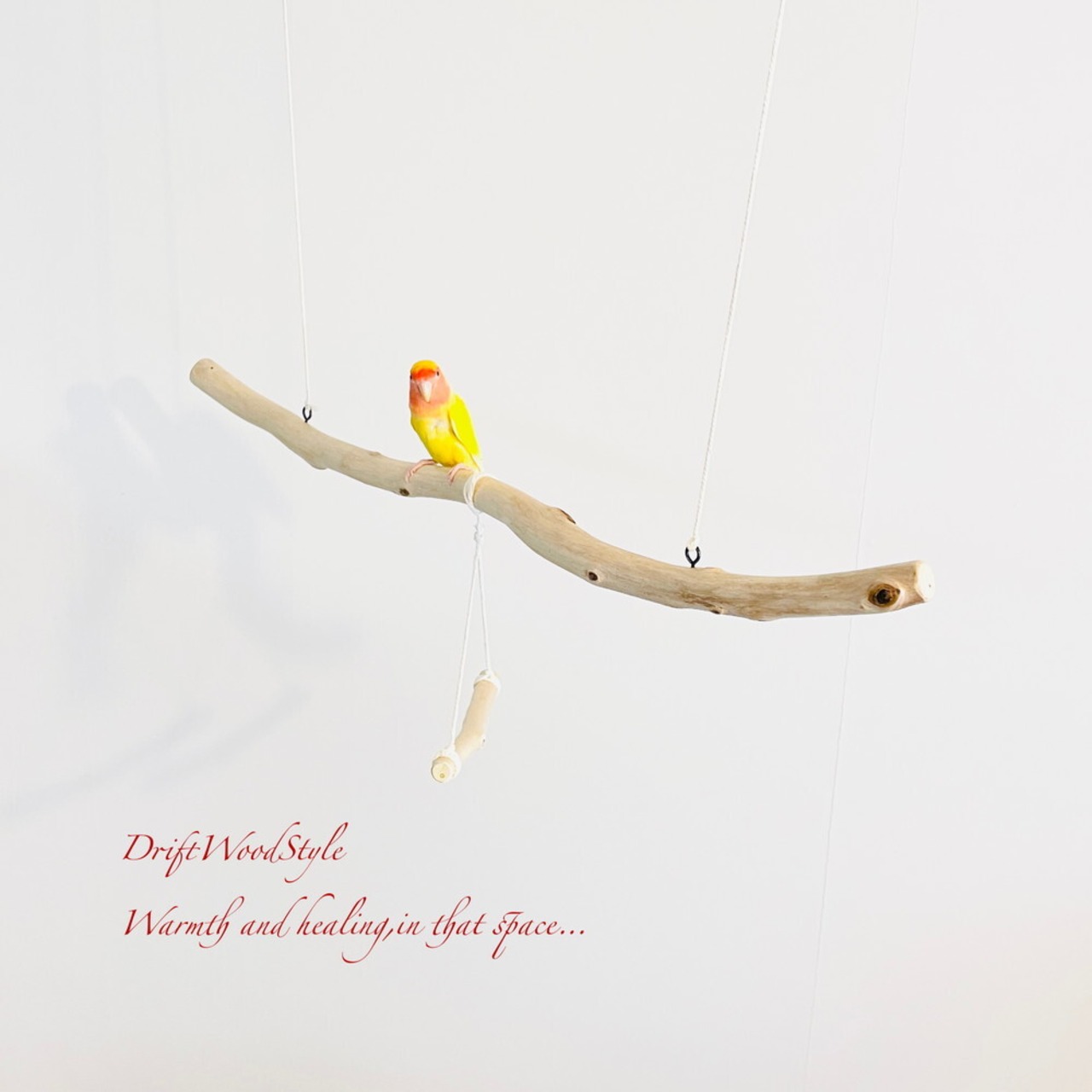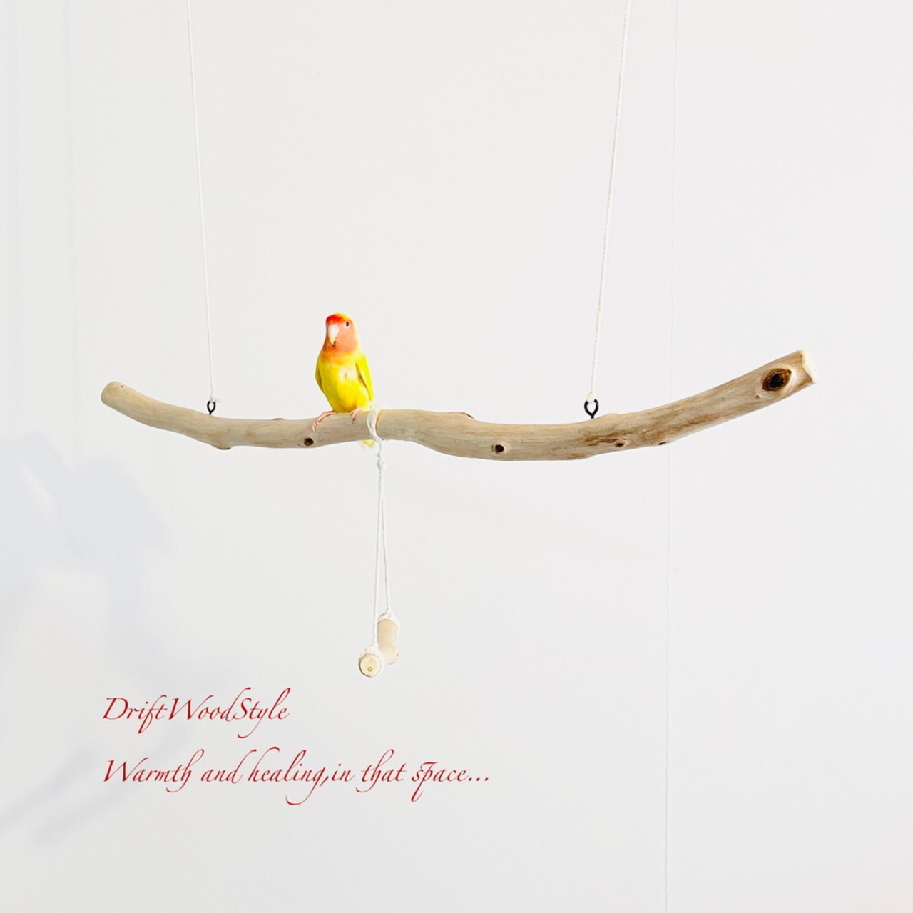 長い流木枝で小鳥が遊べる吊り下げタイプの止まり木です。