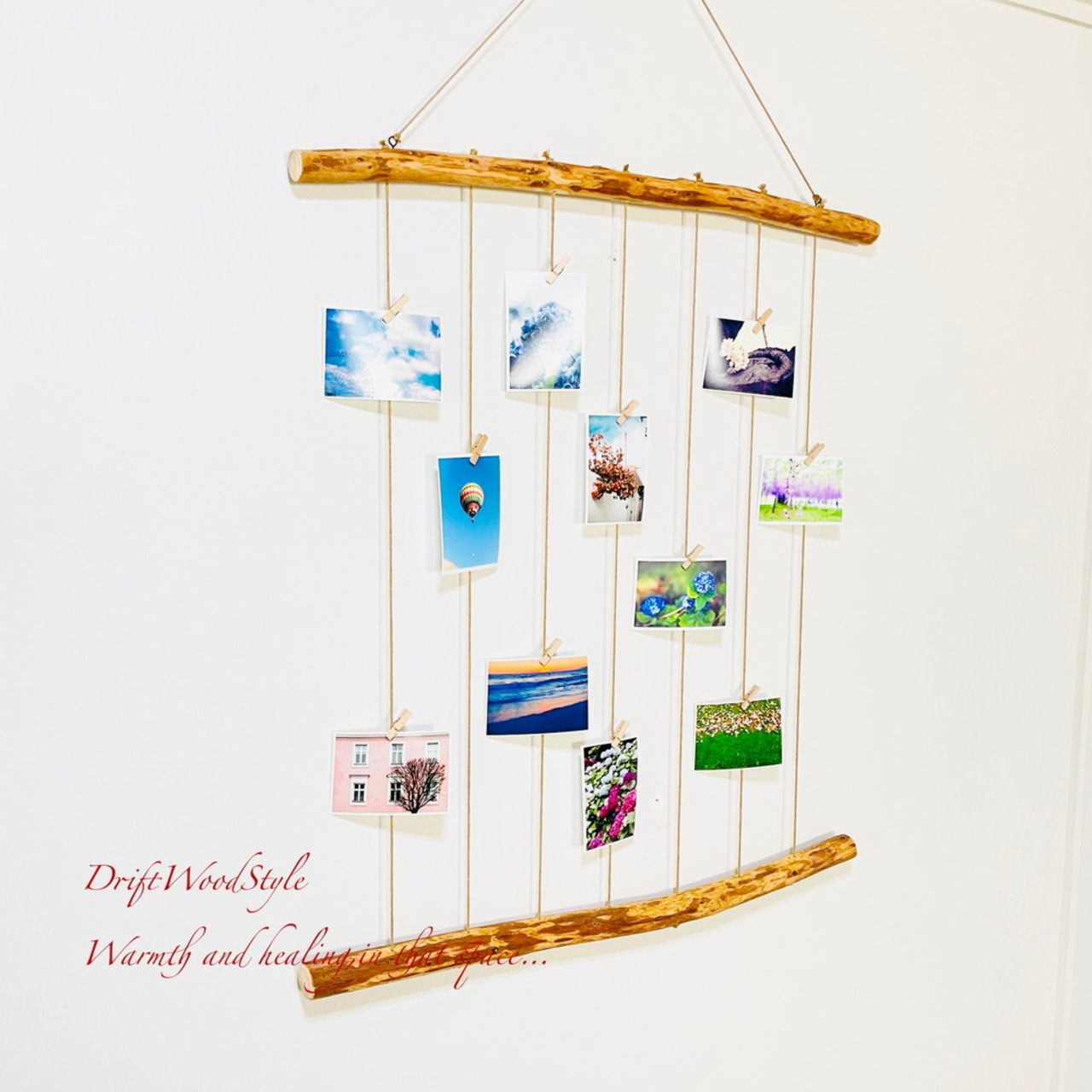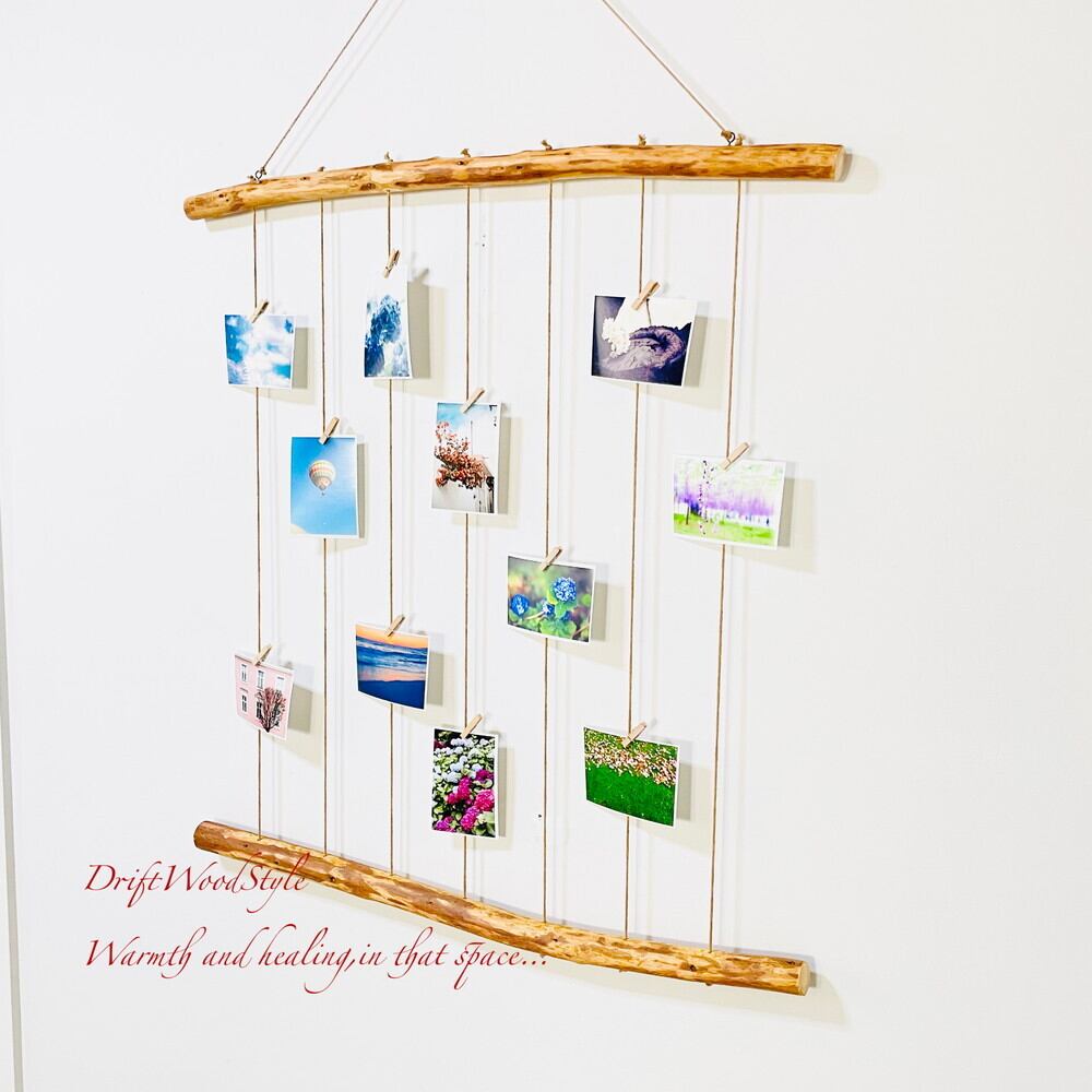 流木インテリア 壁一面に写真を飾れる大サイズのフォトディスプレイ 流木 写真ハンガー ウォールデコ 壁掛け N15