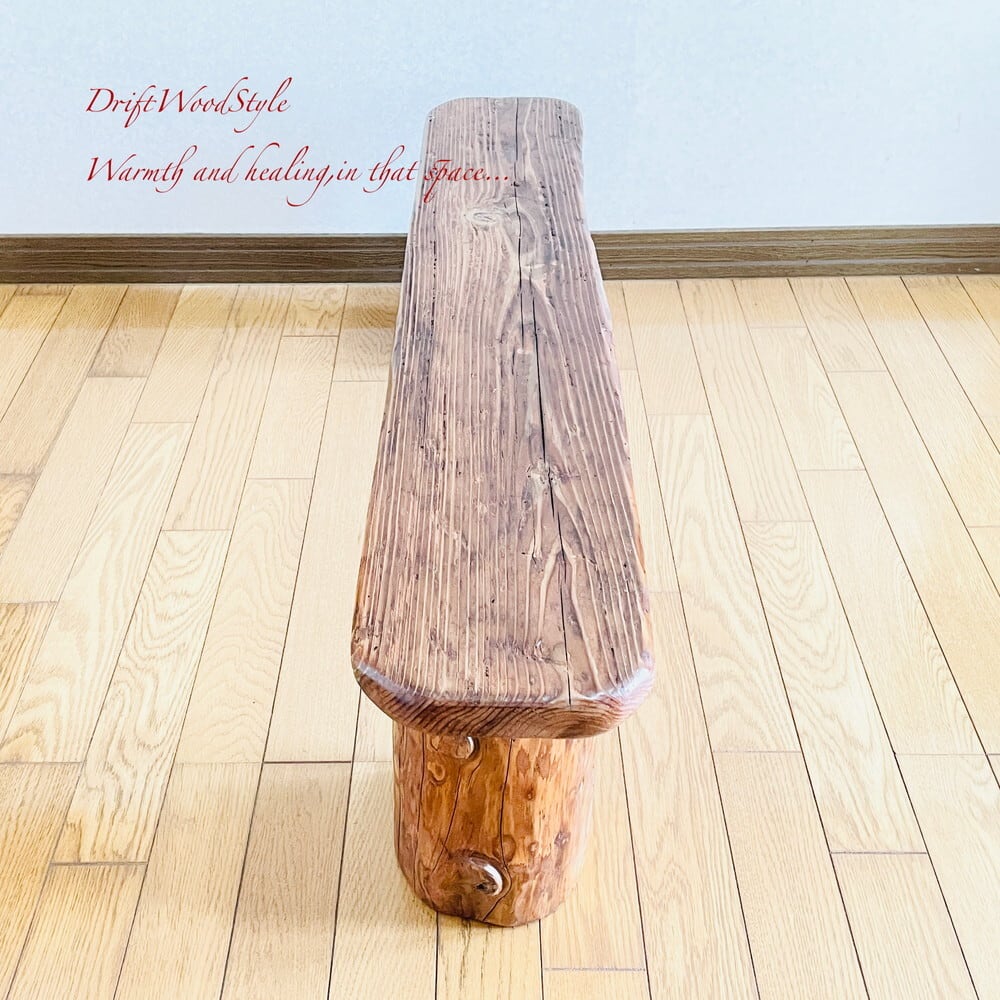厚さ3cmの舟板の流木板を使用した一点物の流木ベンチです。