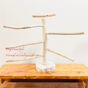 支柱に空いている穴に枝をはめ込んで、自由にアレンジできますし、一番上の横木も回転して調整できます。