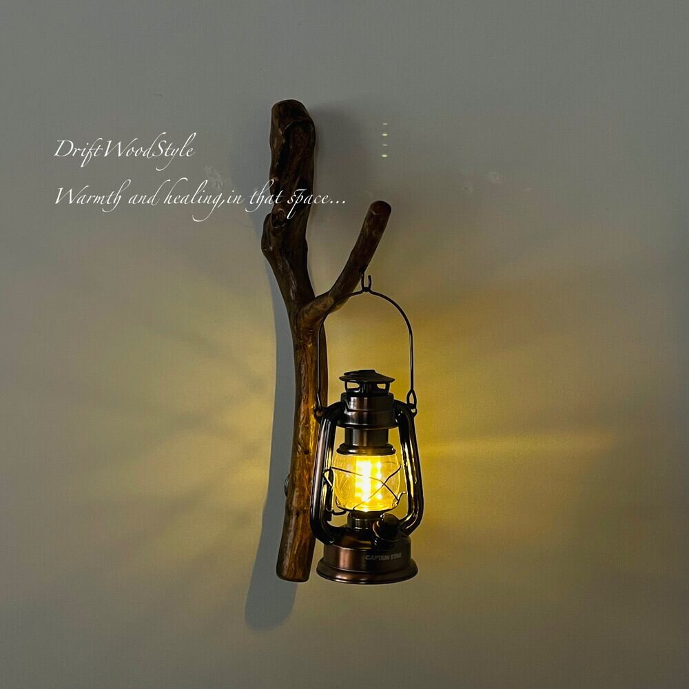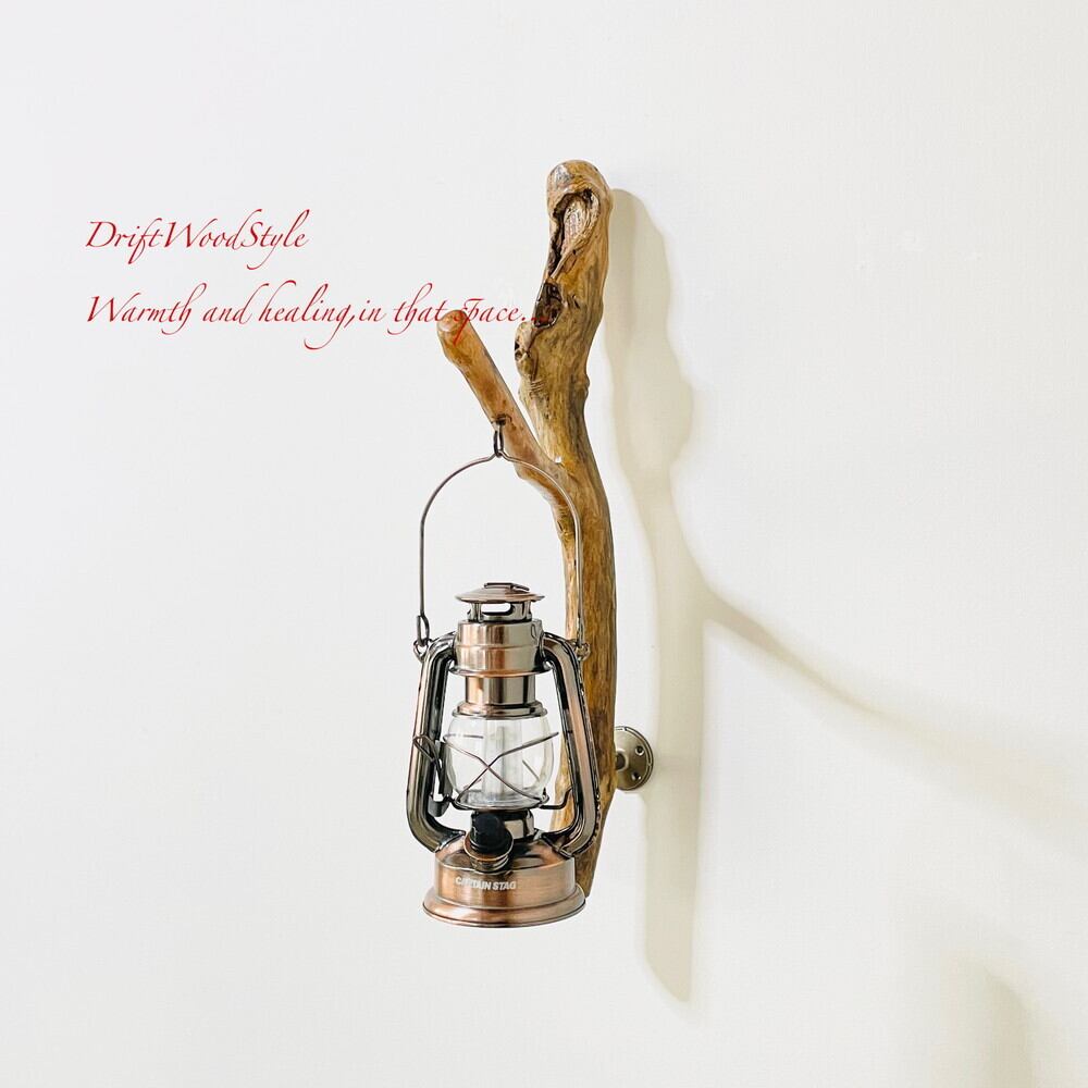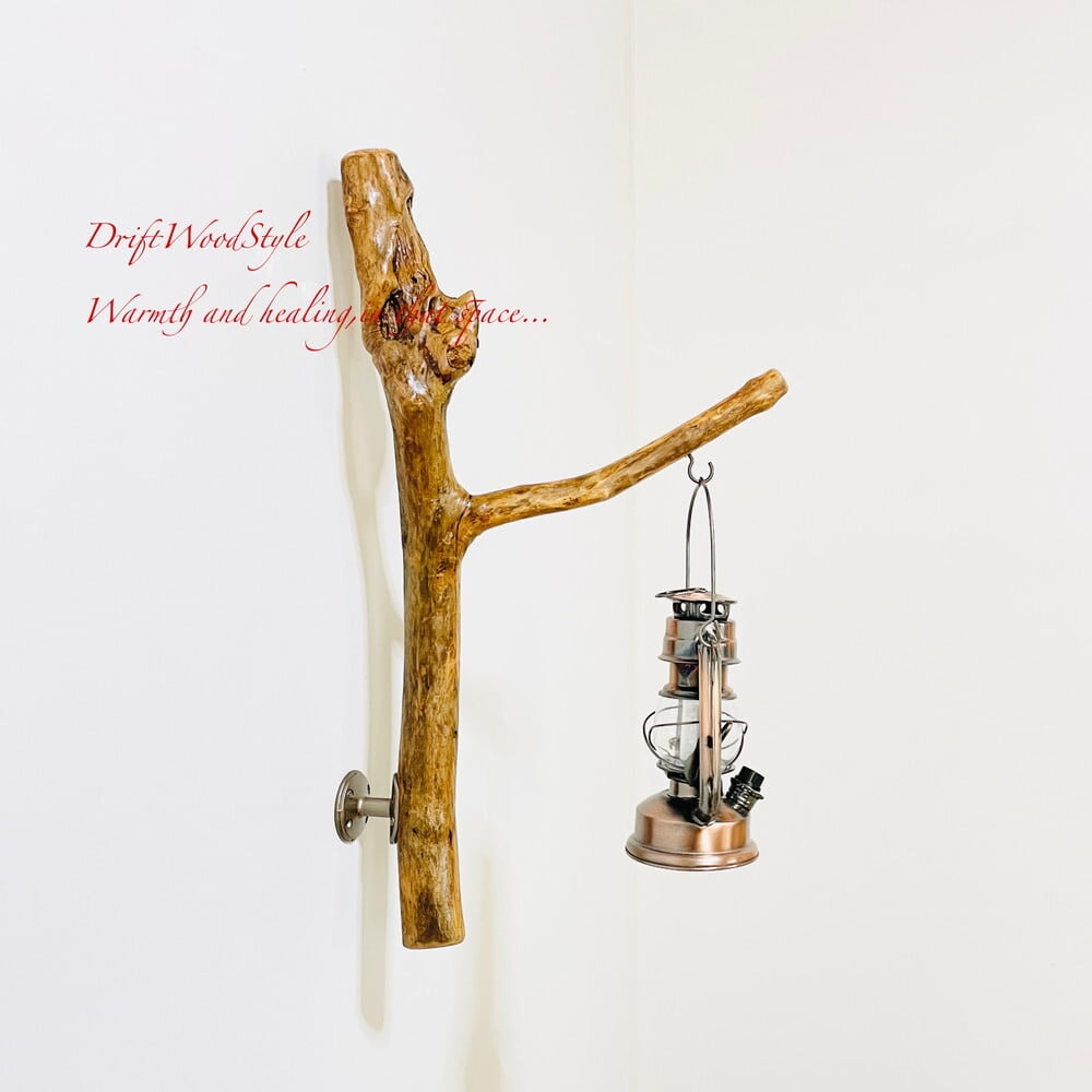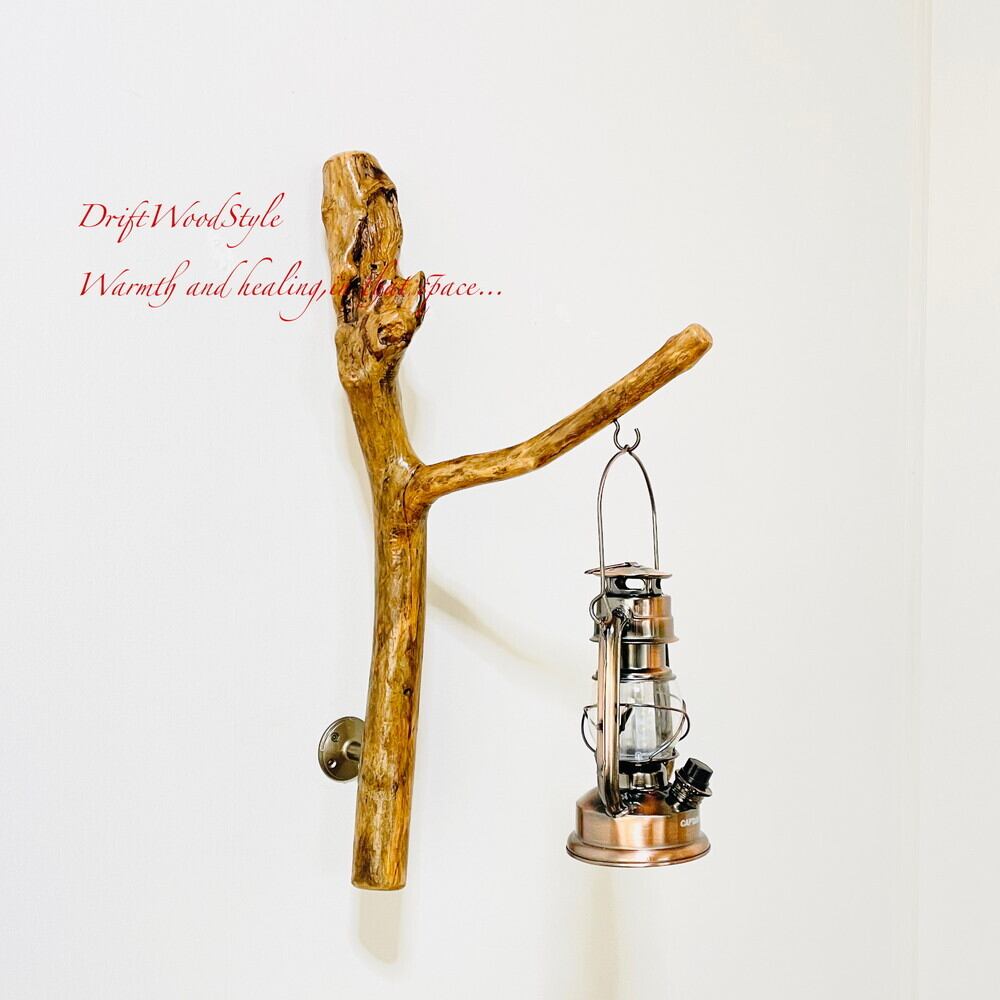ランプや小物を飾れる天然流木の壁掛け流木スタンドです。