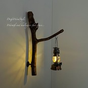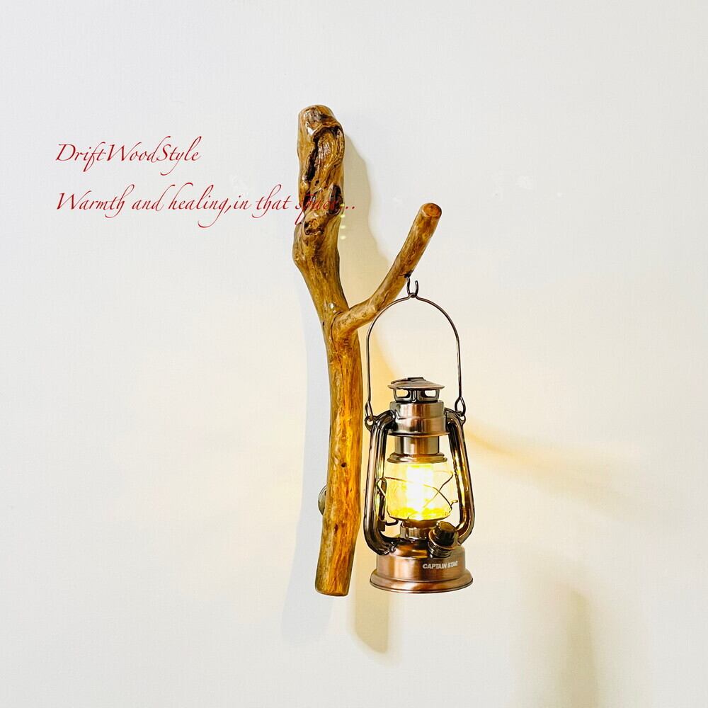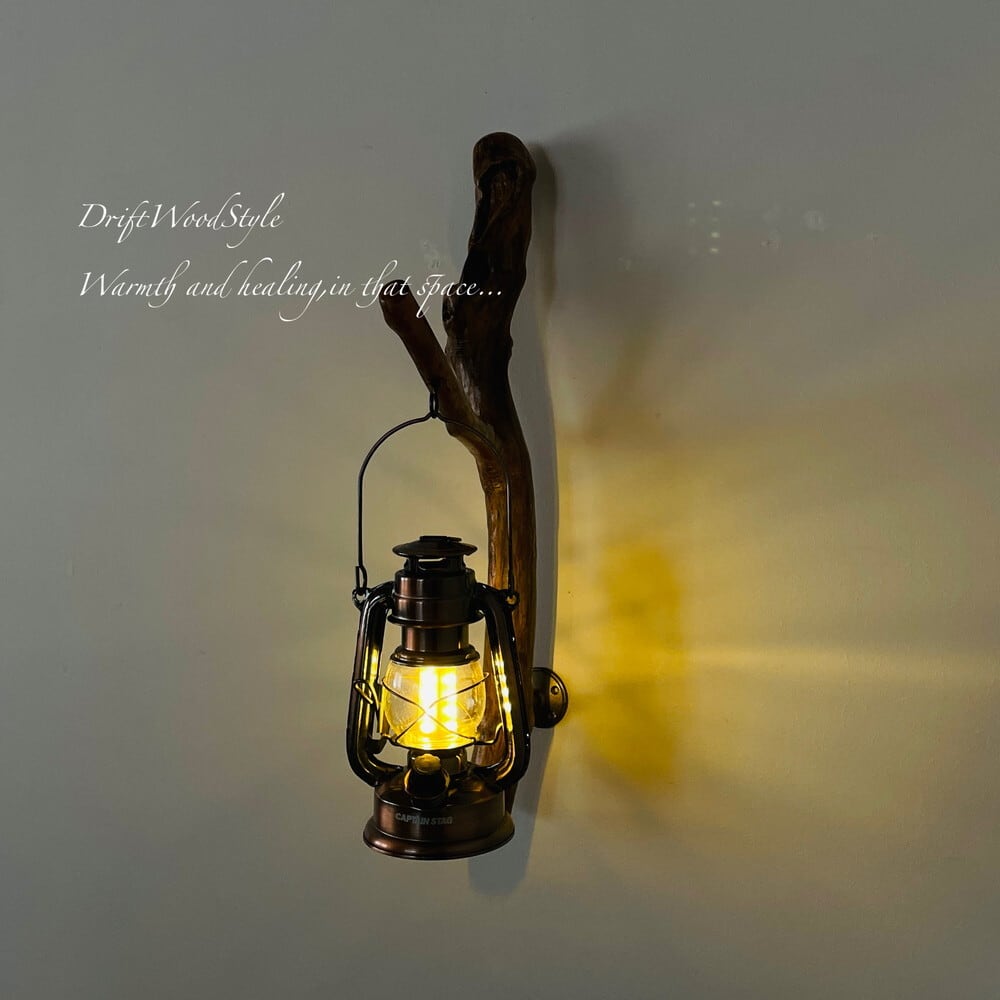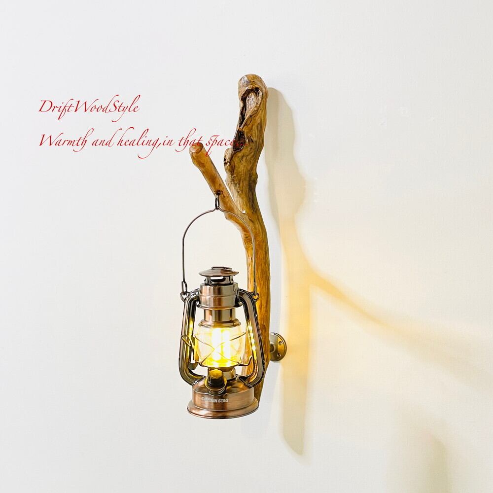 ランプや小物を飾れる天然流木の壁掛け流木スタンドです。