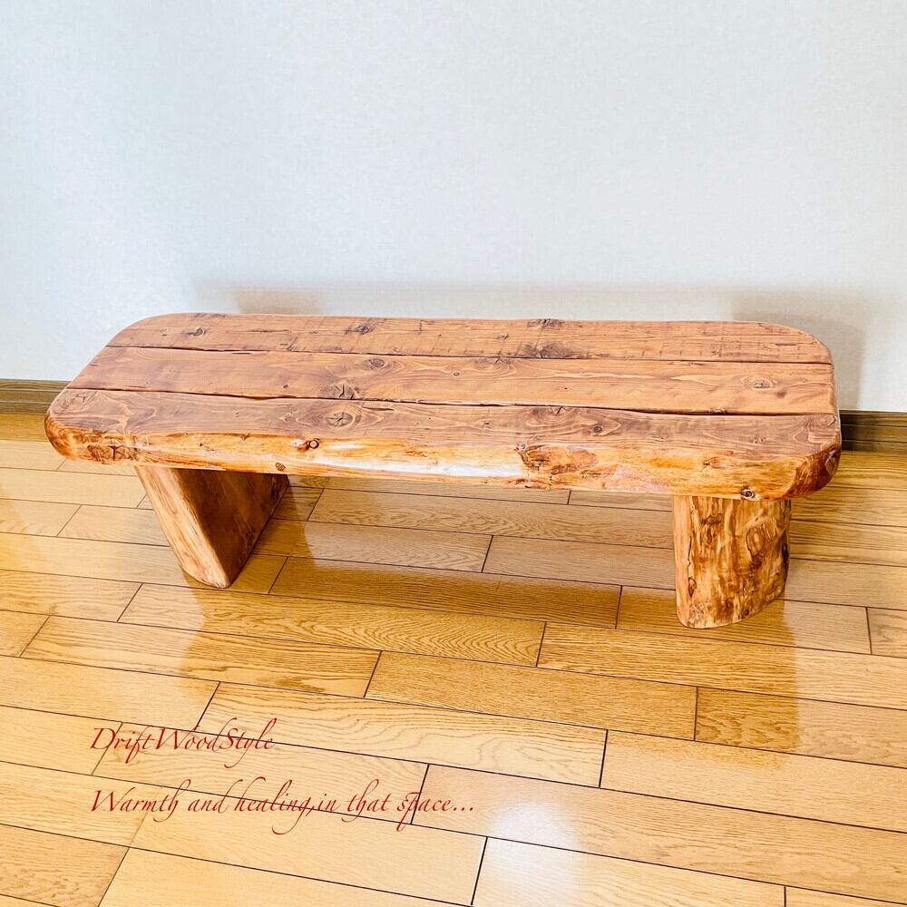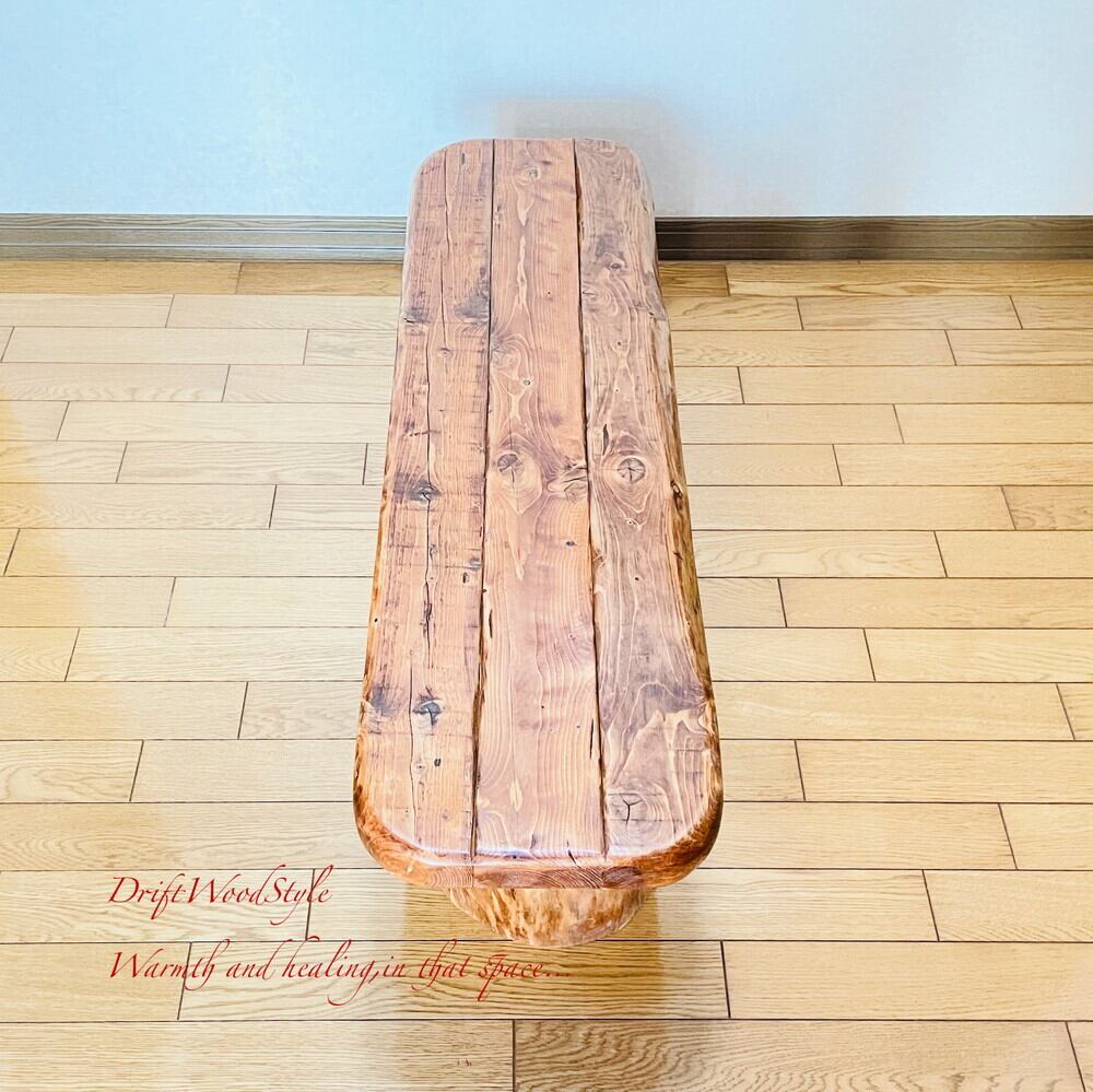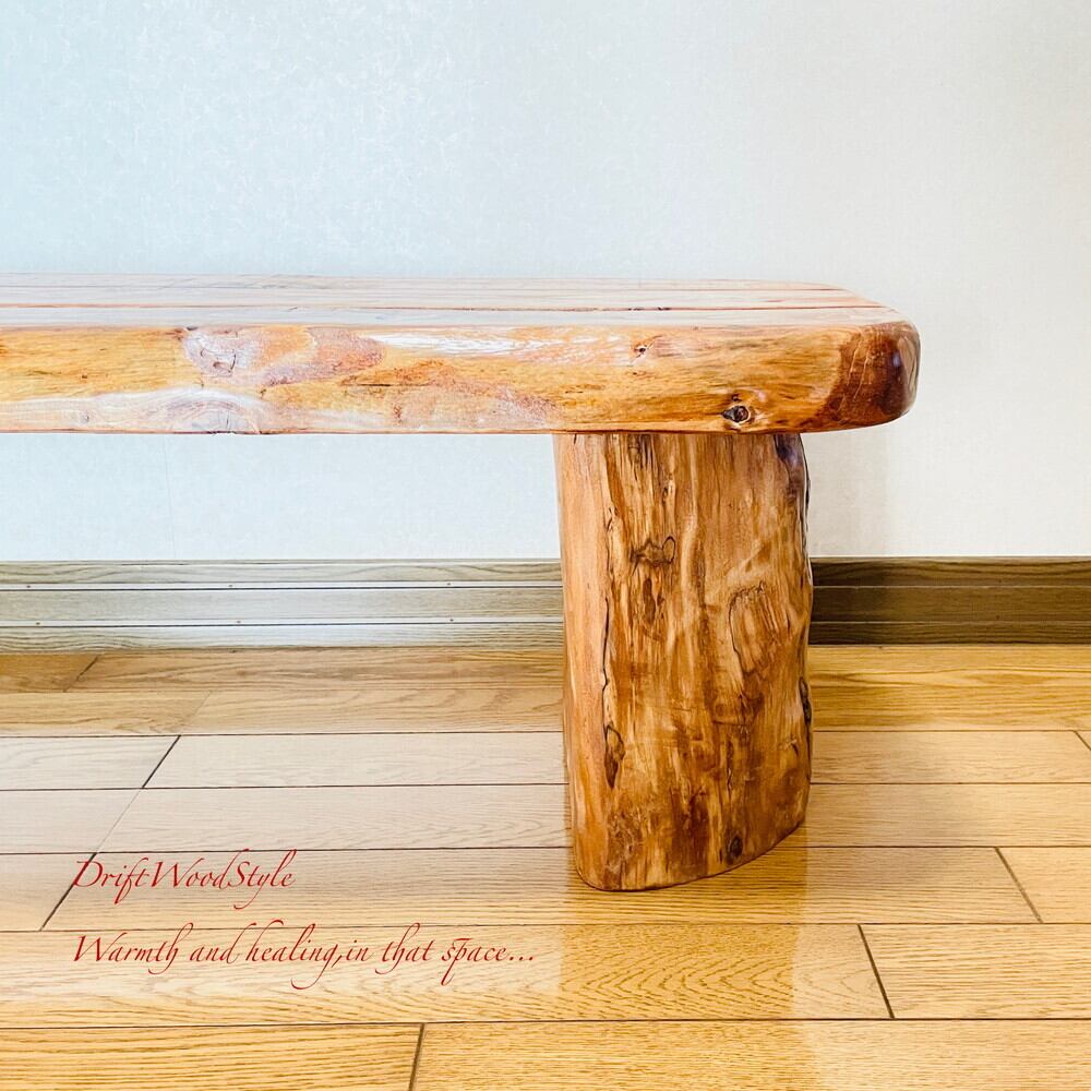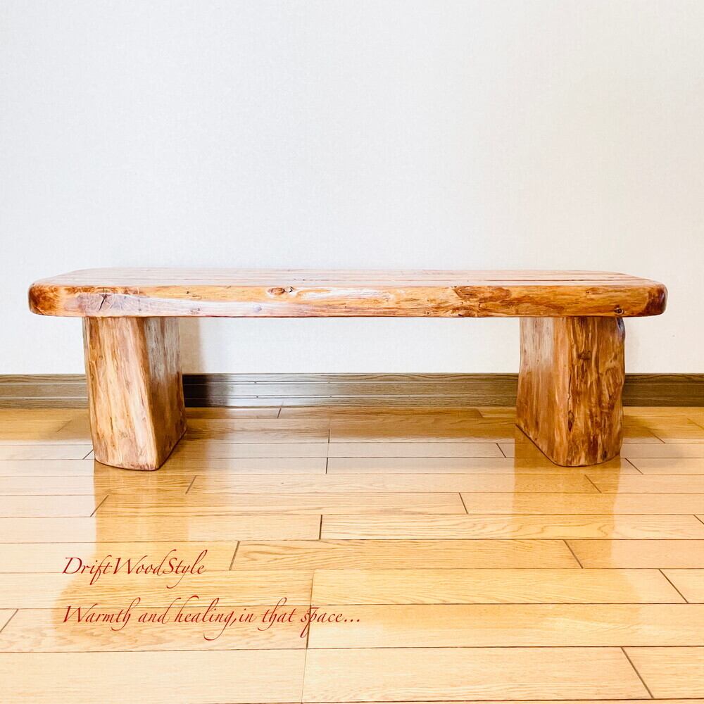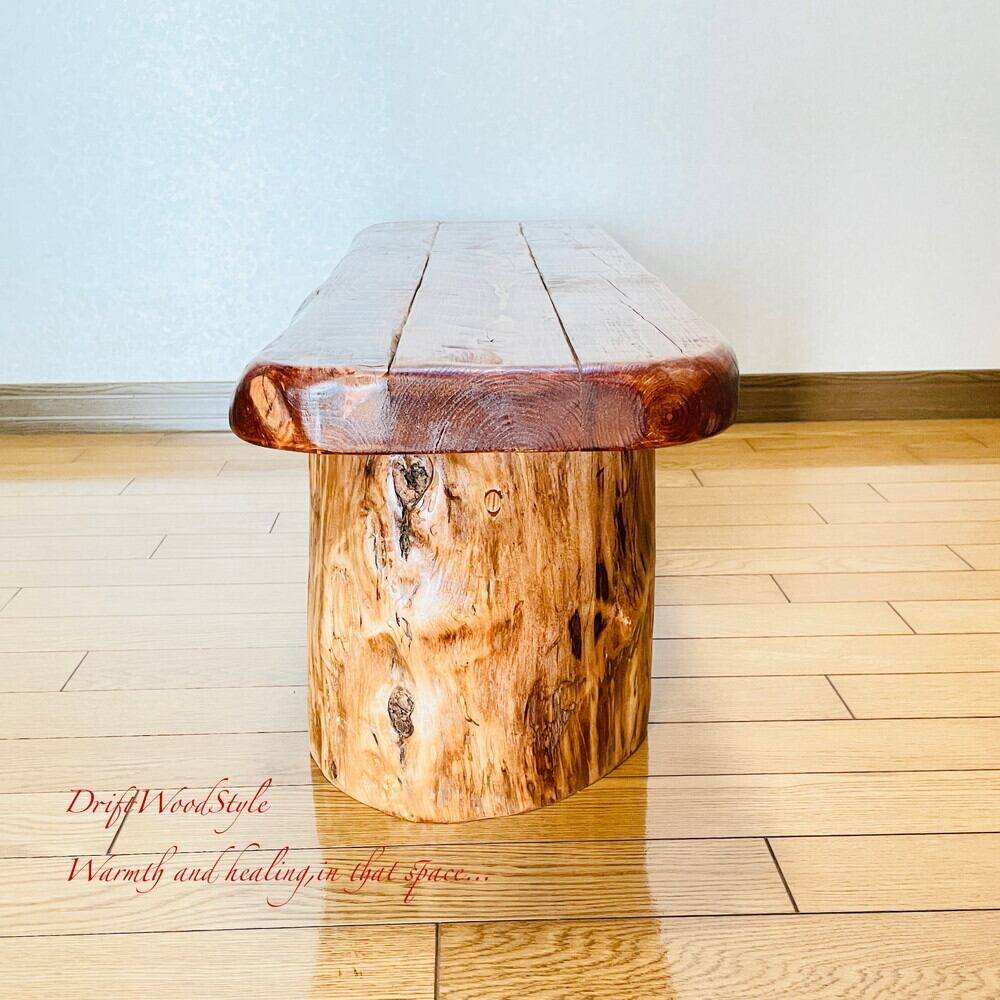 脚の部分は半分に割れた丸太流木を使用しており重厚感があります。