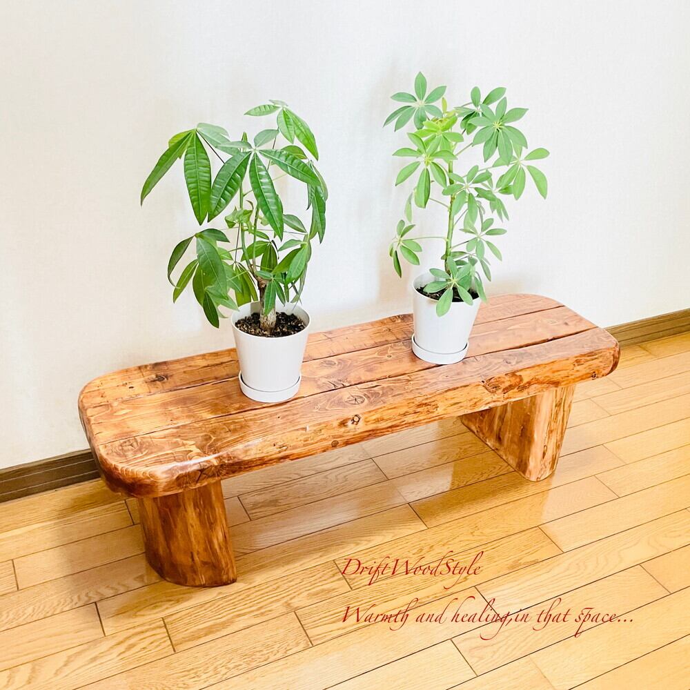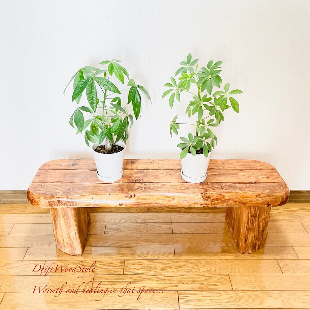 流木板を使用した圧倒的な存在感を醸す流木ベンチです。