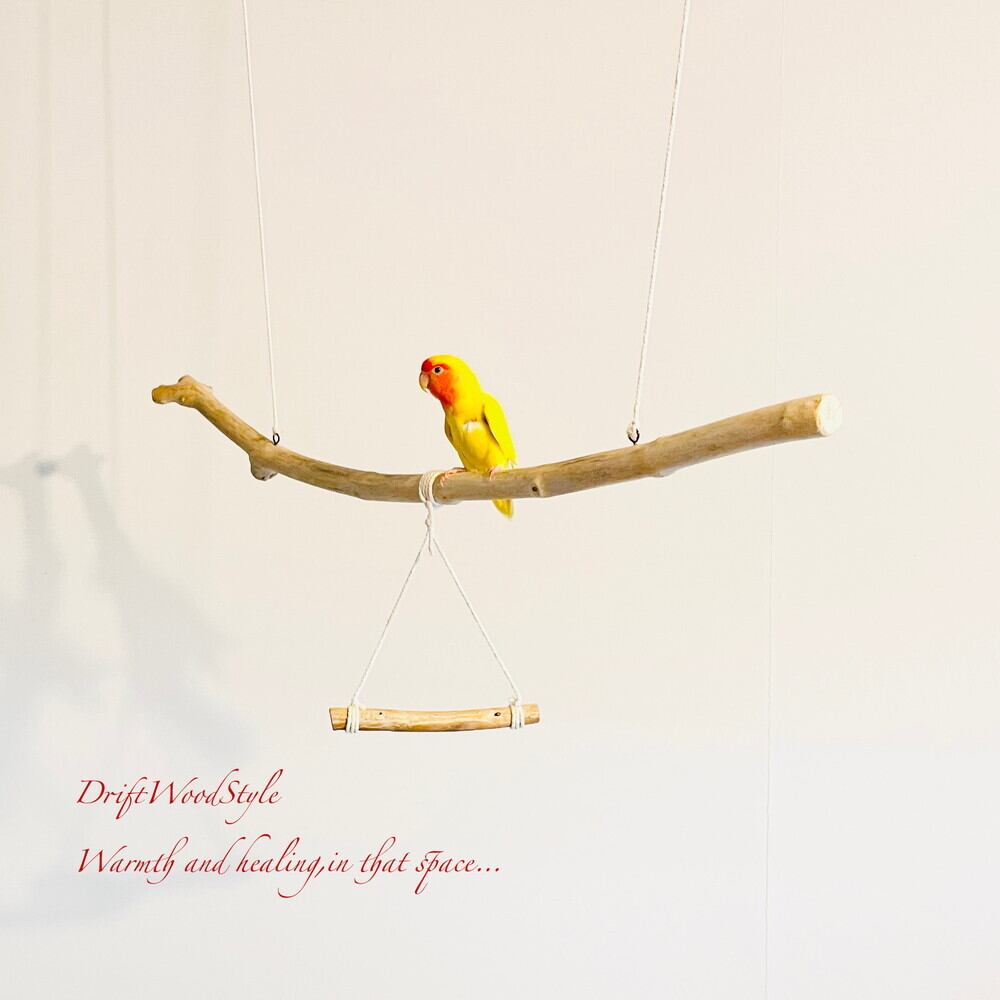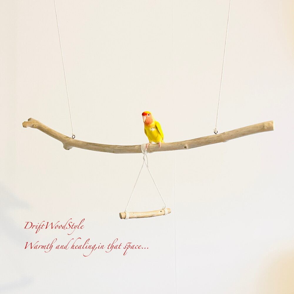 長い流木枝で小鳥が遊べる吊り下げタイプの止まり木です。