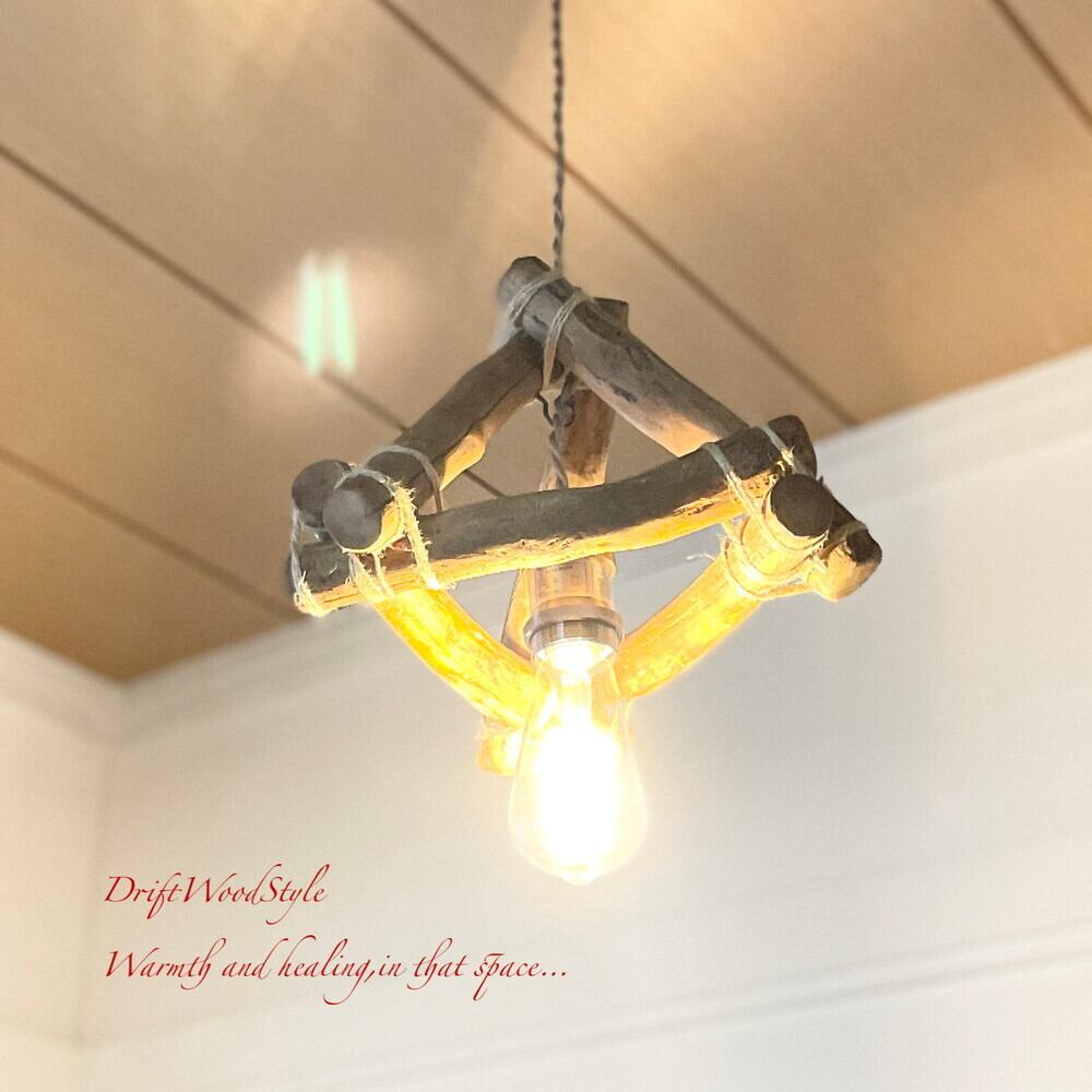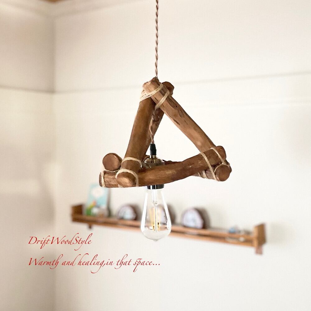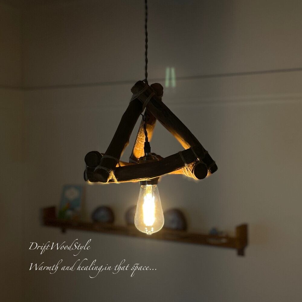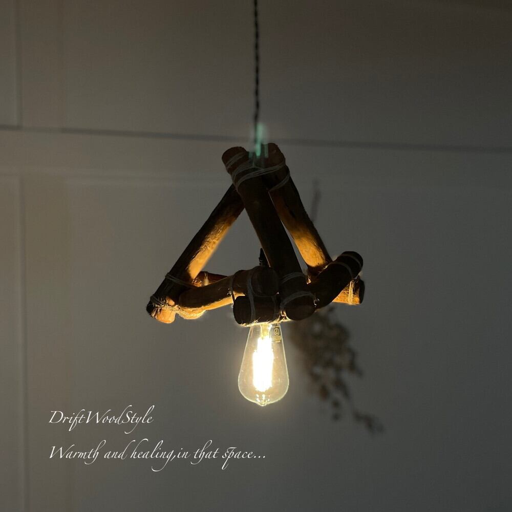 部屋の照明が流木になるとログハウスのような雰囲気になり,部屋全体の印象が変わります。