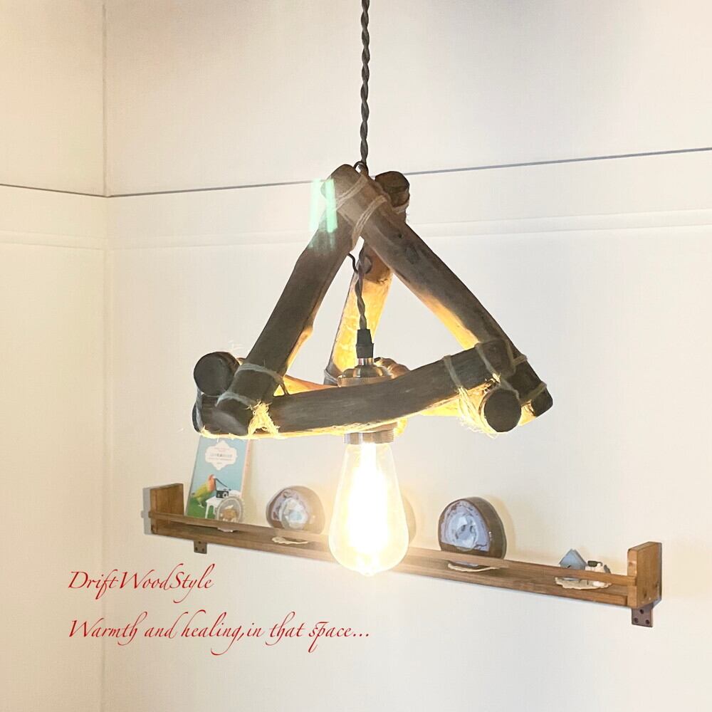 流木のシェードがレトロな雰囲気を醸し出し,味わい深い照明となっています。