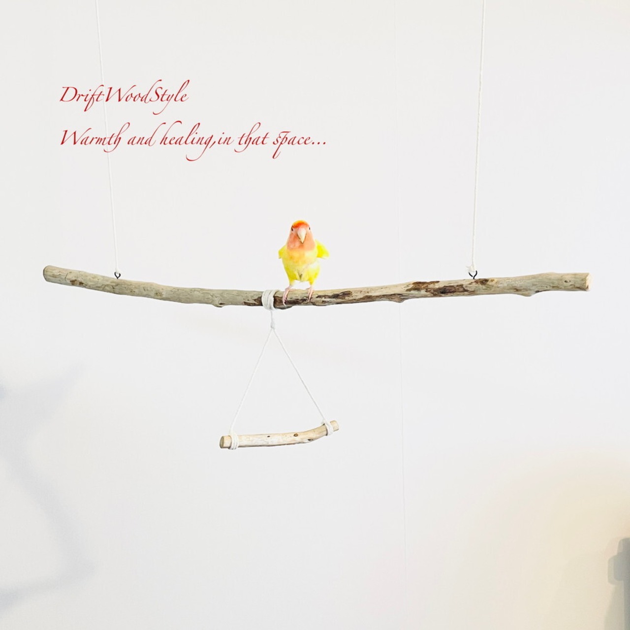 長い流木枝で小鳥が遊べる吊り下げタイプの止まり木です。