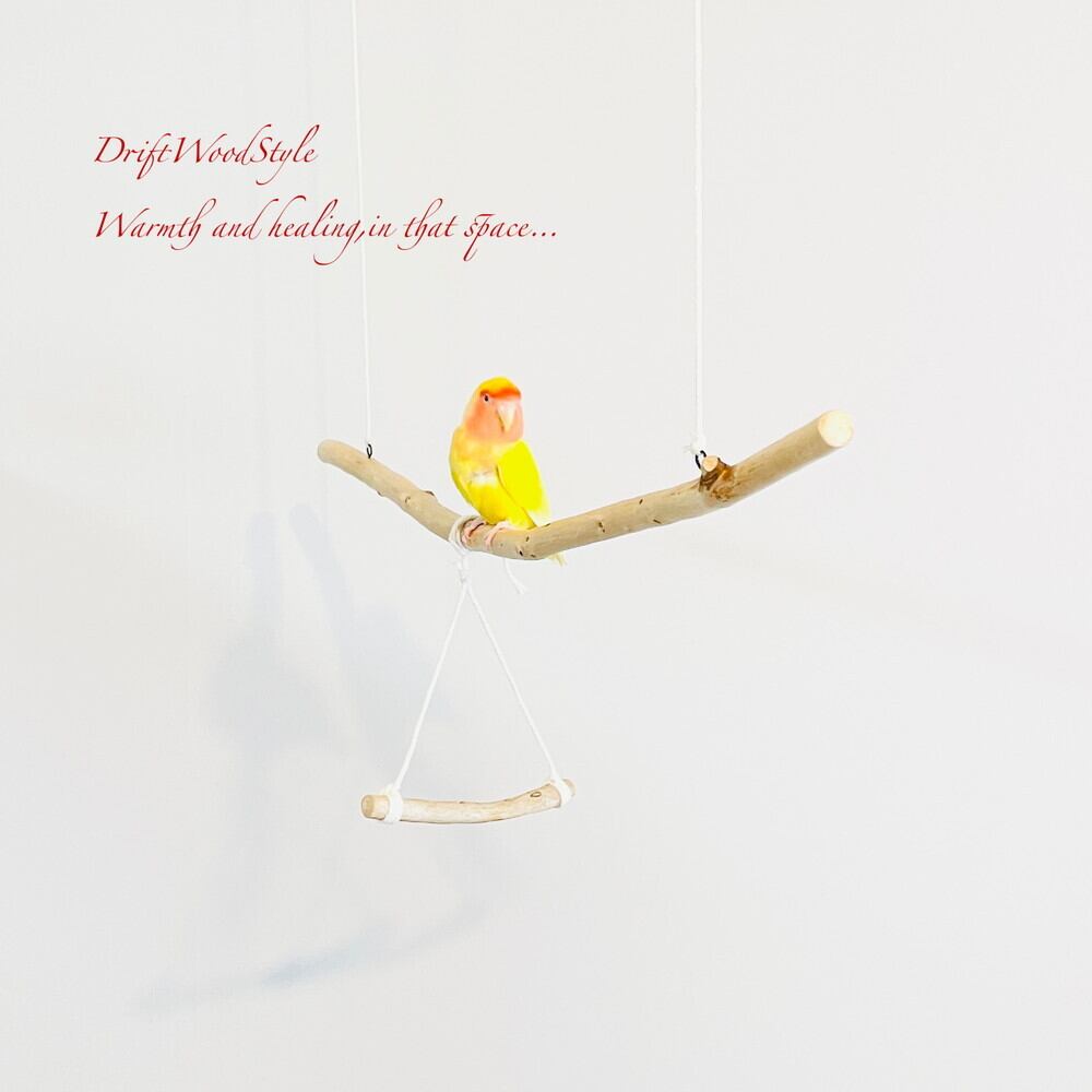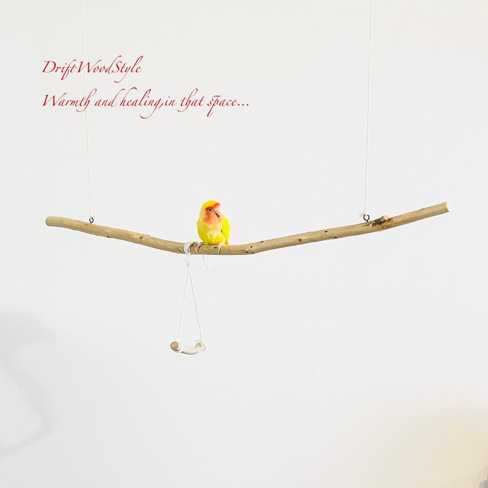 長い流木枝で小鳥が遊べる吊り下げタイプの止まり木です。