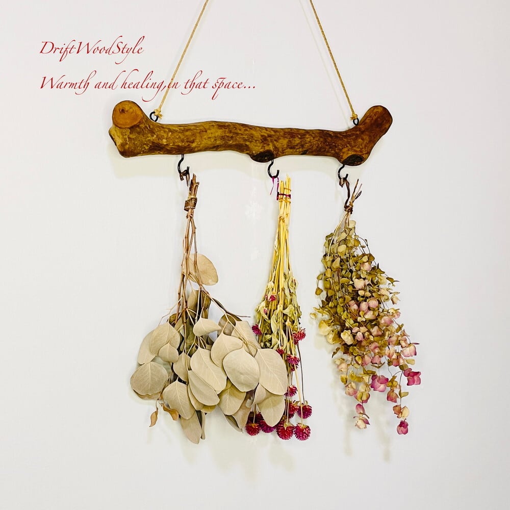 壁に流木のハンガーフックを飾るだけで,温かみが増しお部屋の雰囲気が変わります。