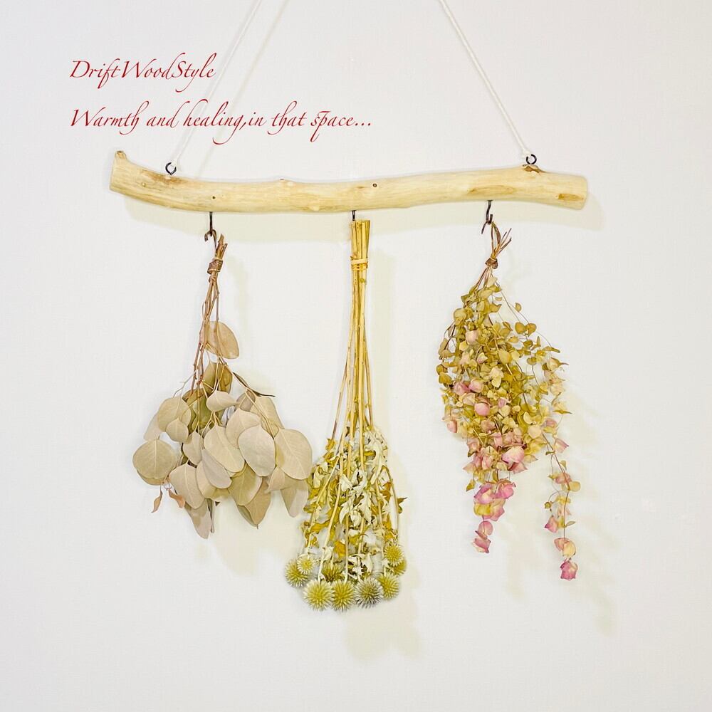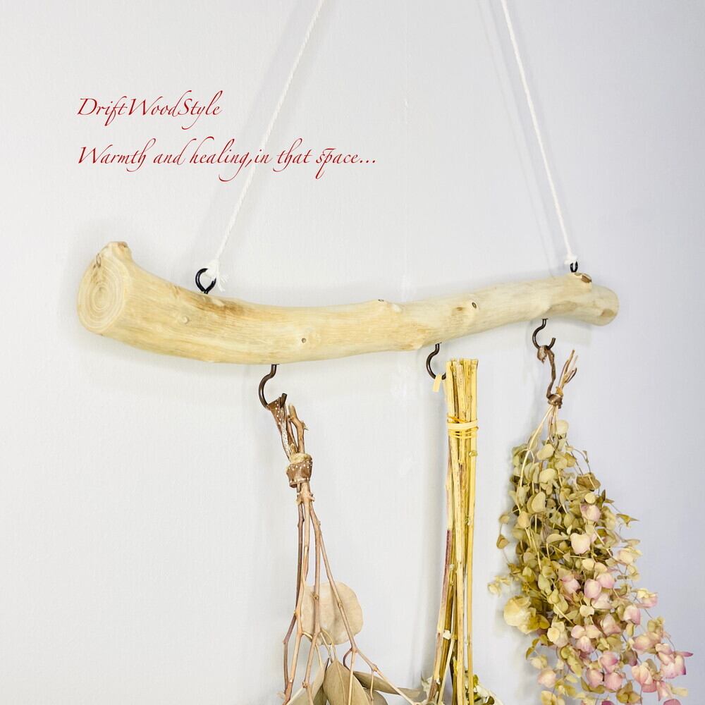 壁に流木のハンガーフックを飾るだけで,温かみが増しお部屋の雰囲気が変わります。