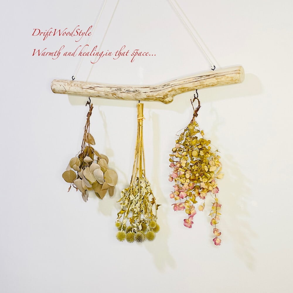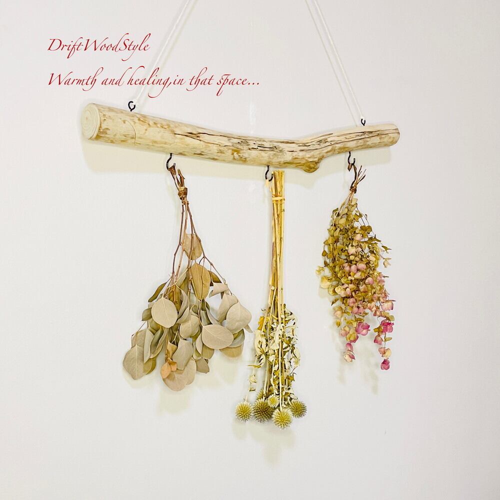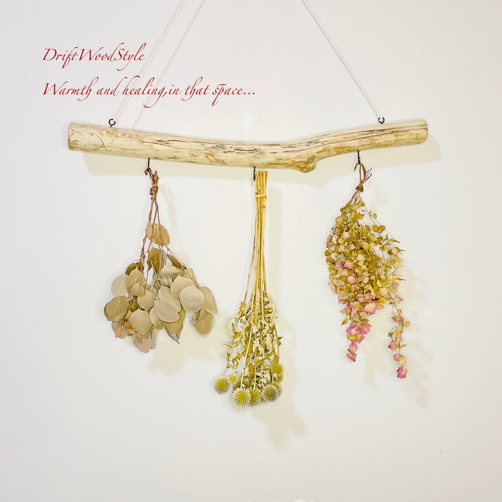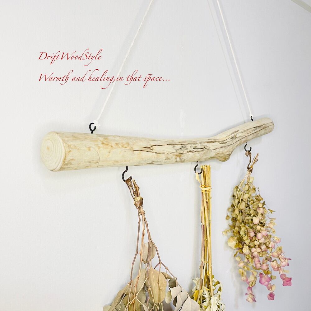壁に流木のハンガーフックを飾るだけで,温かみが増しお部屋の雰囲気が変わります。
