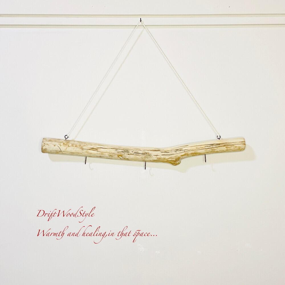 横幅が約60cmのサイズの流木で,フックを3個取り付けています。