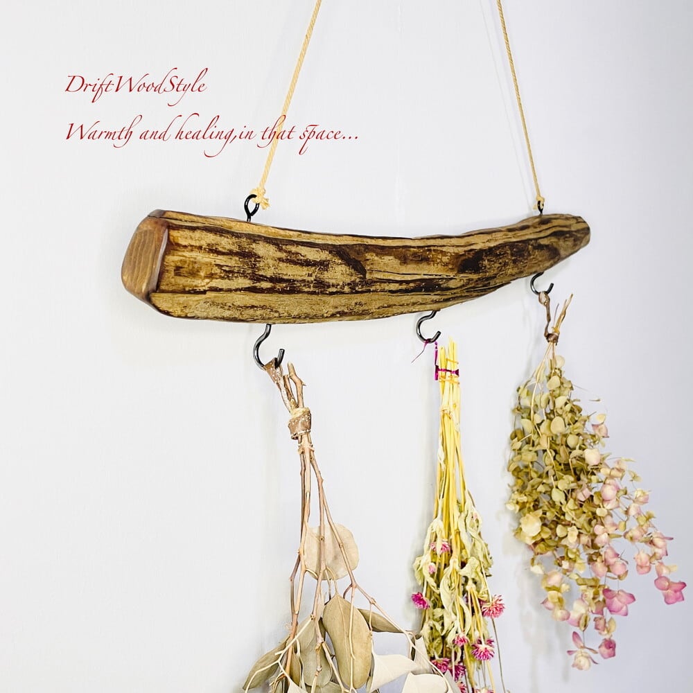 壁に流木のハンガーフックを飾るだけで,温かみが増しお部屋の雰囲気が変わります。