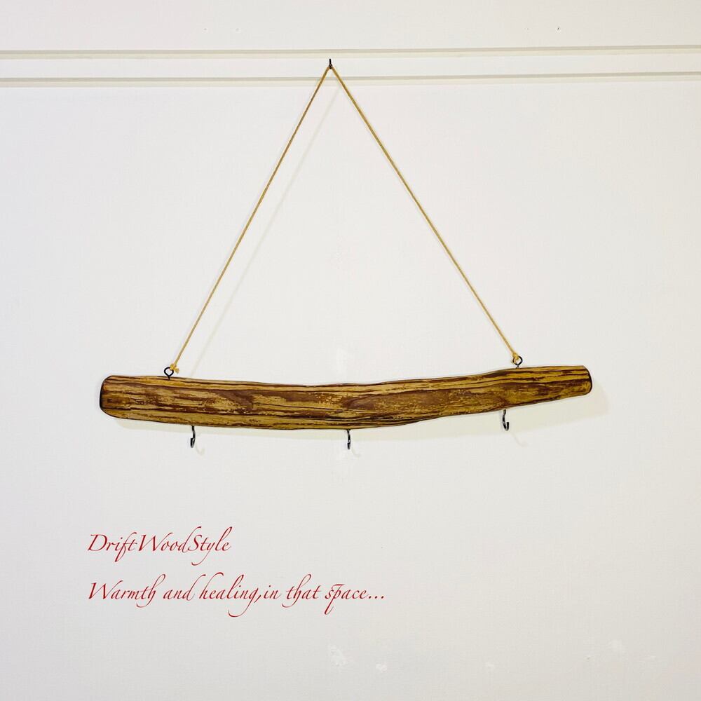 横幅が約60cmのサイズの流木で,フックを3個取り付けています。