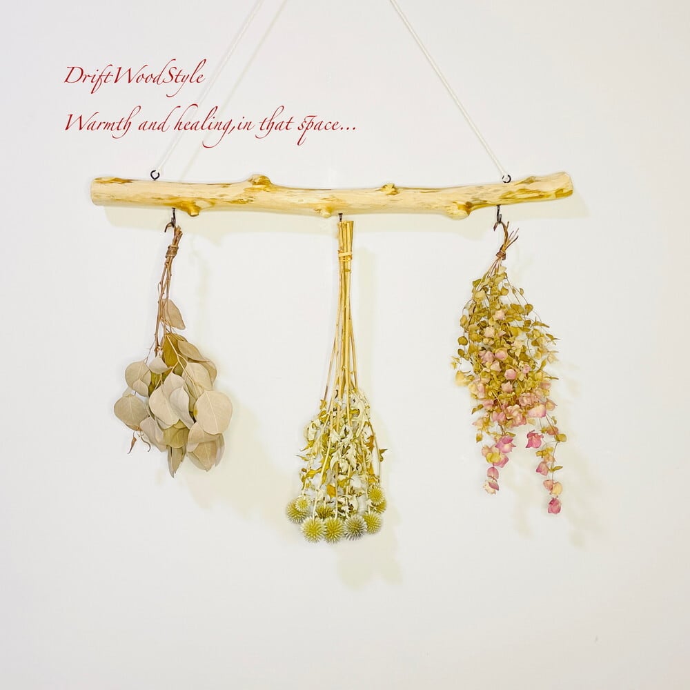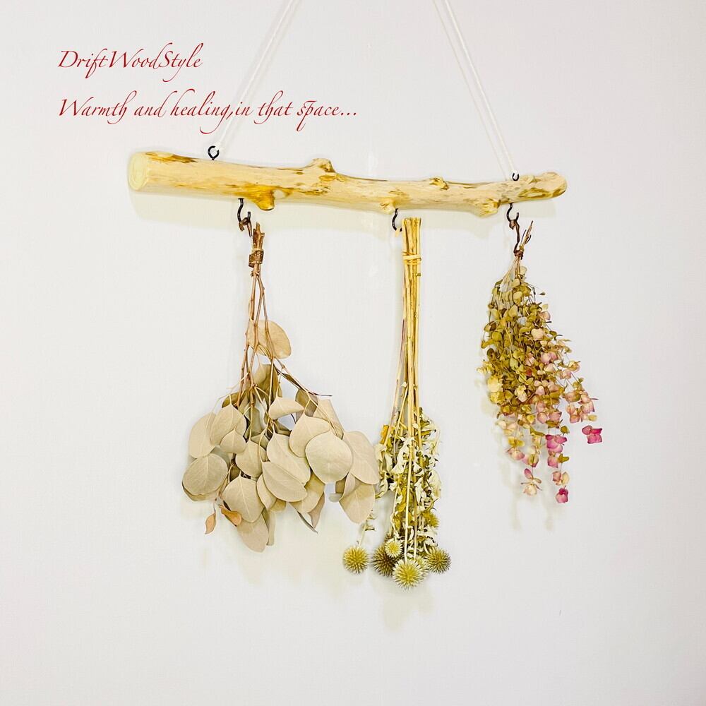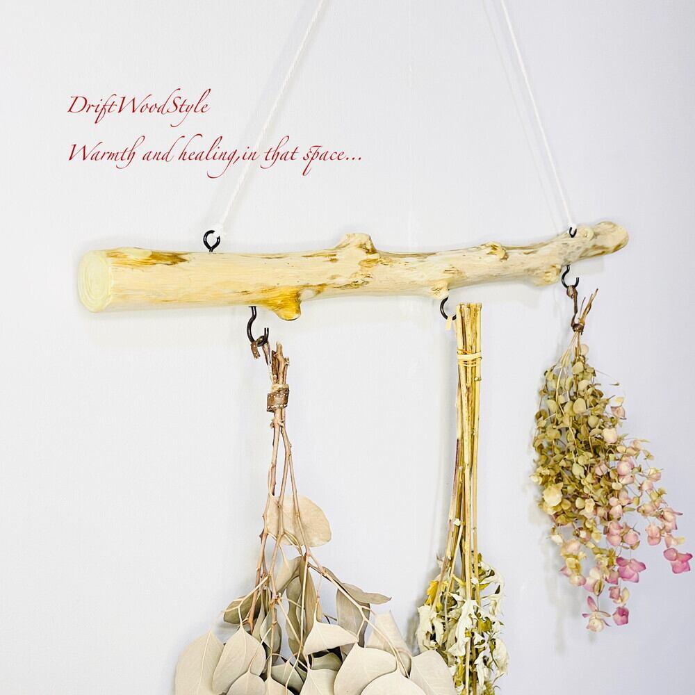 壁に流木のハンガーフックを飾るだけで,温かみが増しお部屋の雰囲気が変わります。