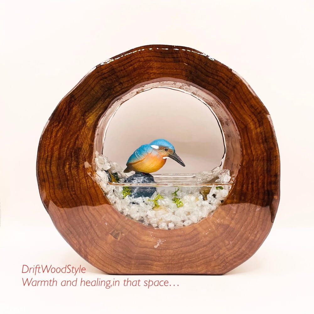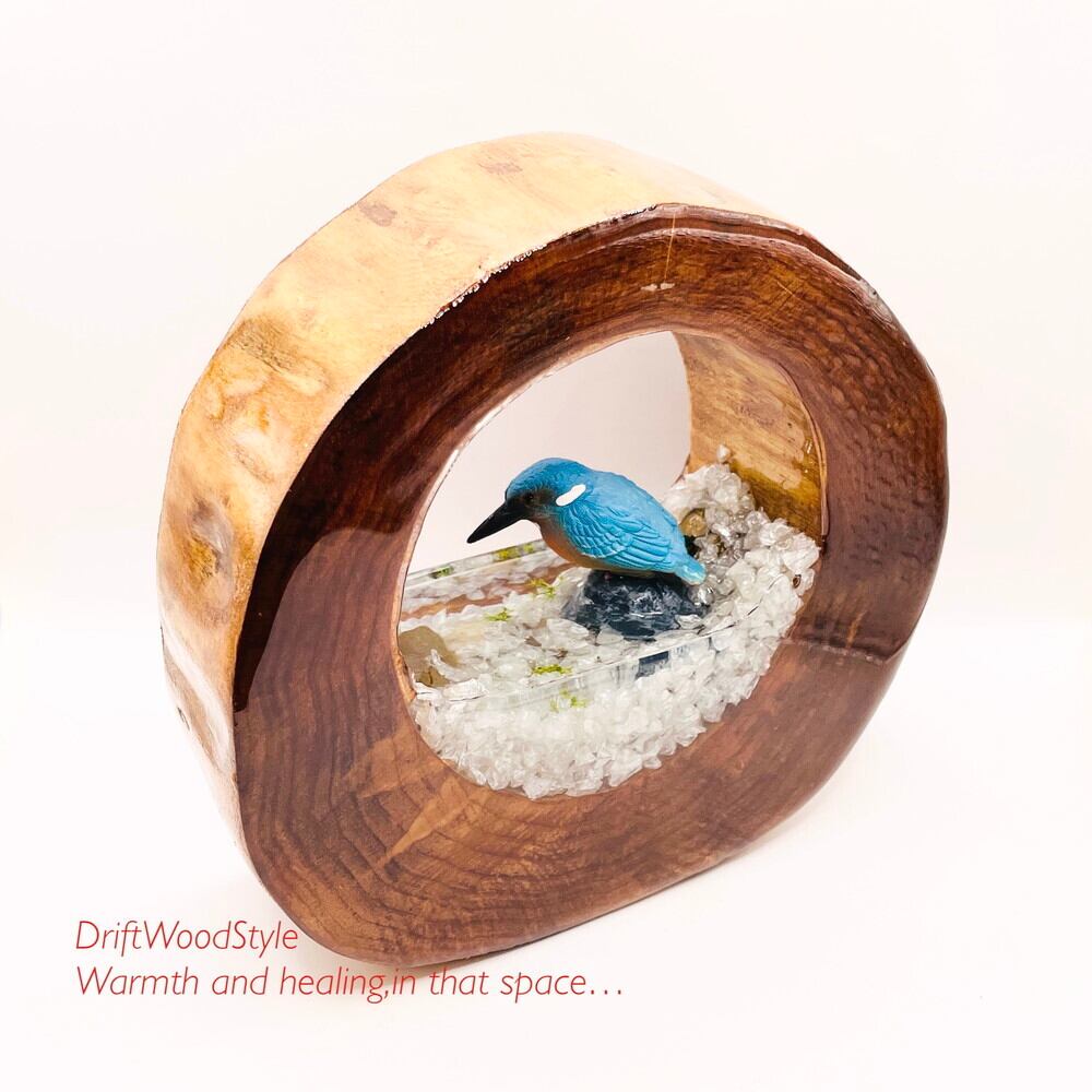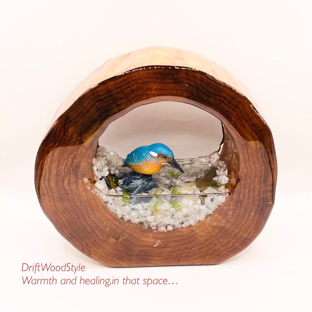 一つ限りの流木アート 水辺のカワセミ ジオラマ 流木 フィギュア 置物 動物 鳥 インテリア レジン 水辺 N47