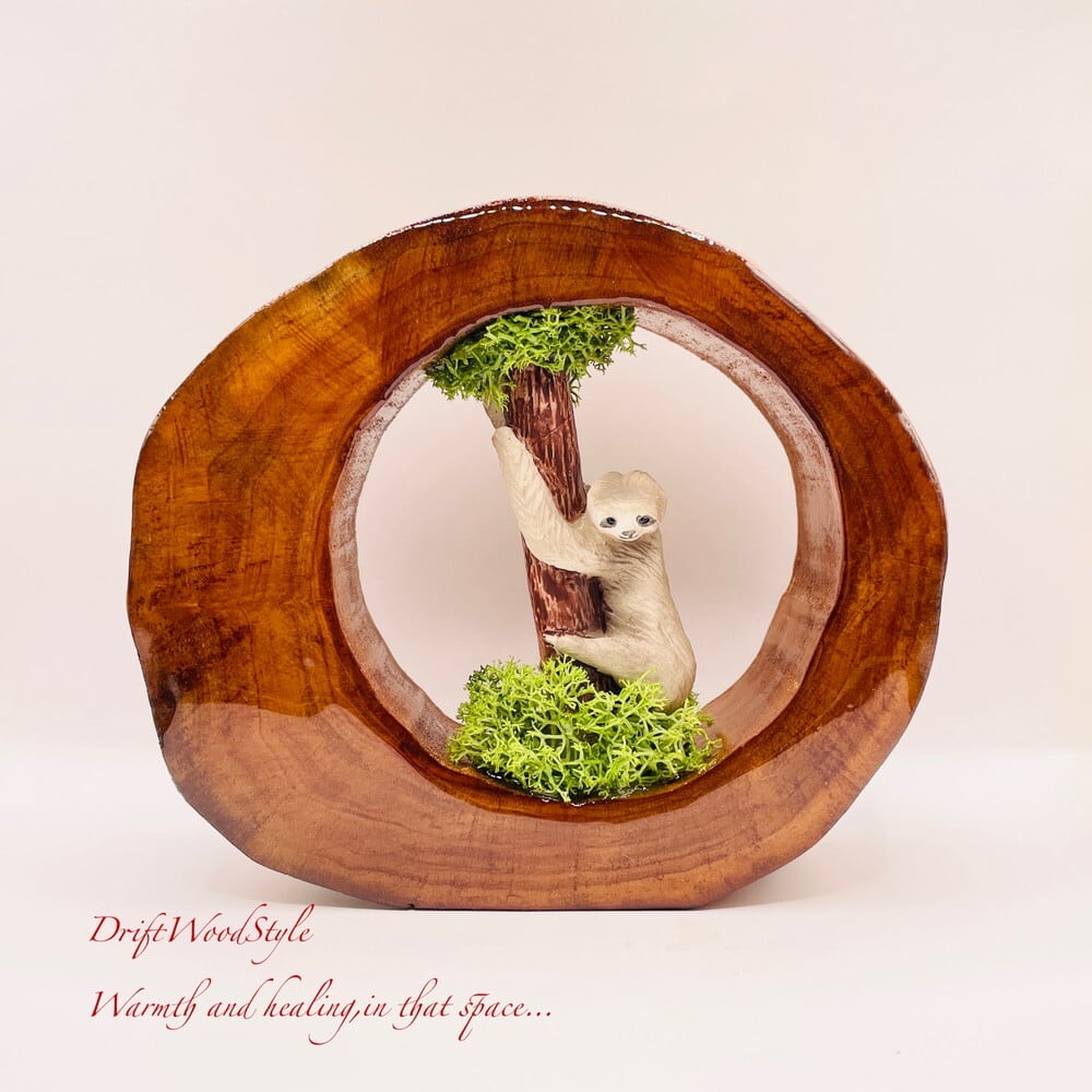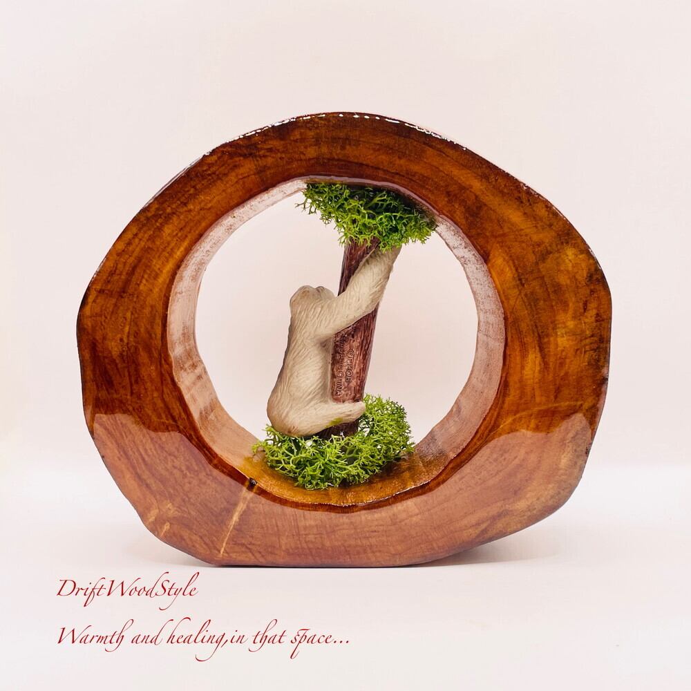 流木と自然界を結び付けて表現するために作成した,レジンアートです。