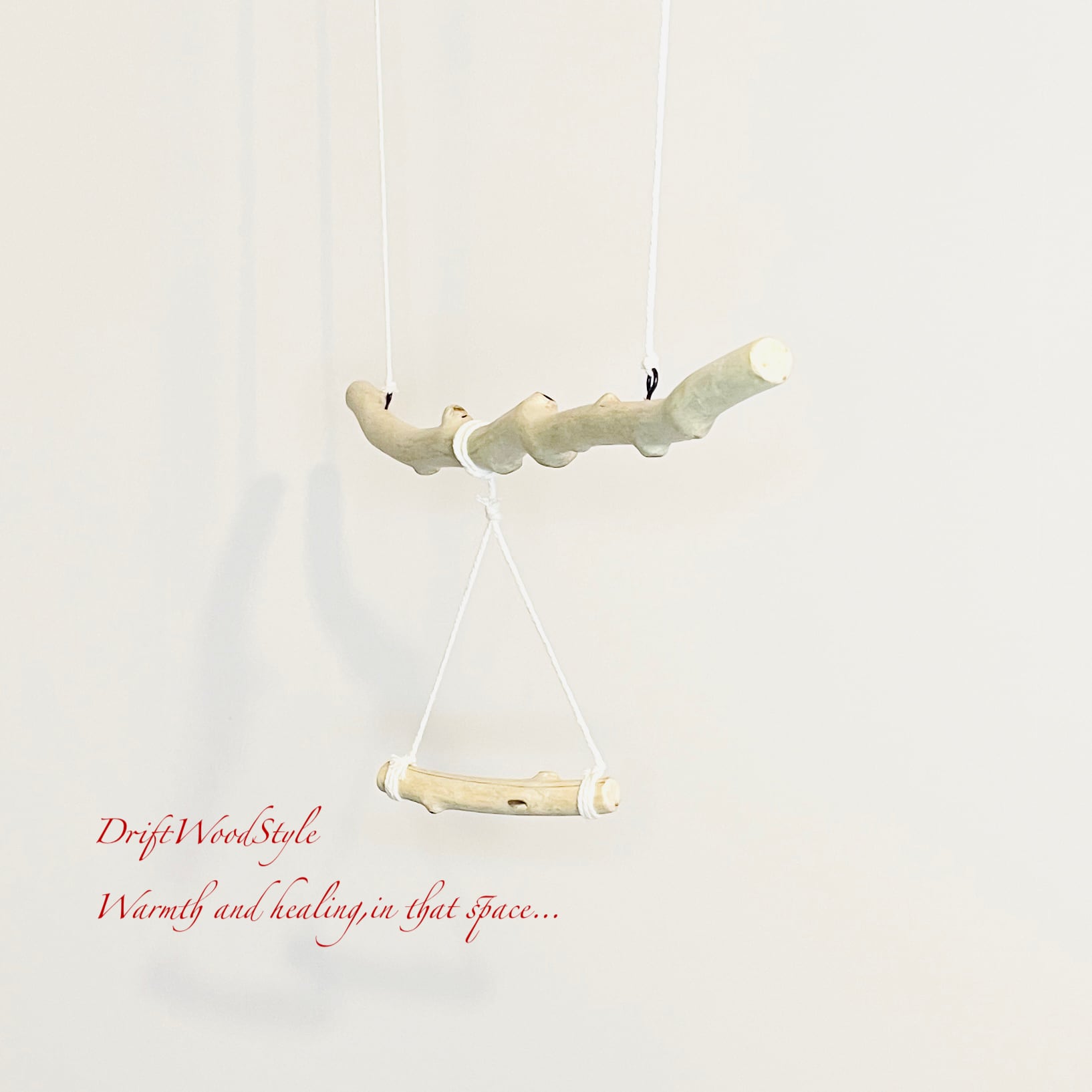 長い流木枝で小鳥が遊べる吊り下げタイプの止まり木です。