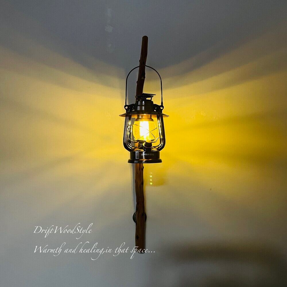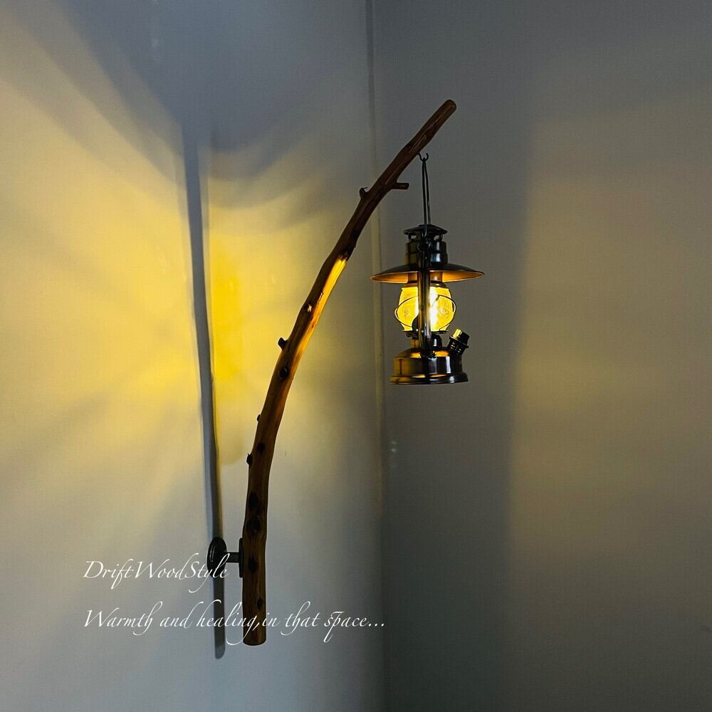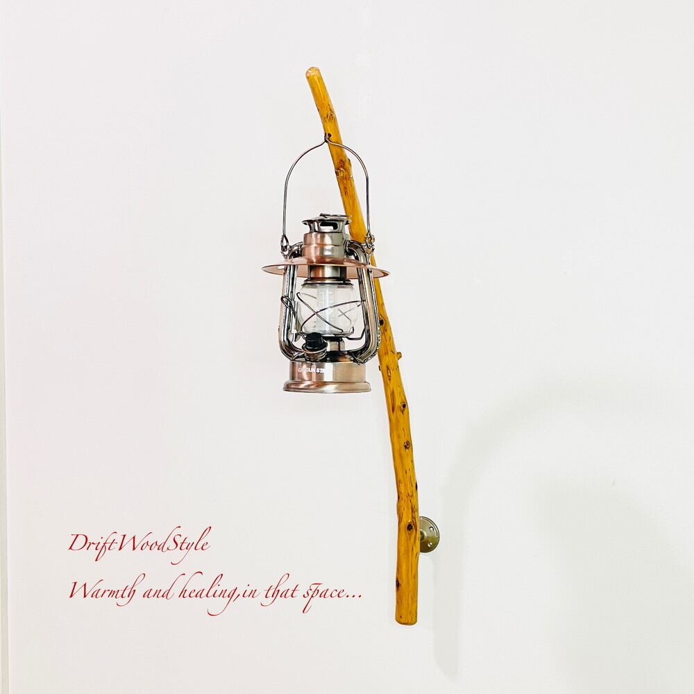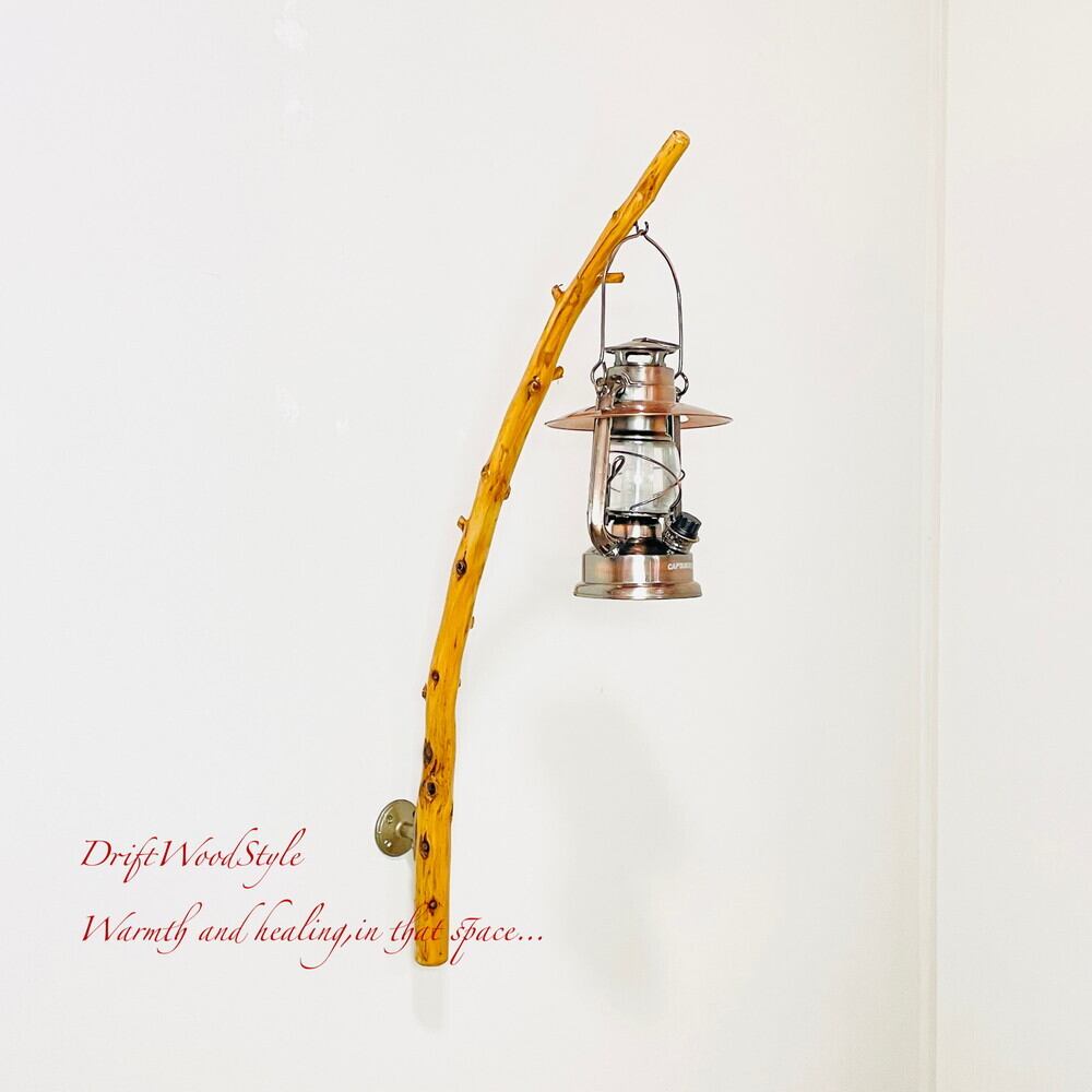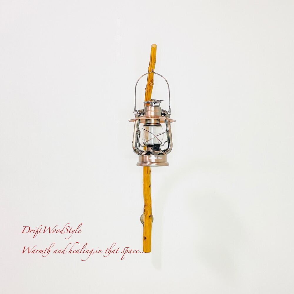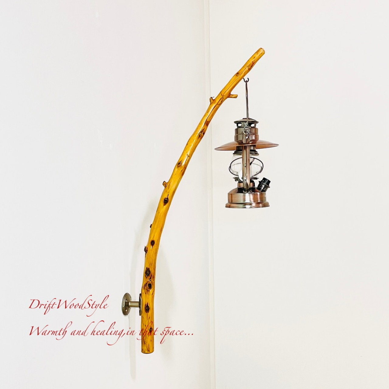 ランプや小物を飾れる天然流木の壁掛け流木スタンドです。