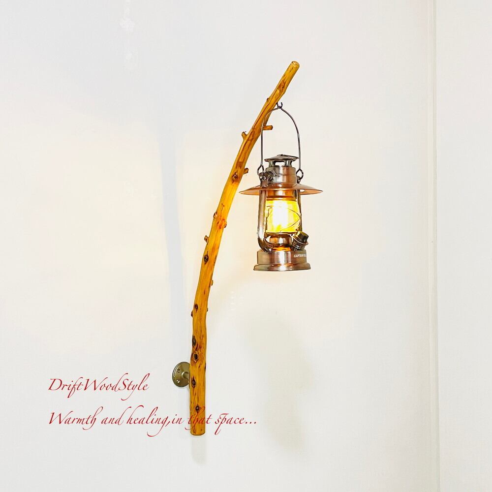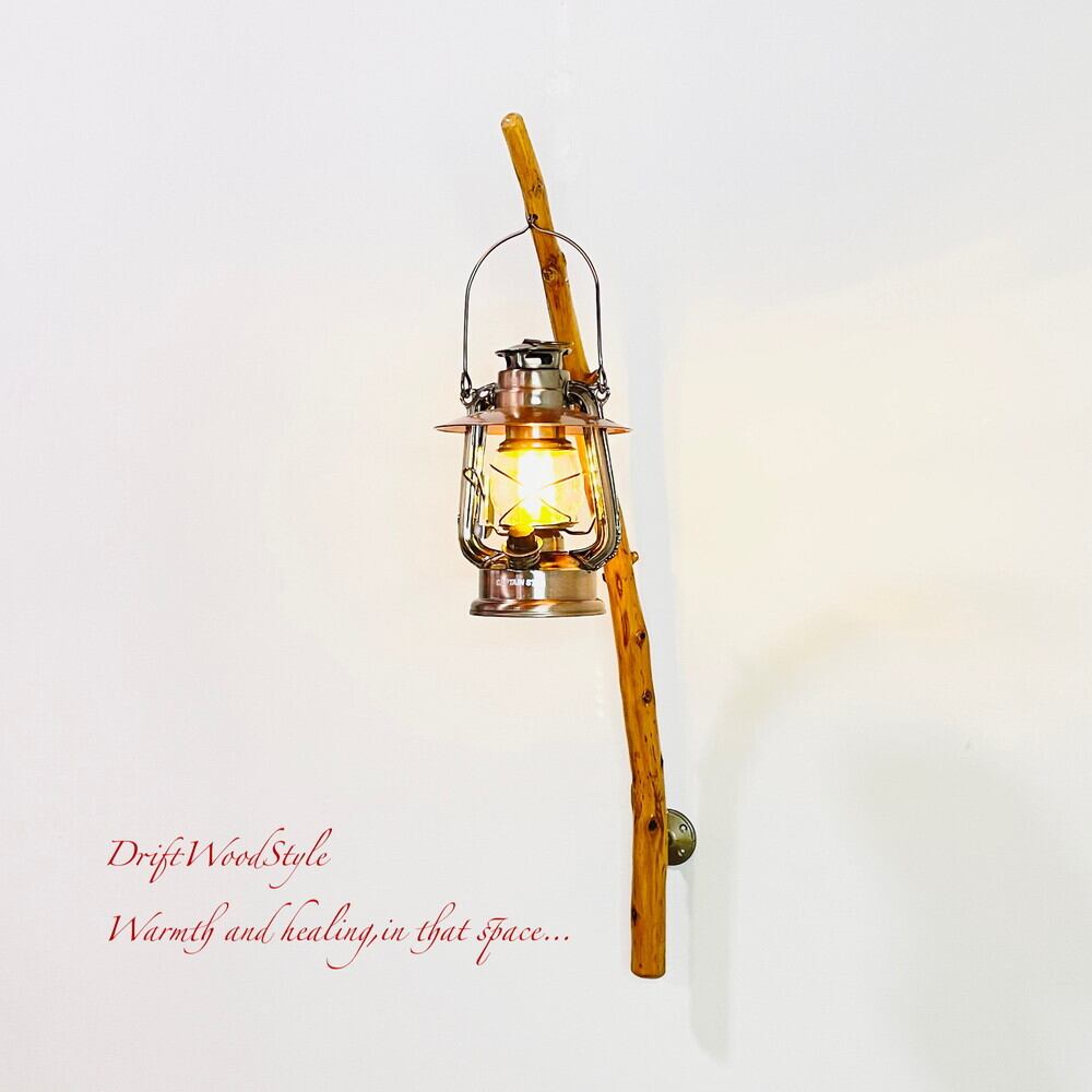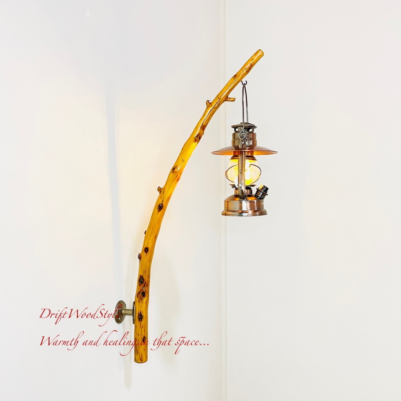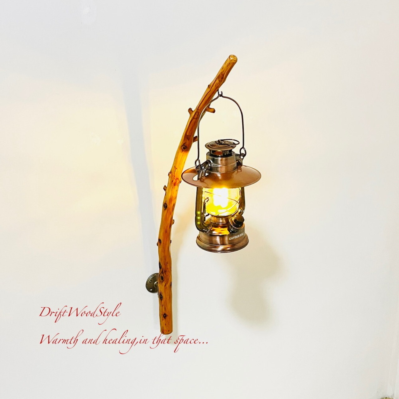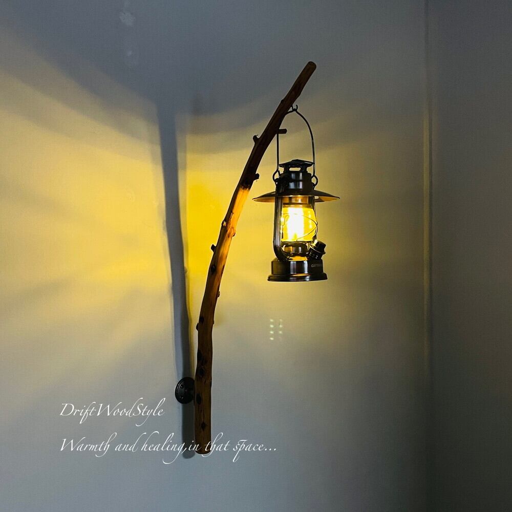 ランプや小物を飾れる天然流木の壁掛け流木スタンドです。