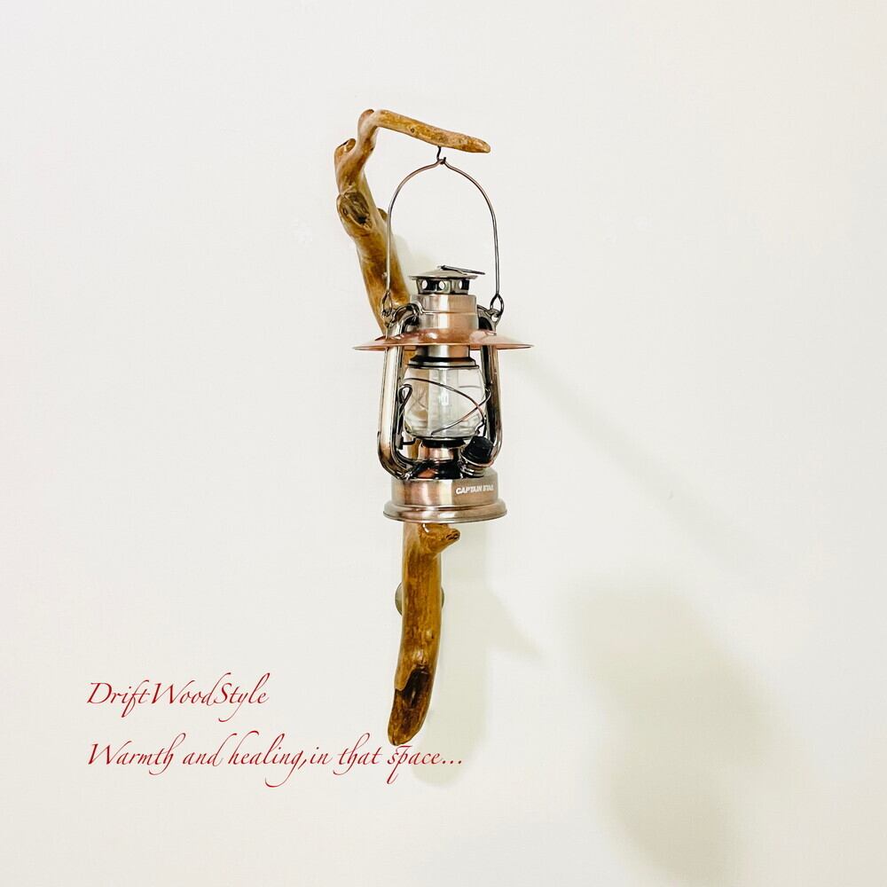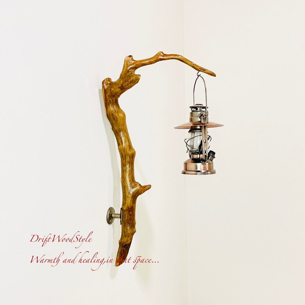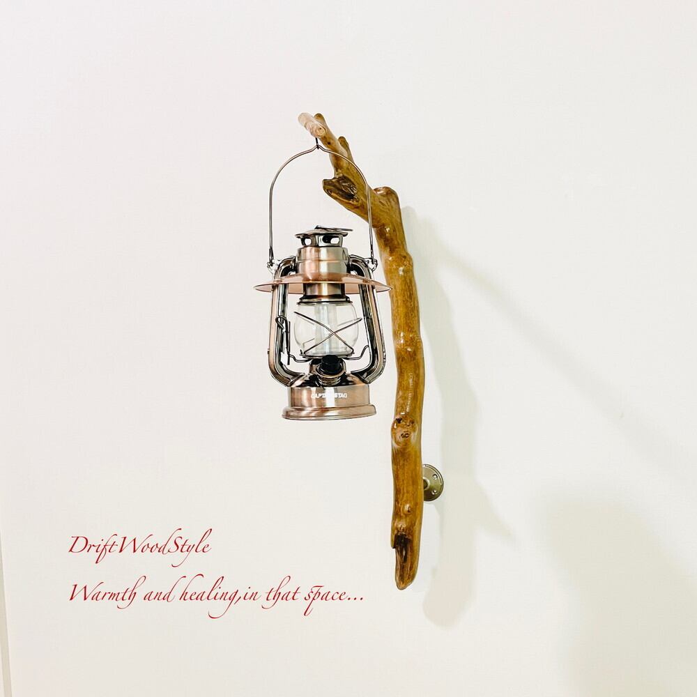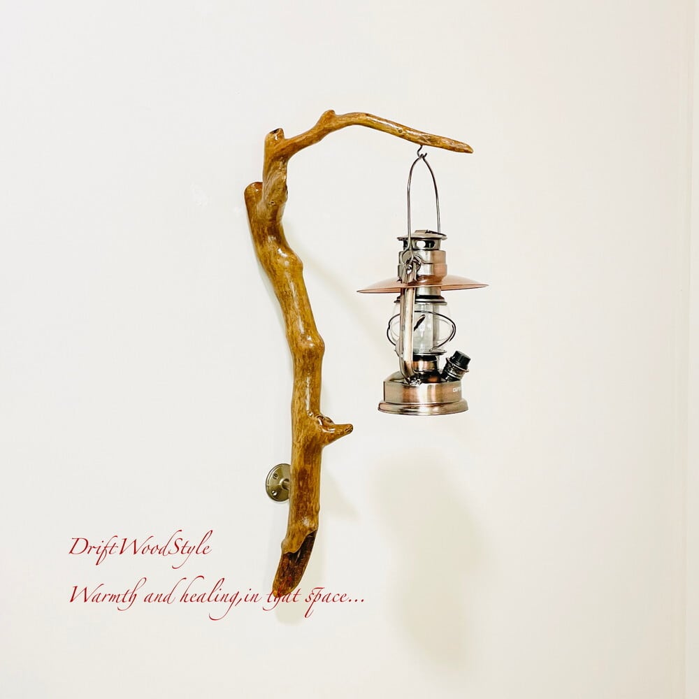 ランプや小物を飾れる天然流木の壁掛け流木スタンドです。