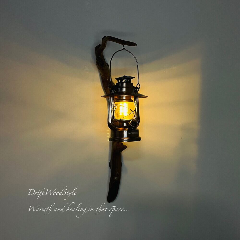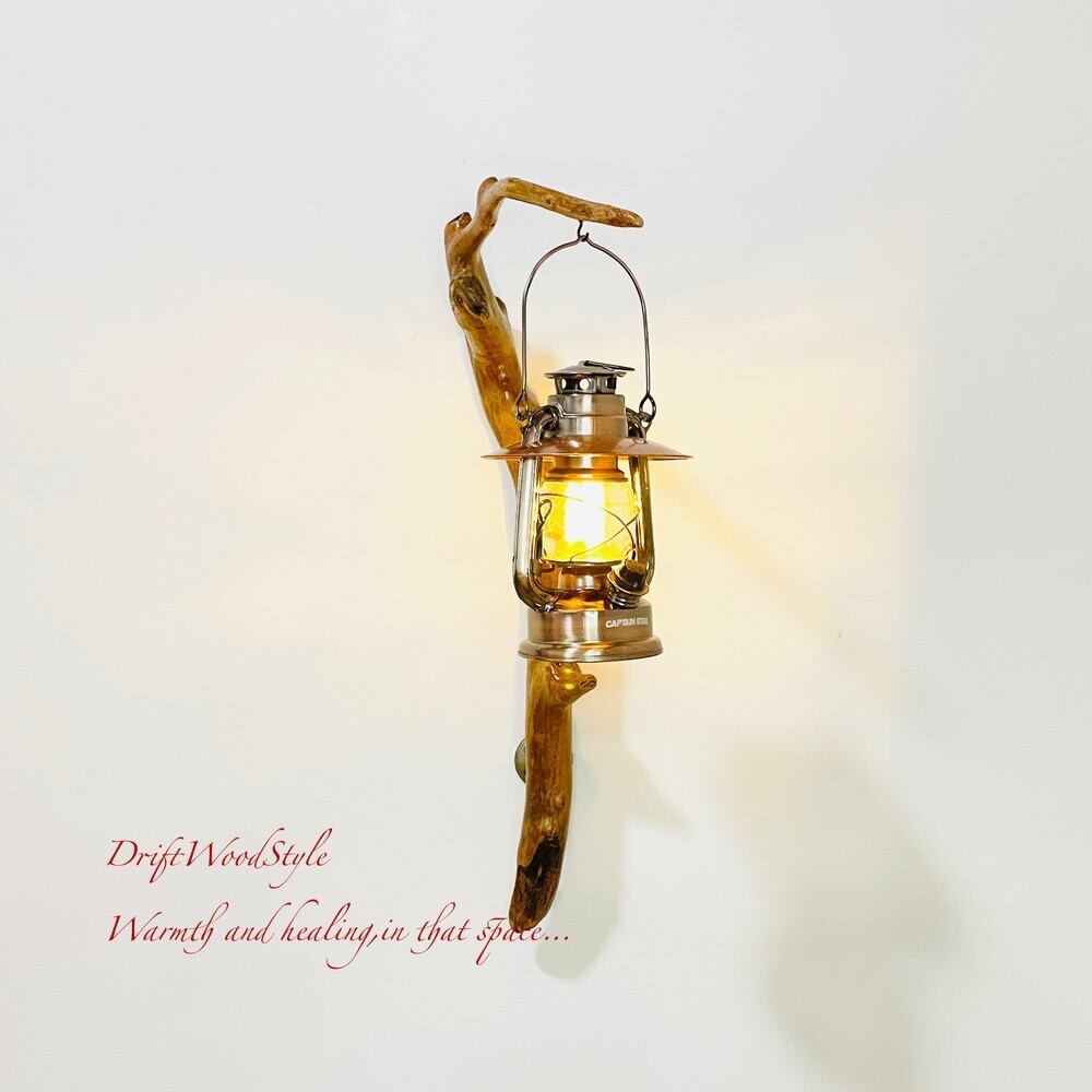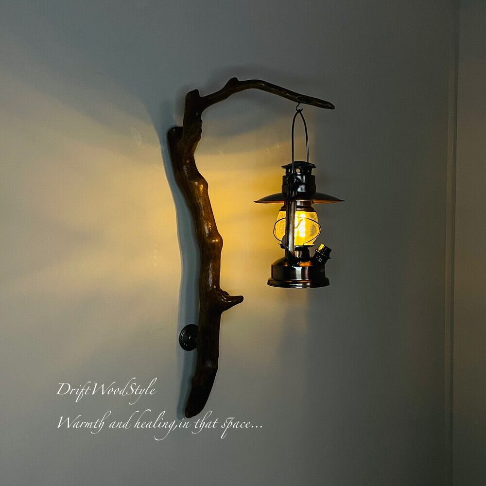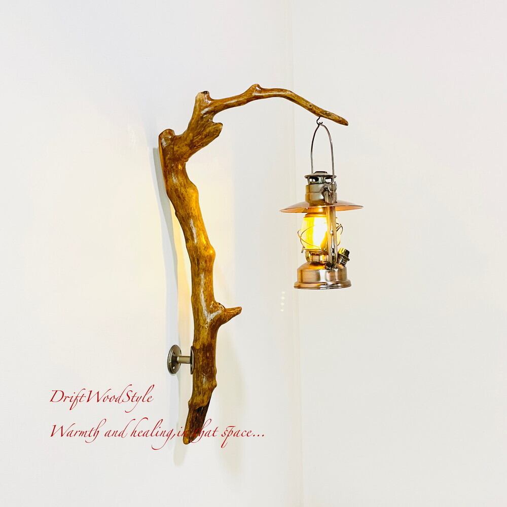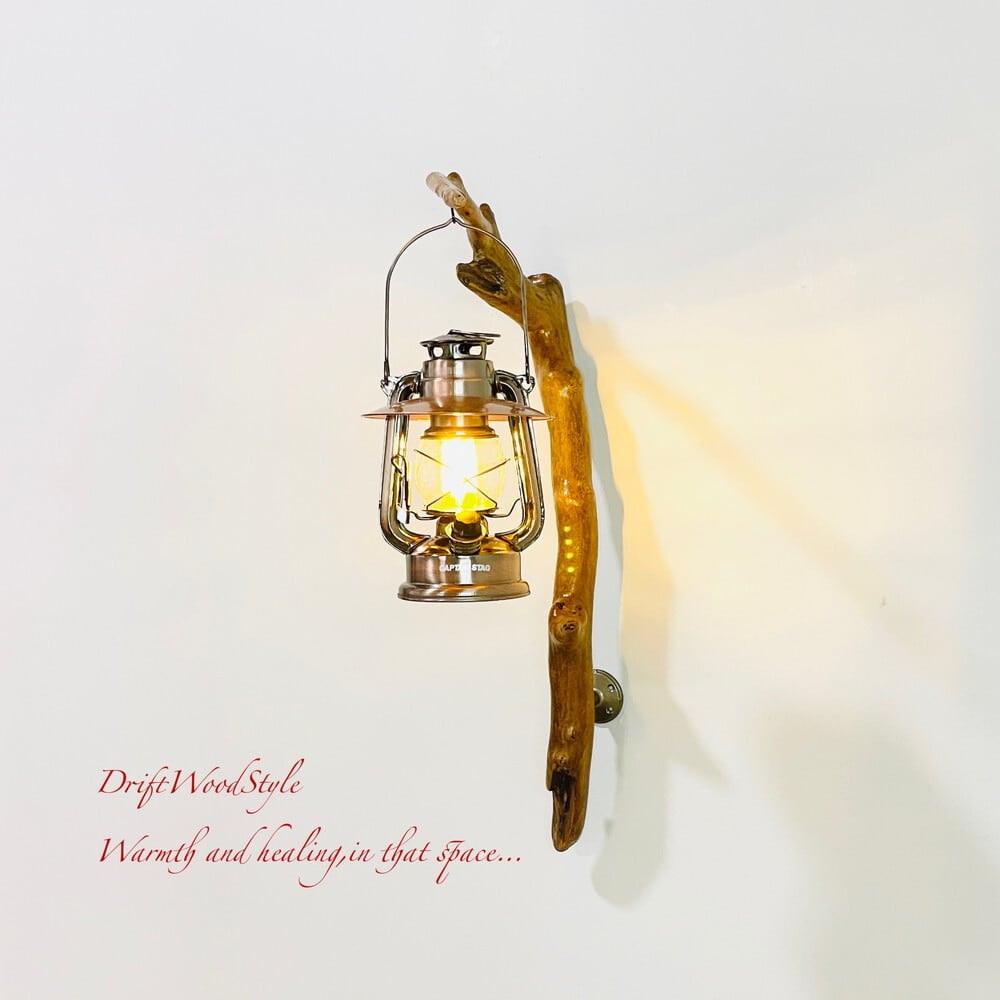 ランプや小物を飾れる天然流木の壁掛け流木スタンドです。