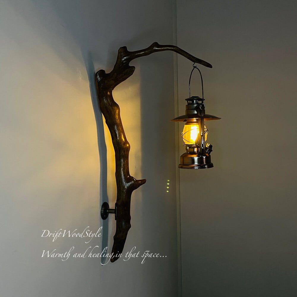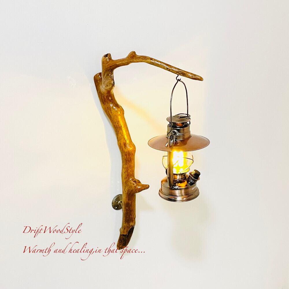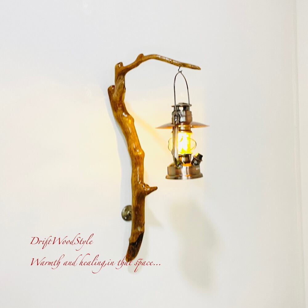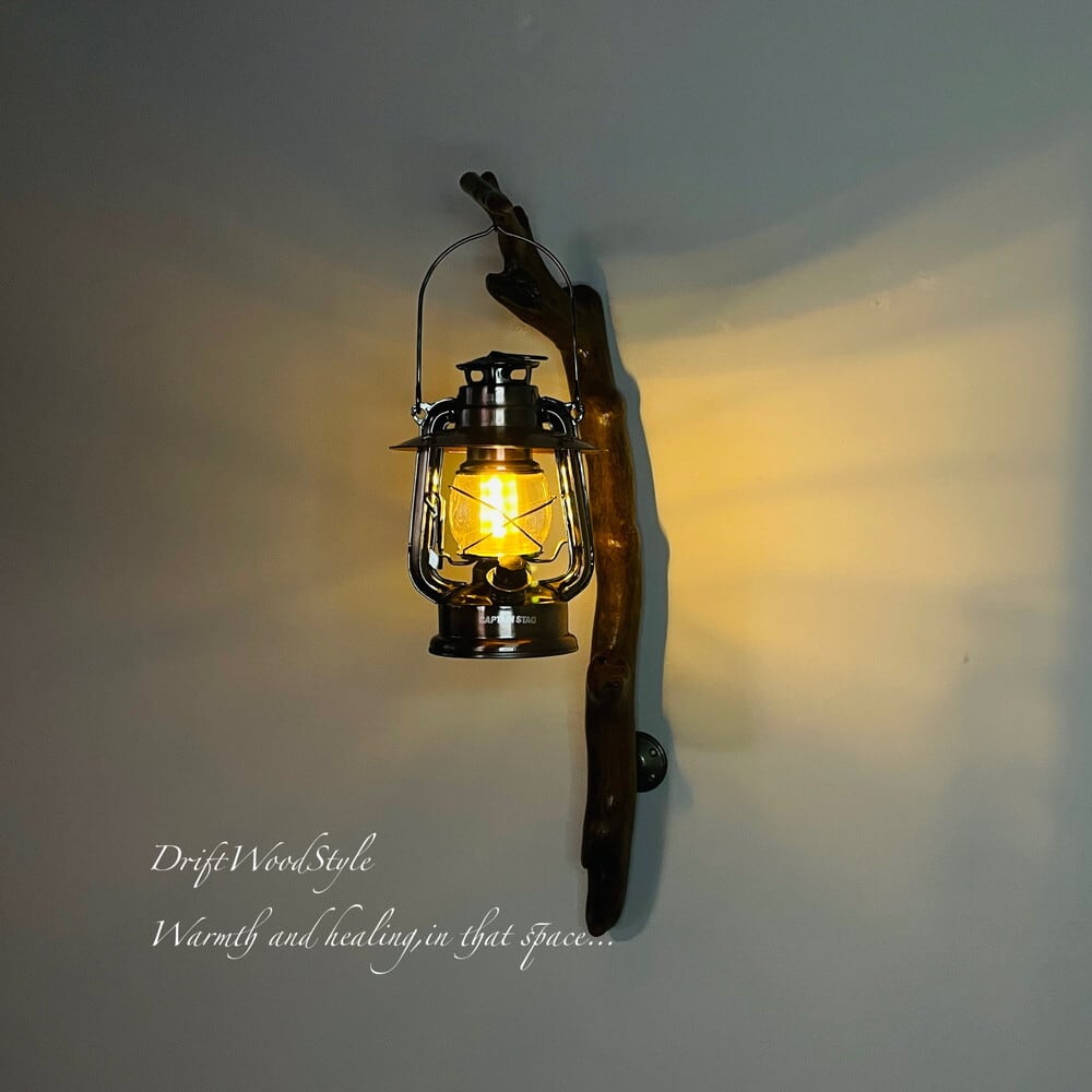 ランプや小物を飾れる天然流木の壁掛け流木スタンドです。