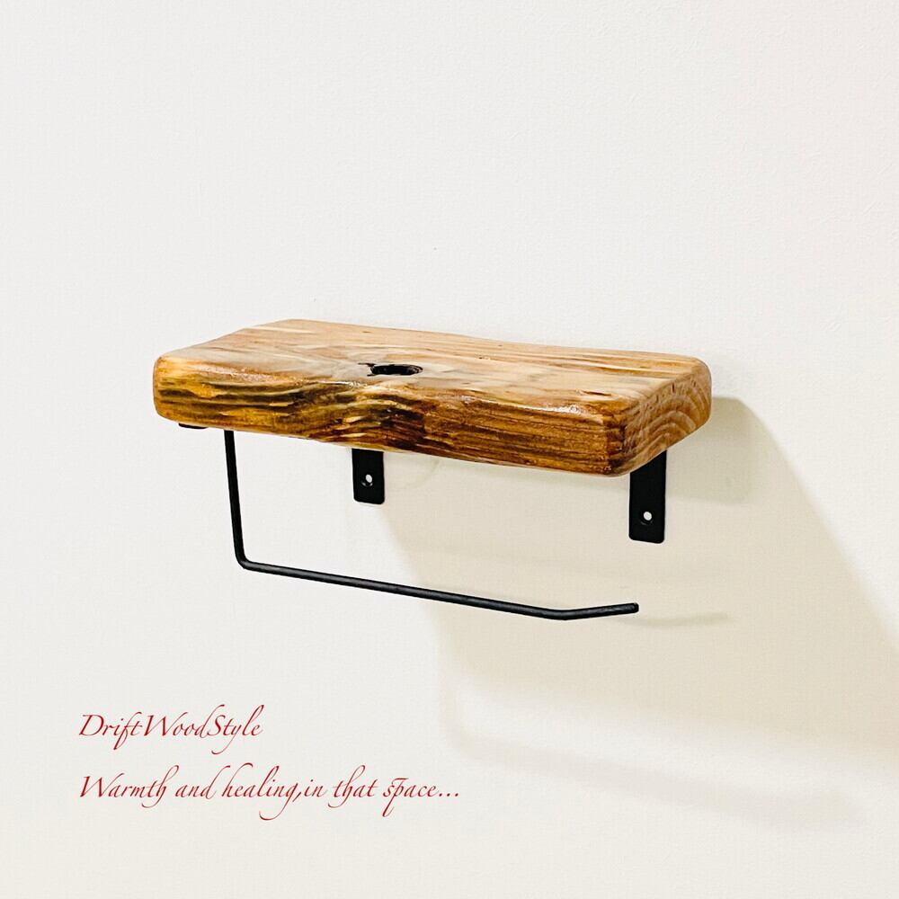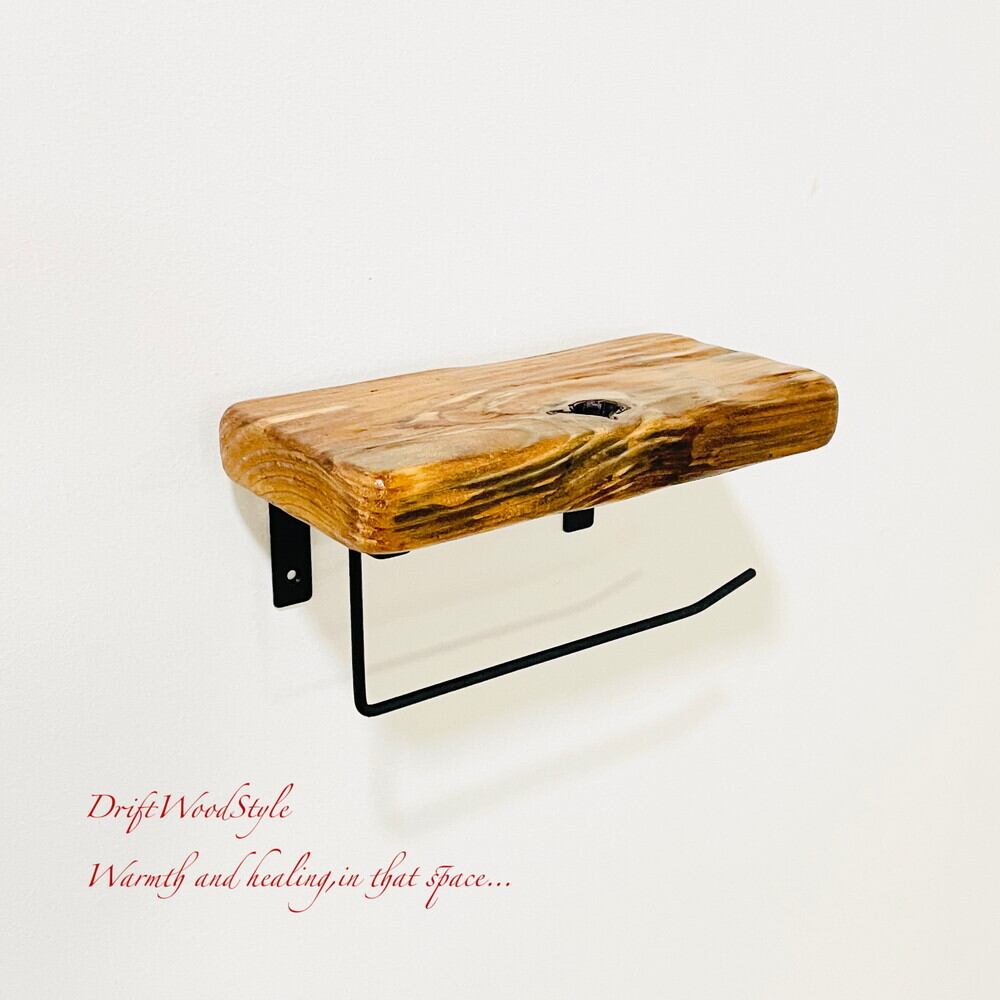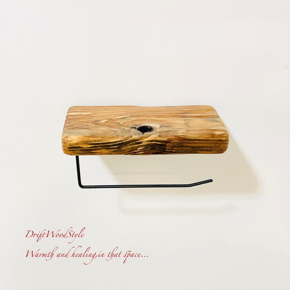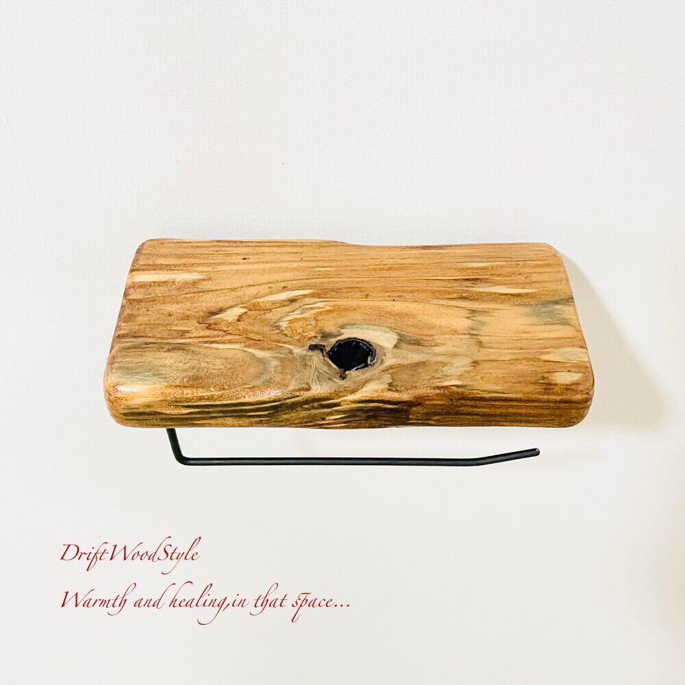 節穴のある流木板のトイレットペーパーホルダーになります。