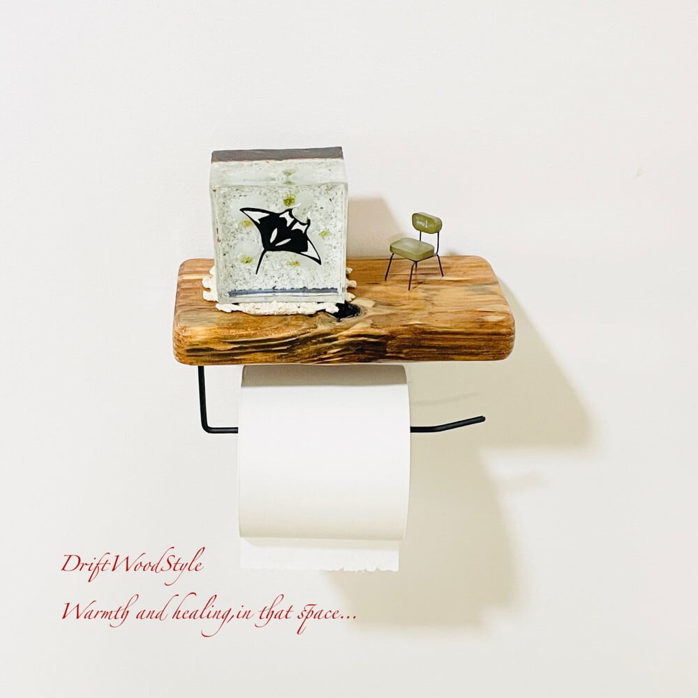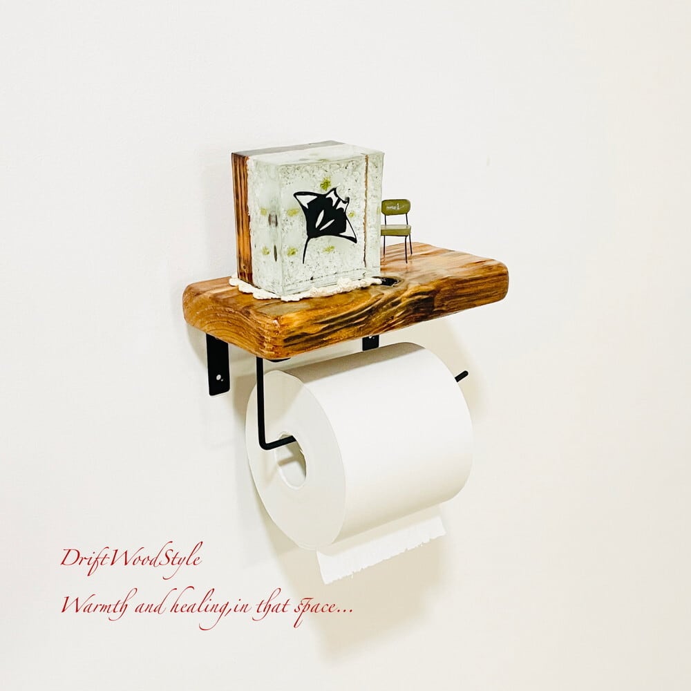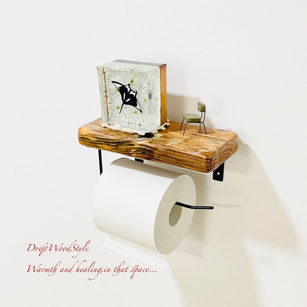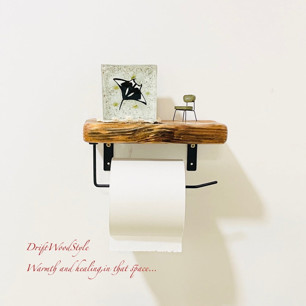 節穴のある流木板のトイレットペーパーホルダーになります。