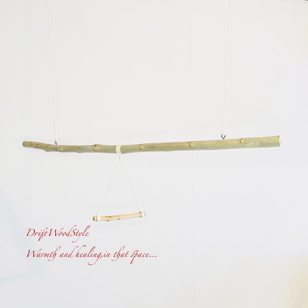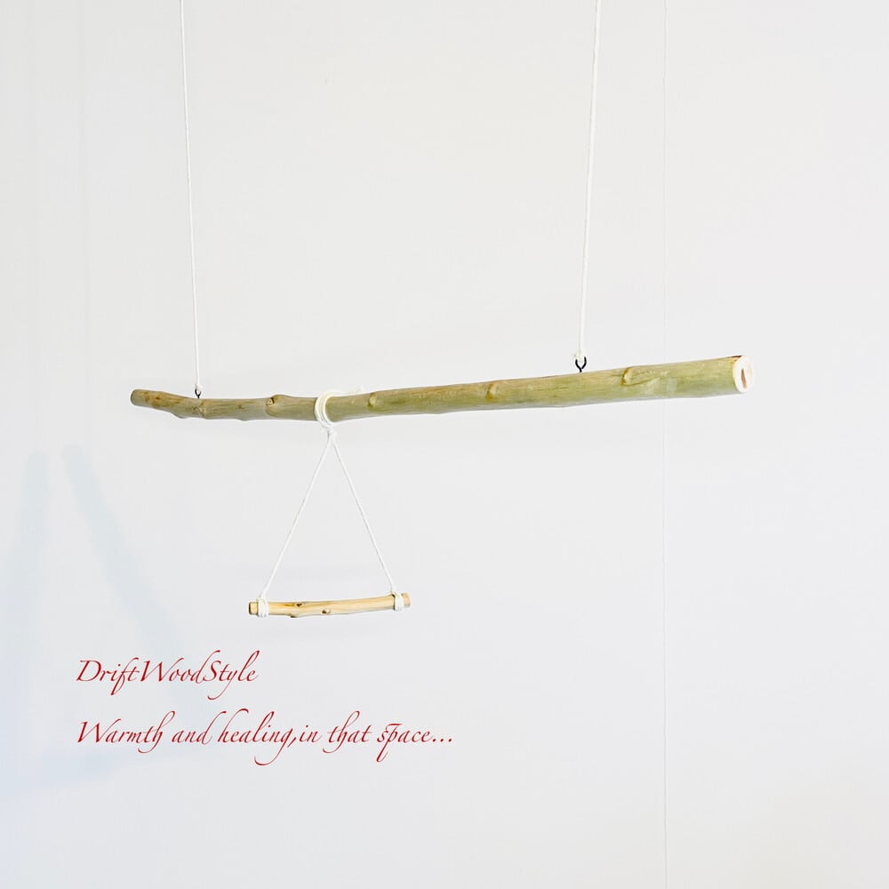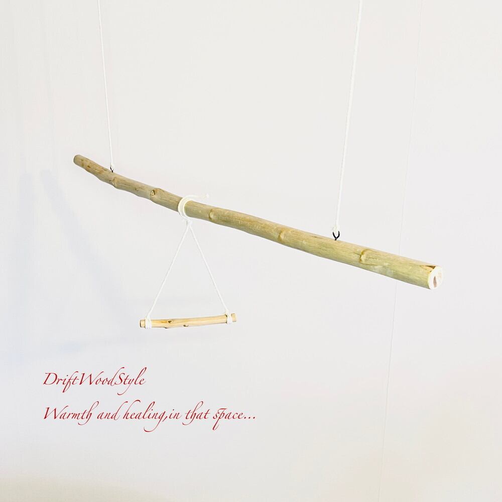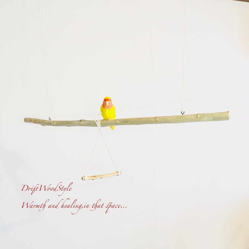 長い流木枝で小鳥が遊べる吊り下げタイプの止まり木です。