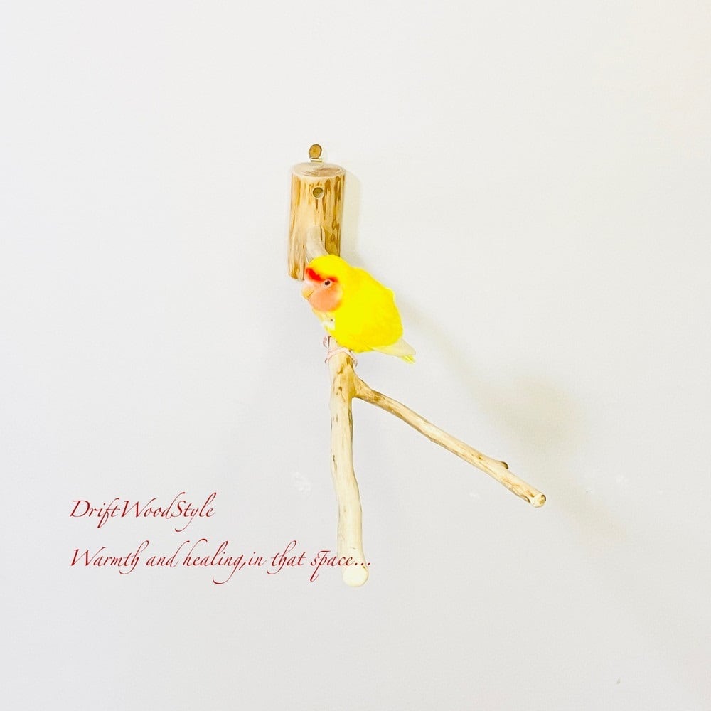 Y字の流木枝を使った小鳥の止まり木 インコの壁掛けパーチ ピン止め+ビス止め両タイプ N14