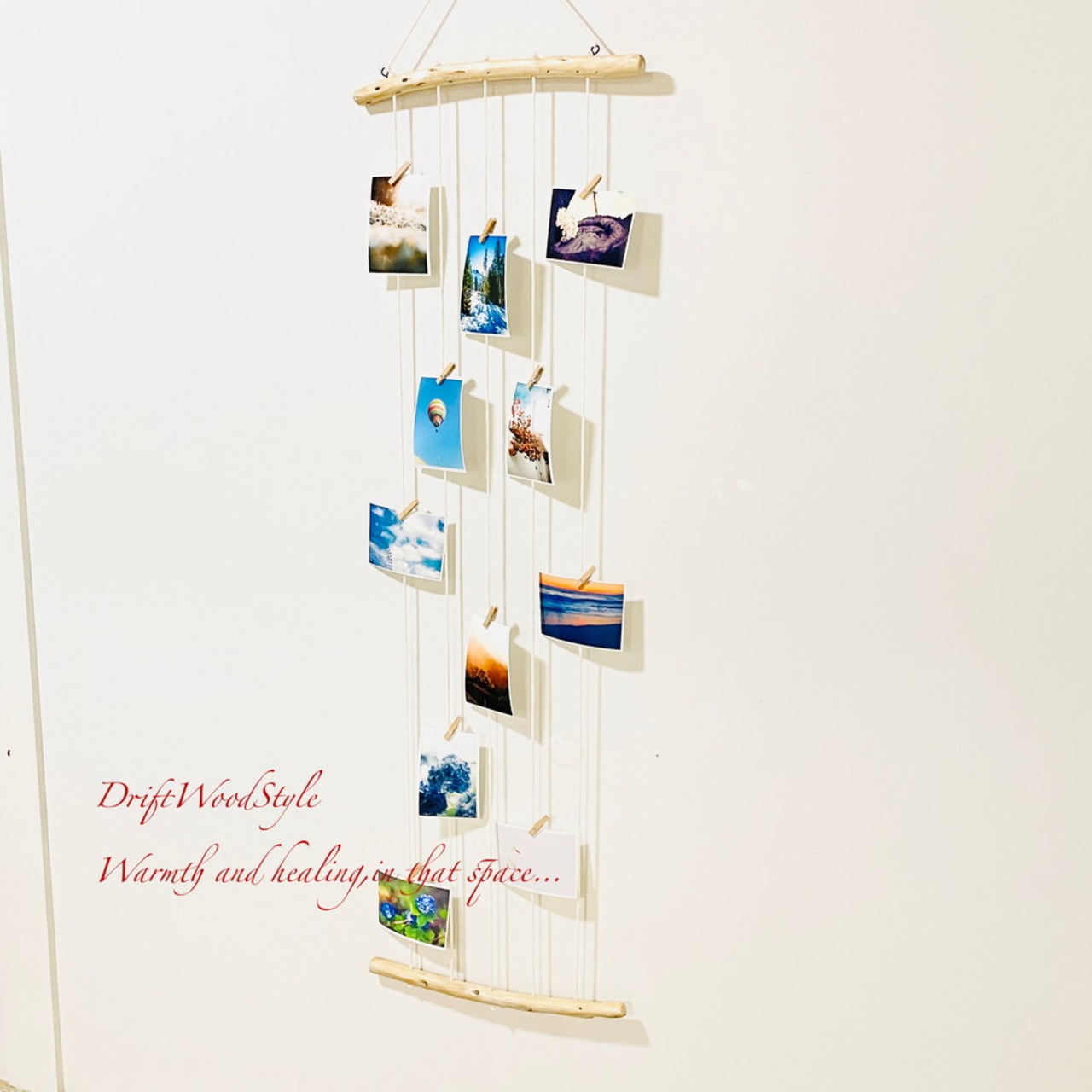 5本のロープに写真を取り付けて,自由にディスプレイできます。