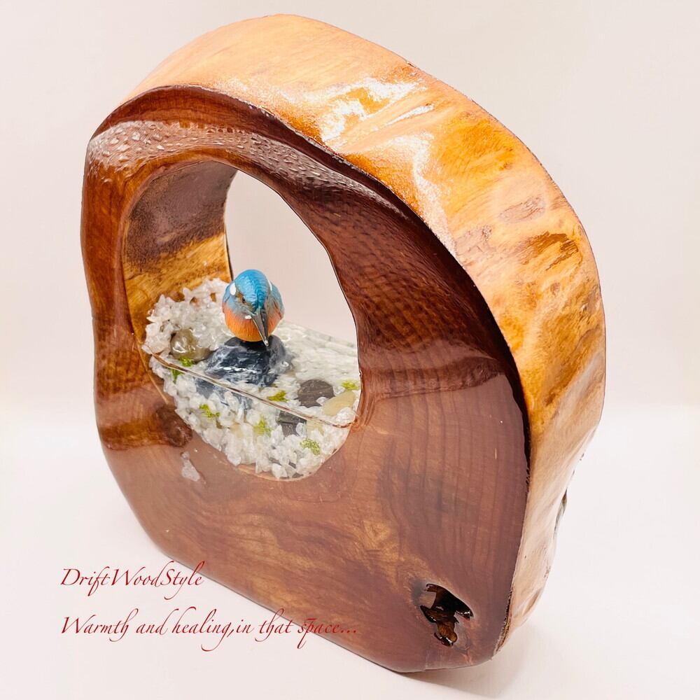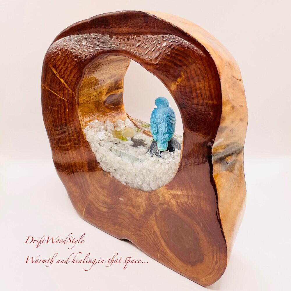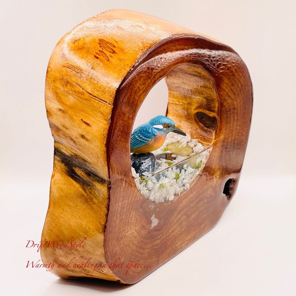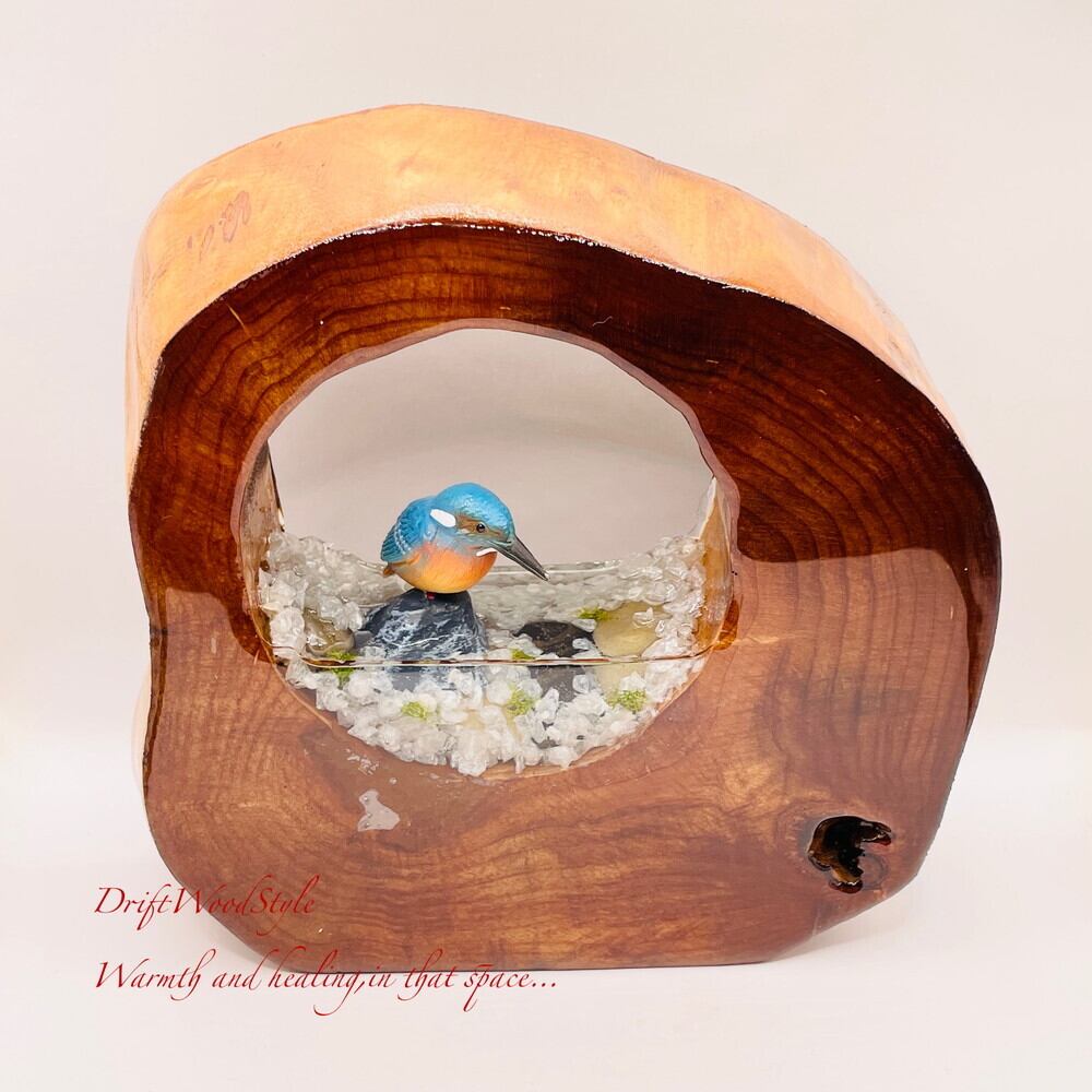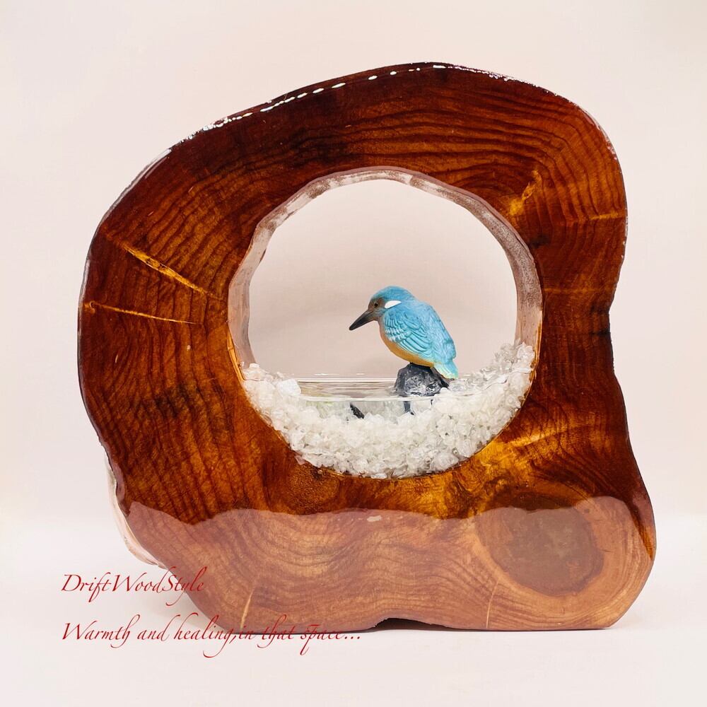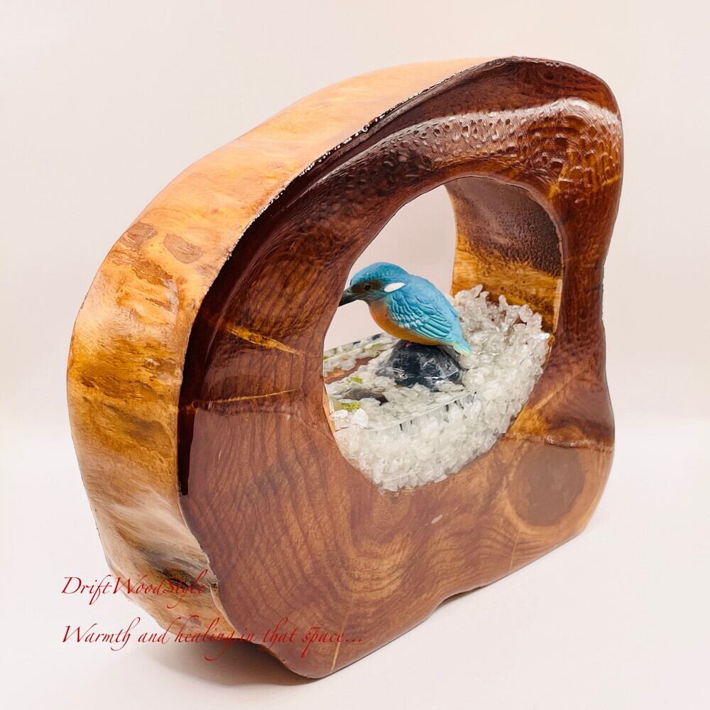 一つ限りの流木アート 水辺のカワセミ ジオラマ 流木 フィギュア 置物 動物 鳥 インテリア レジン 水辺 N46