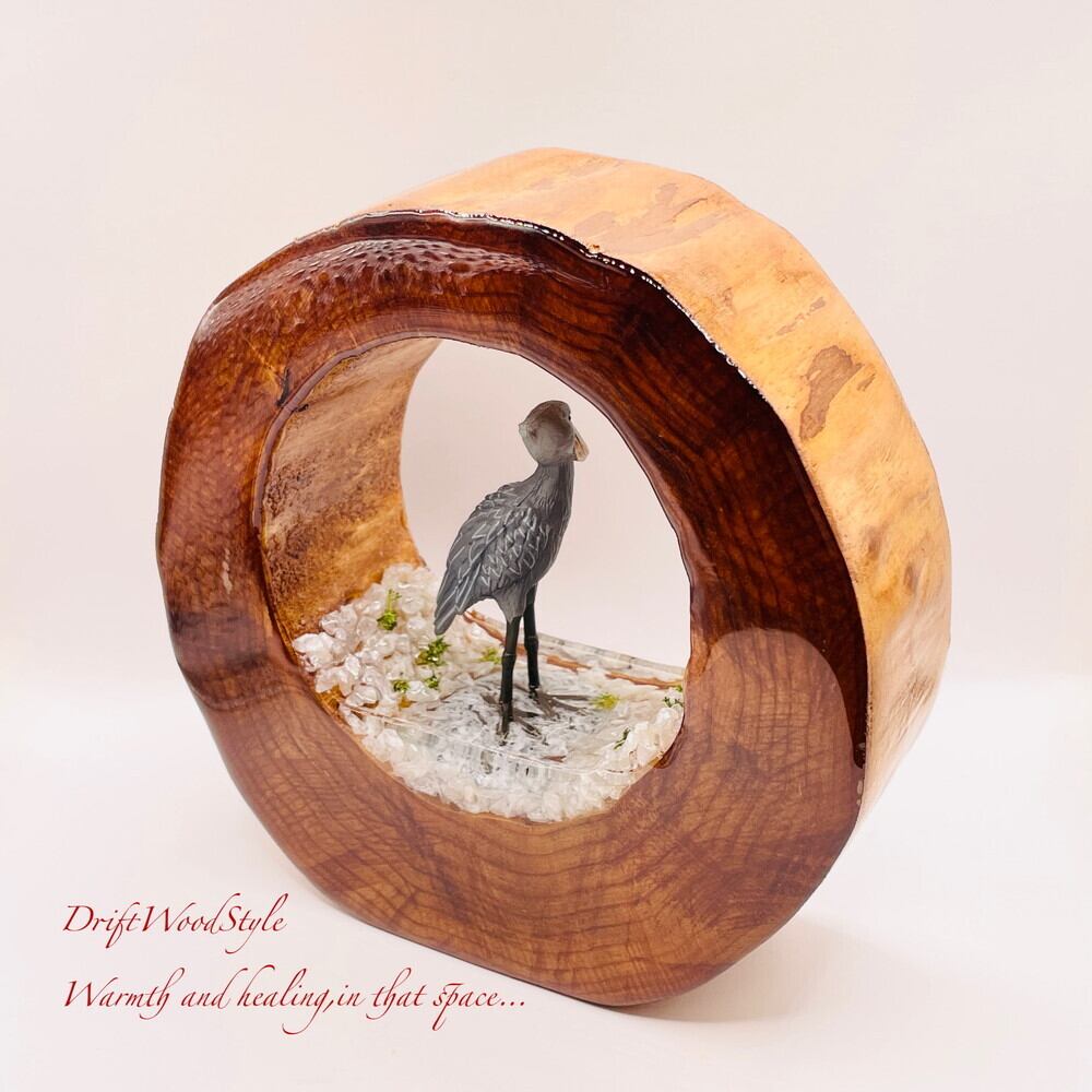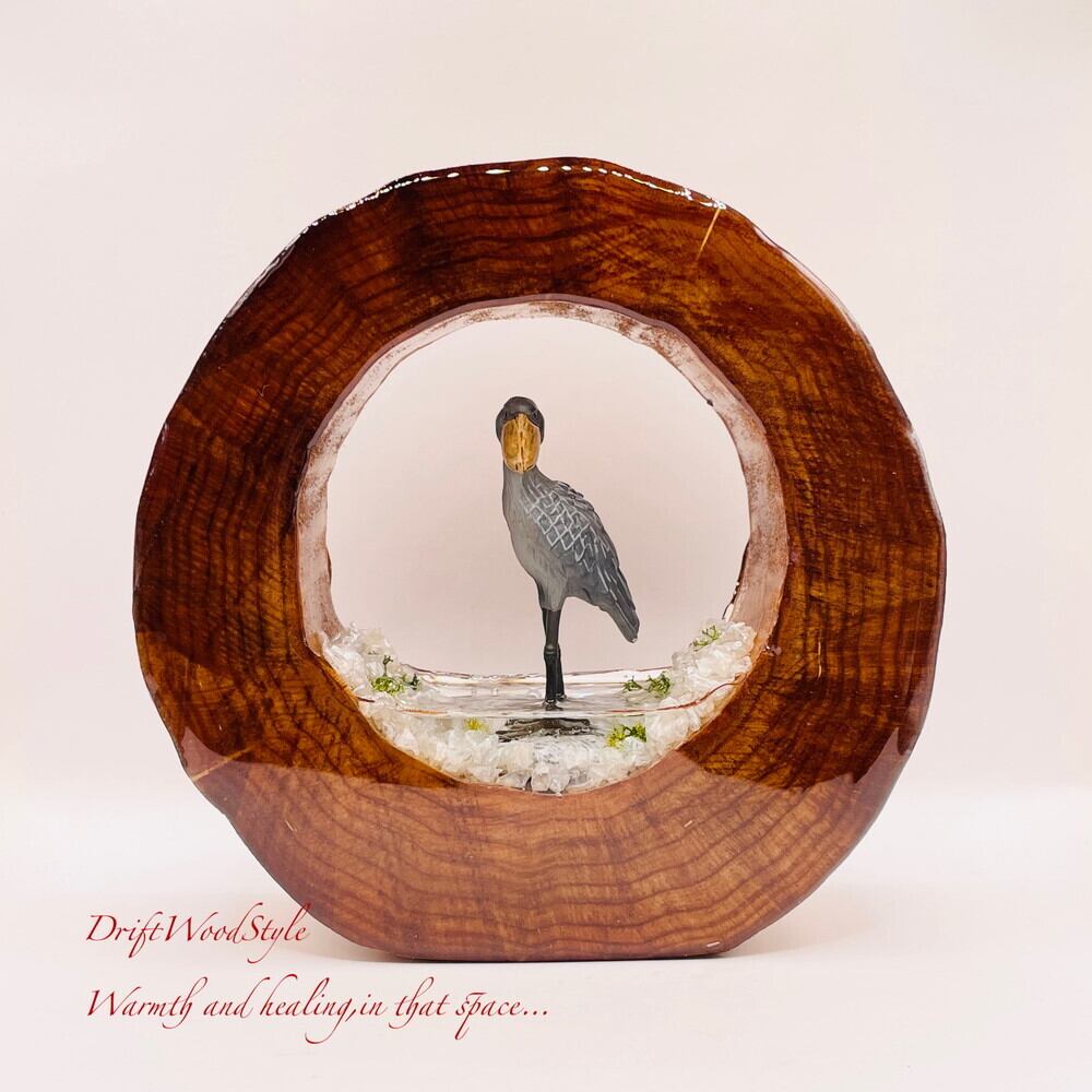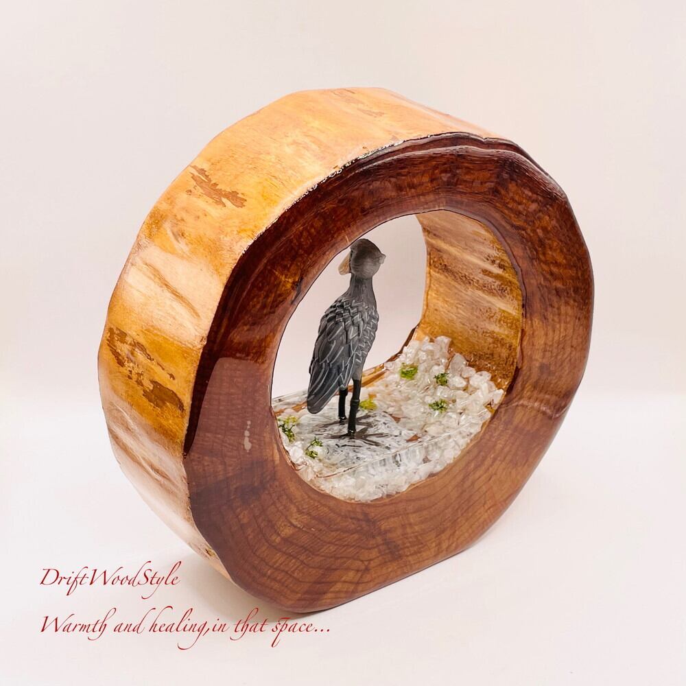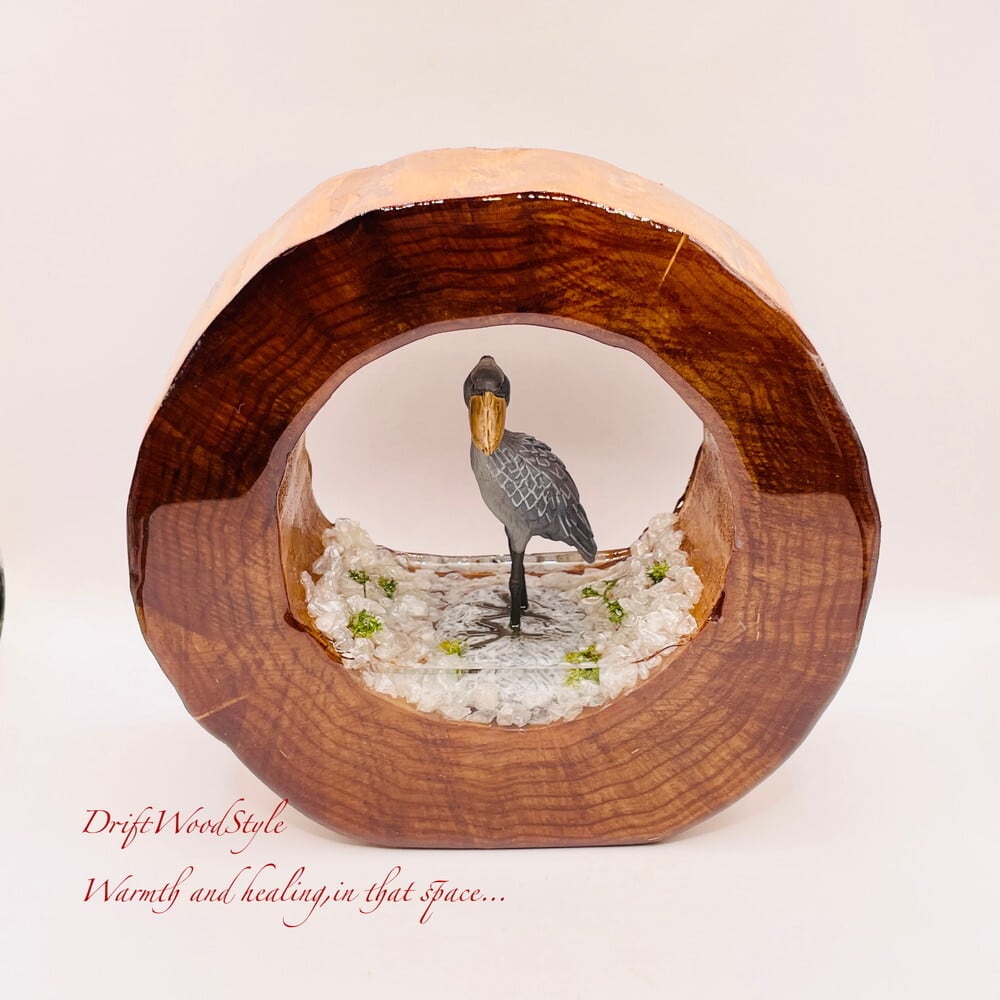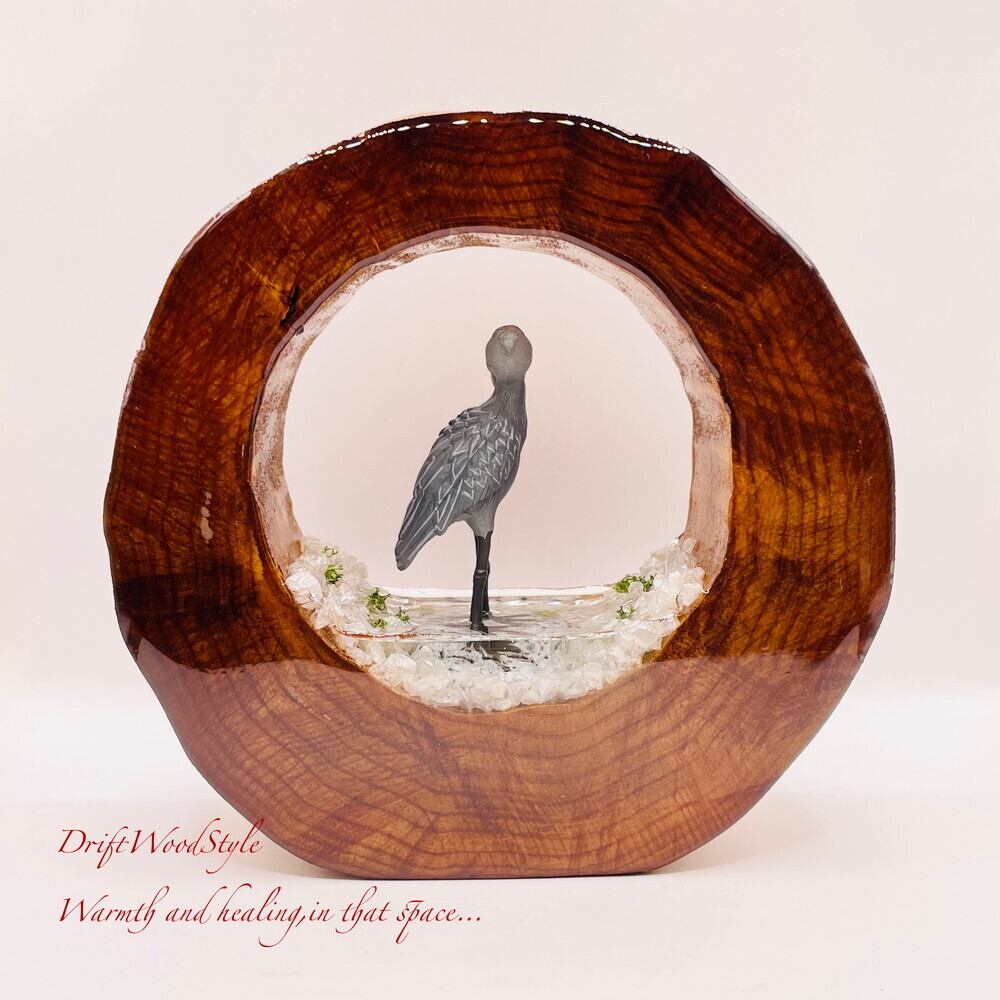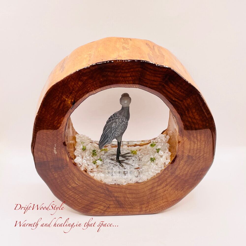 流木と自然界を結び付けて表現するために作成した,レジンアートです。