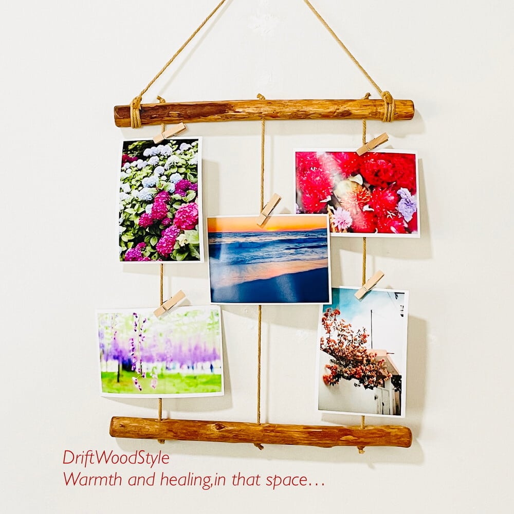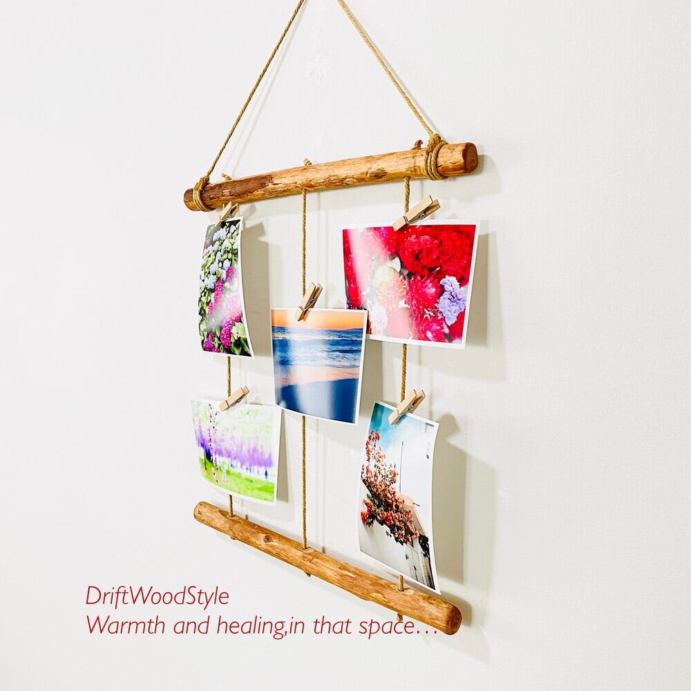 自由に写真を飾れるSサイズの流木フォトハンガーになります。