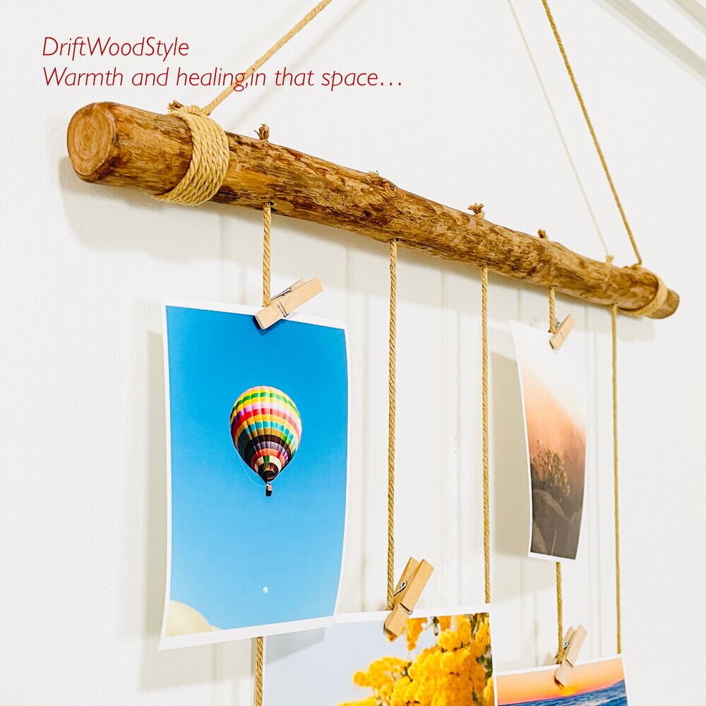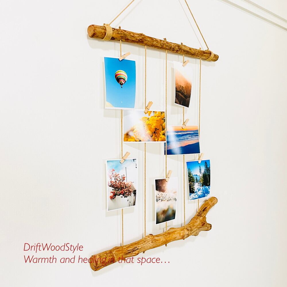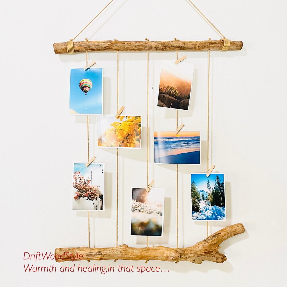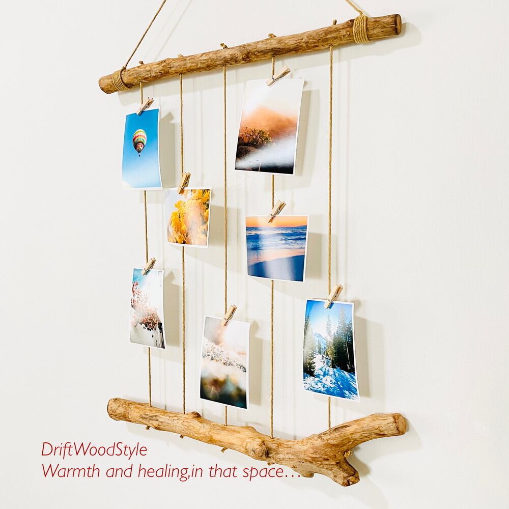 壁一面に写真を飾れるMサイズの流木フォトディスプレイ 写真ハンガー ウォールデコ 壁掛け N4