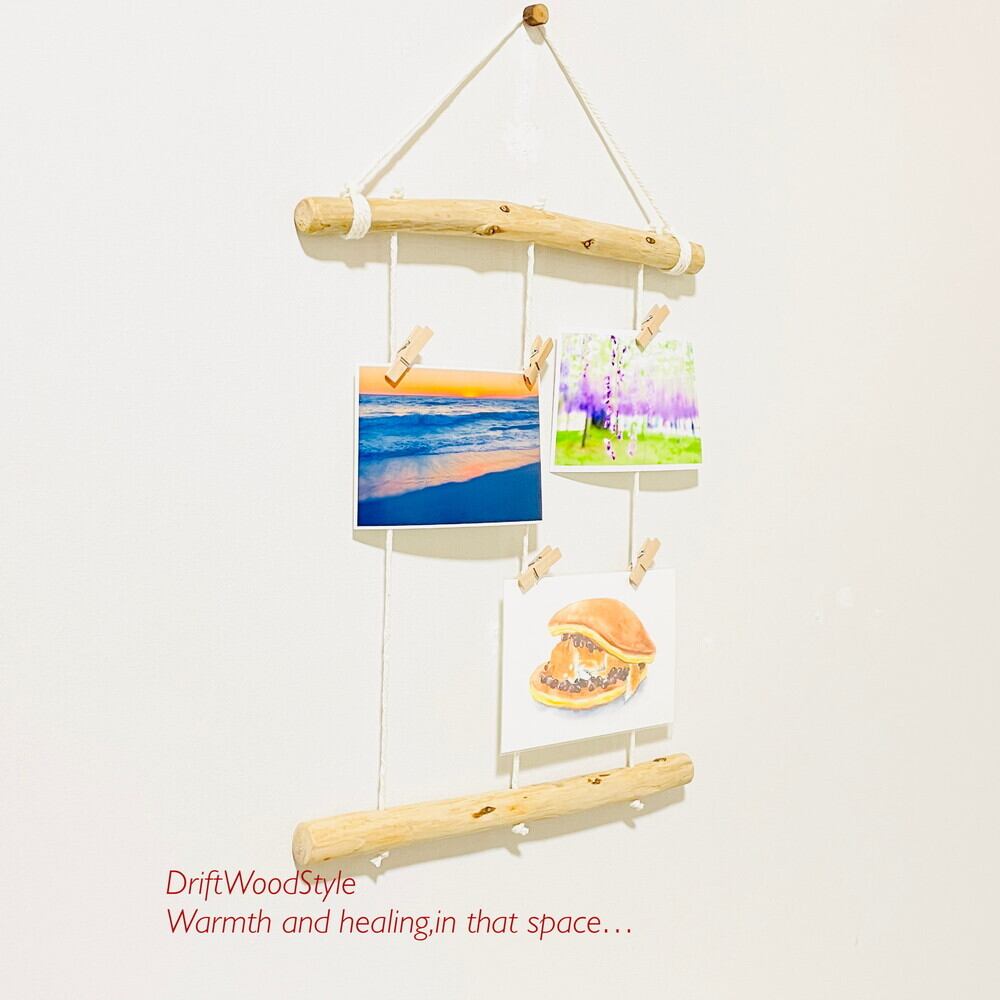 自由に写真を飾れるSサイズの流木フォトハンガーになります。