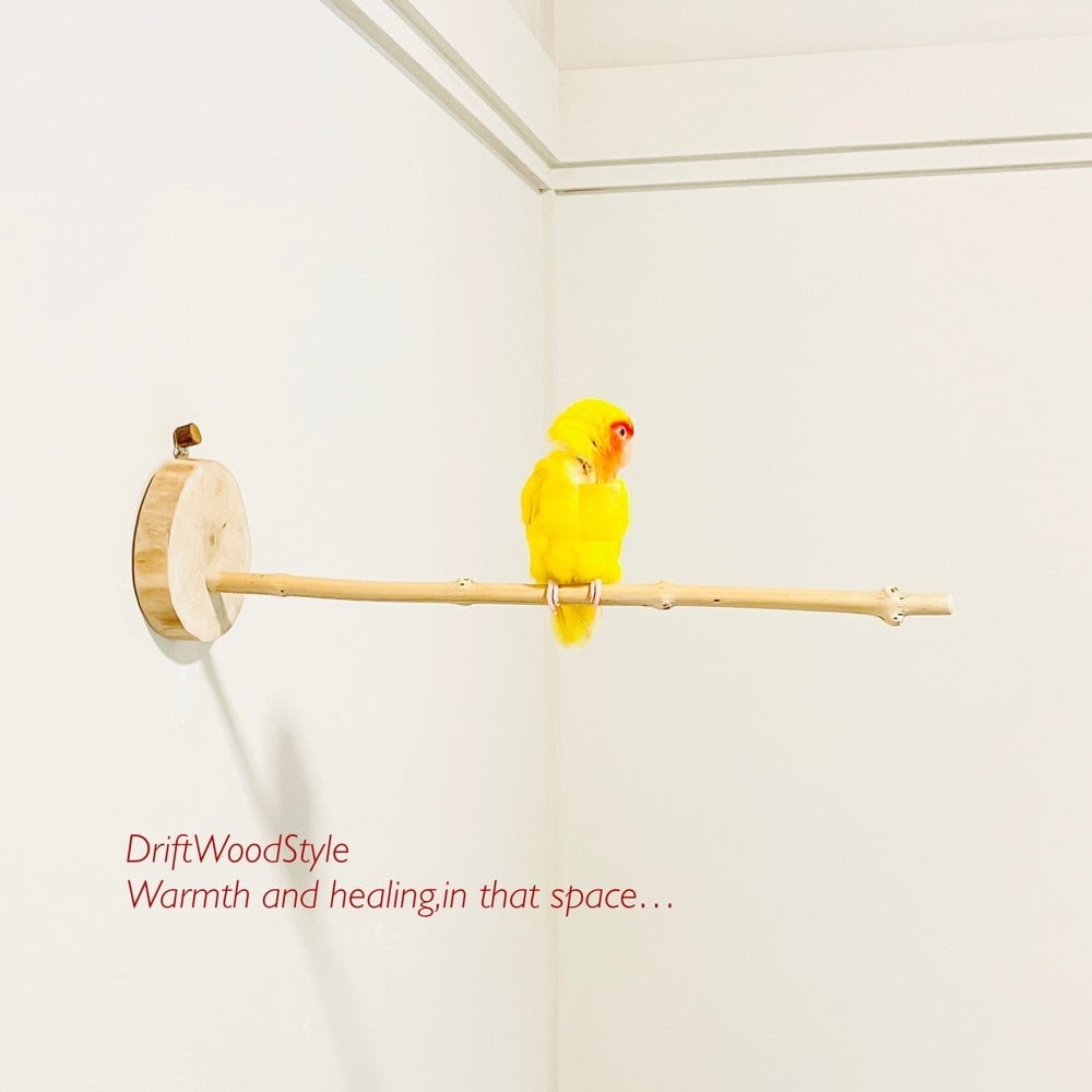 流木止まり木 40cmの輪切流木枝を使った小鳥の止まり木 インコの壁掛けパーチ ピン止めタイプ ビス止め変更可 N1