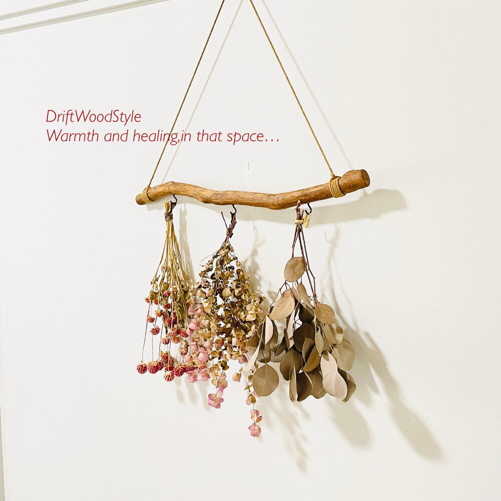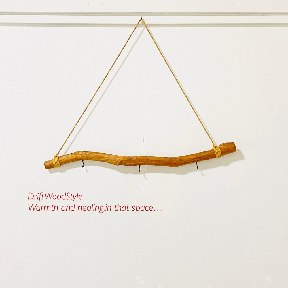 壁に流木のハンガーフックを飾るだけで,温かみが増しお部屋の雰囲気が変わります。